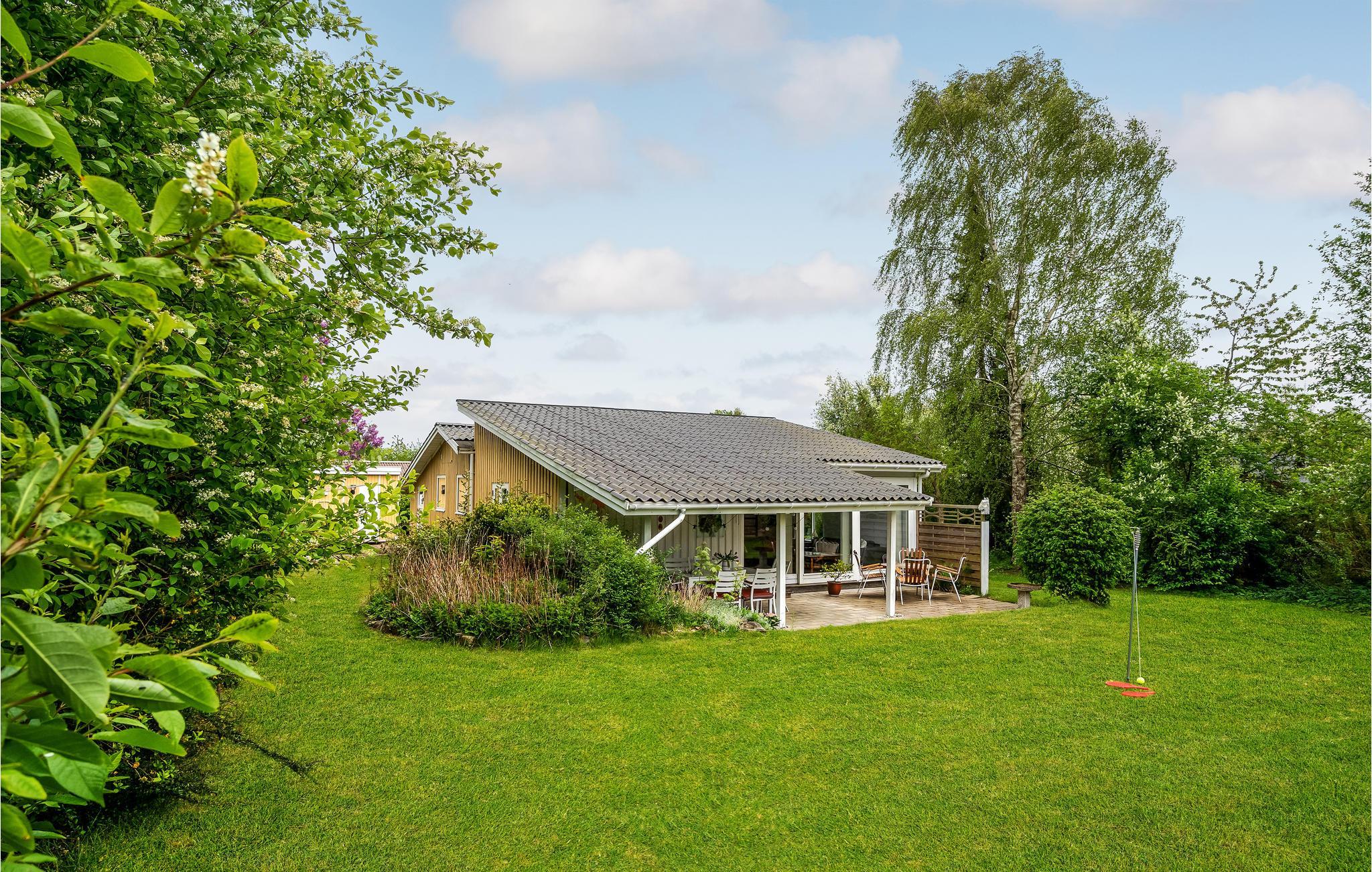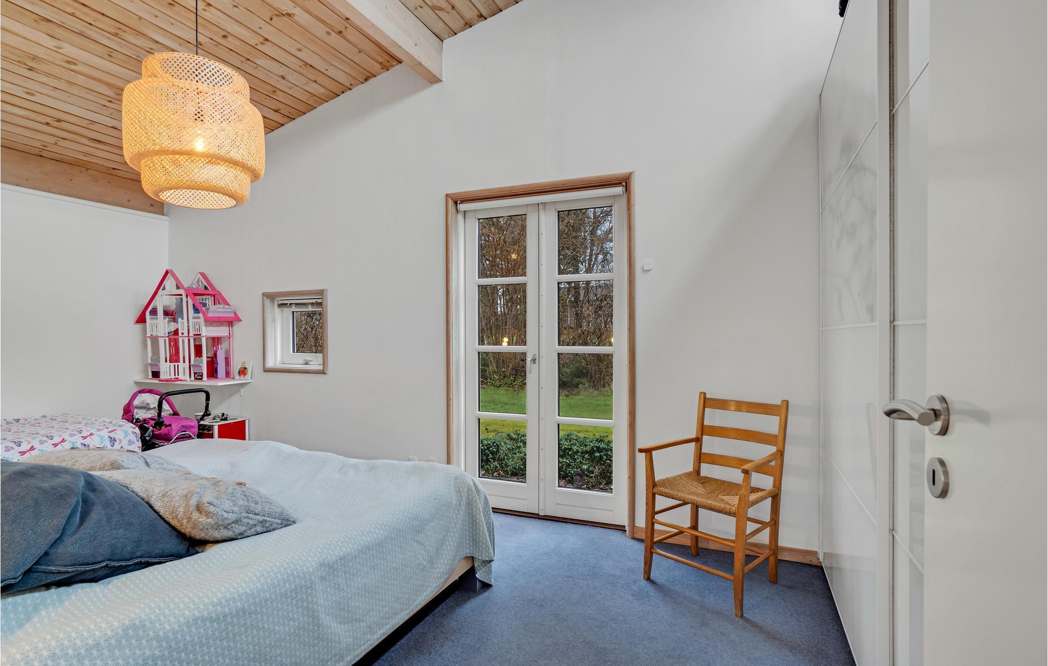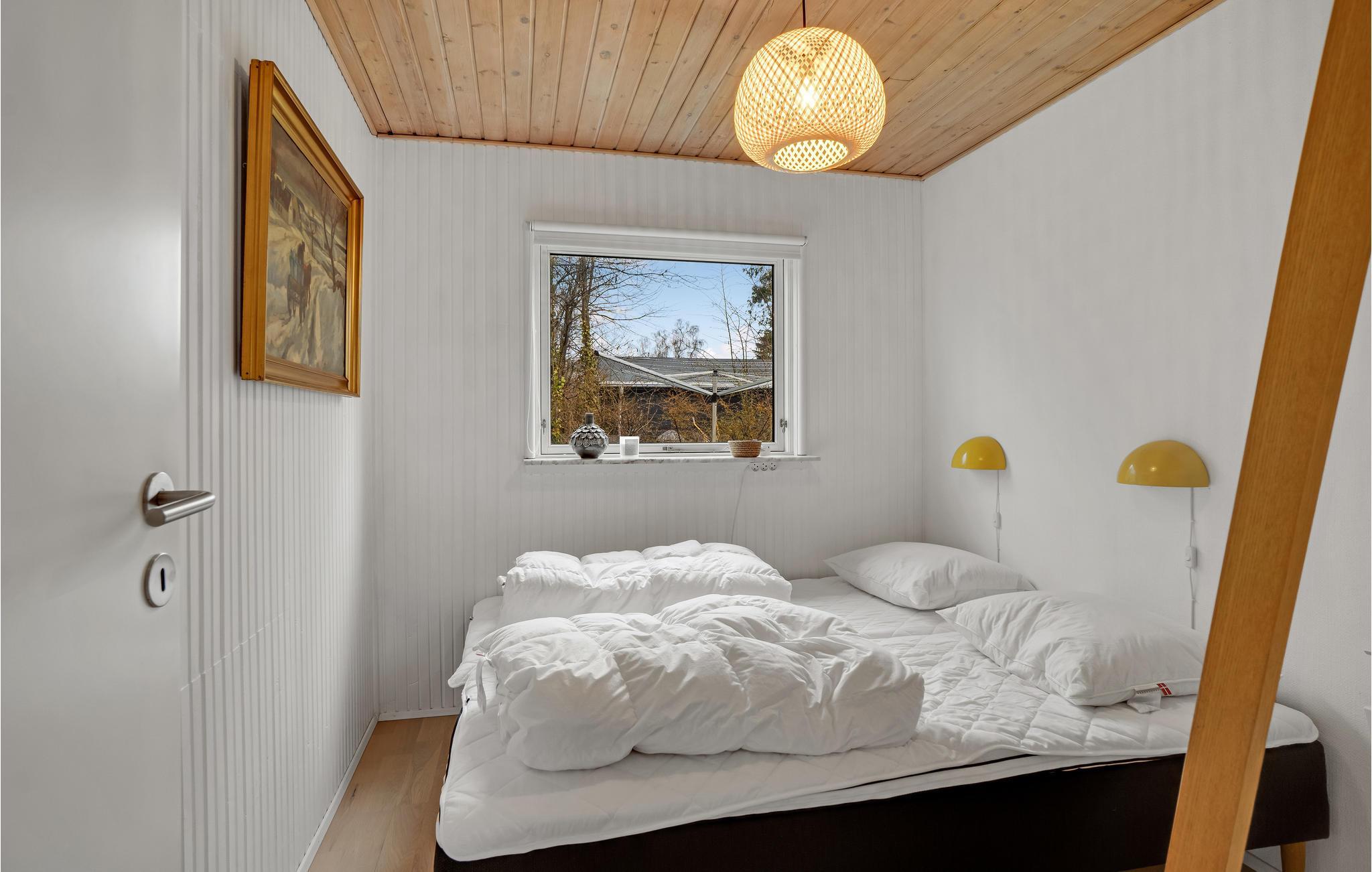 Man mærker hurtigt, hvordan feriestemningen breder sig, når man træder ind på denne skønne grund, hvor alt ånder fred og ro. Her ligger dette charmerende, lysegule hus, som præsenterer sig hyggeligt og gennemført med lækre indretningsløsninger og et behageligt lysindfald fra flere vinkler. I stuen kan alle hygge sig med hver deres aktiviteter, uanset om man helst vil sidde med en bog, spille brætspil eller give et nummer på klaveret. I vinterhalvåret kan I tænde op i brændeovnen, og fra forårssæsonen er det skønt at sætte sig ud med en kop kaffe på den overdækkede terrasse eller ved bålstedet, hvor der er siddepladser til alle.