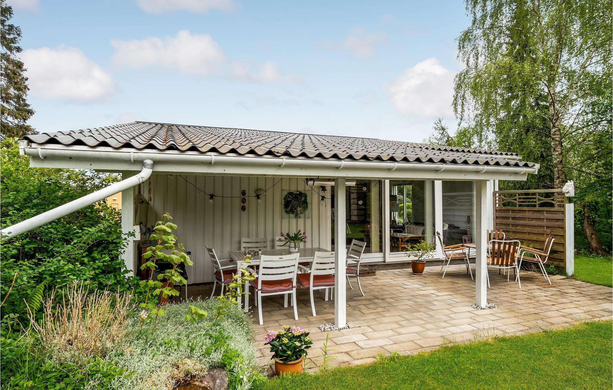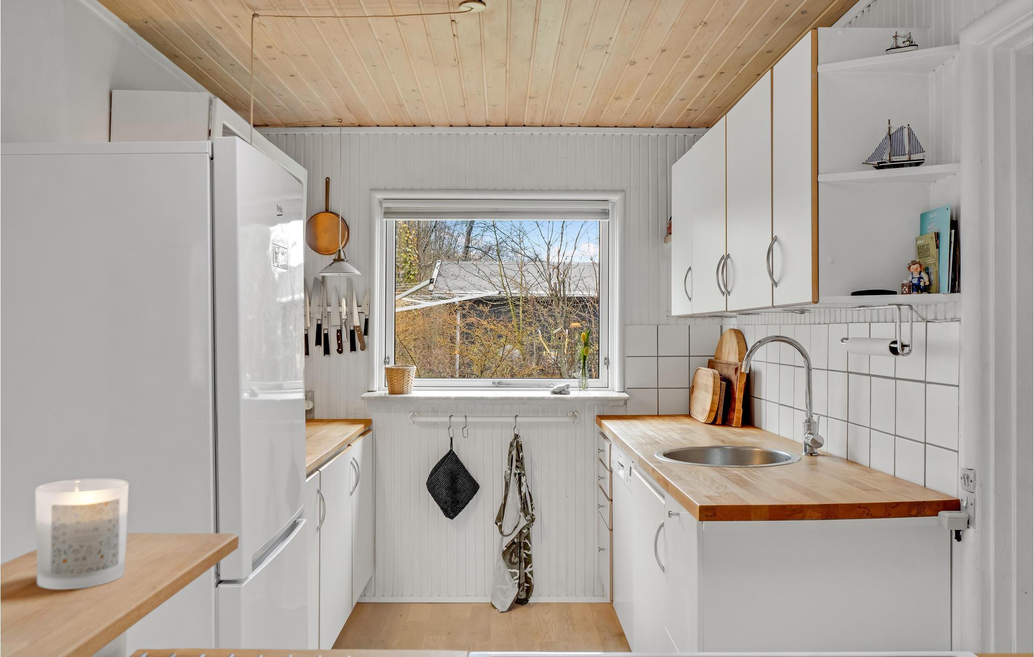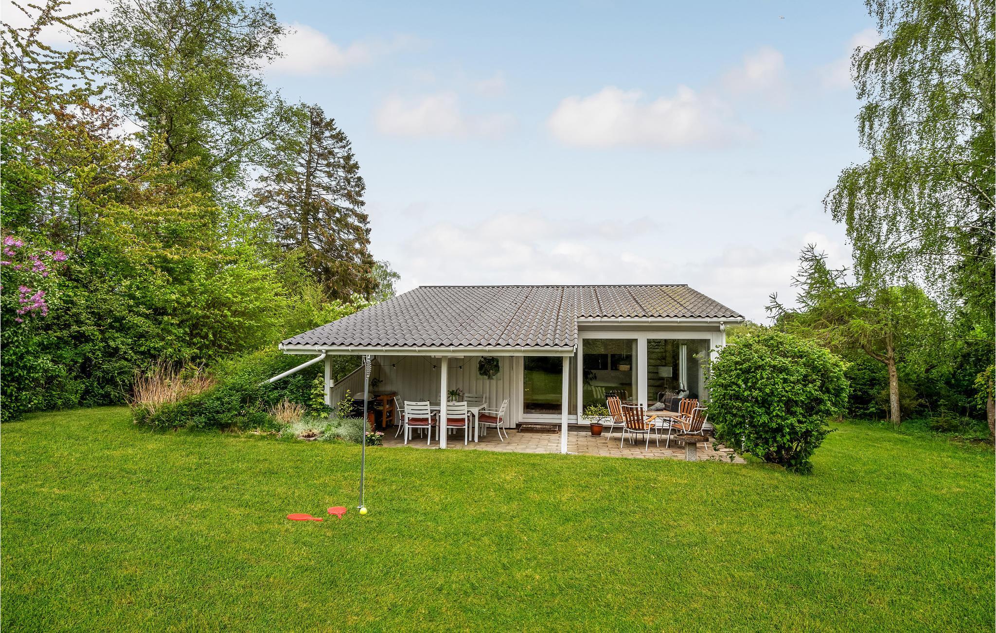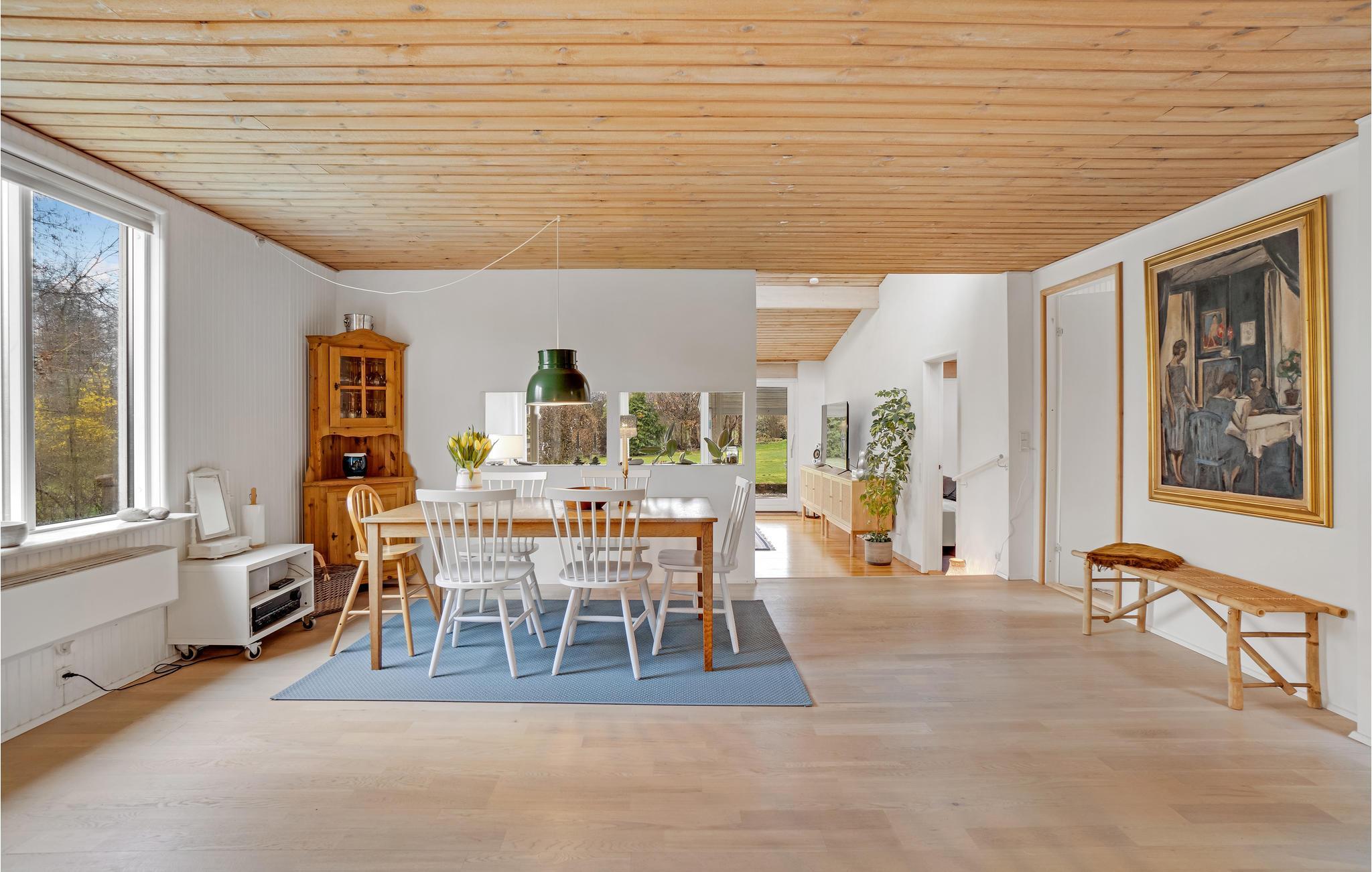 Man mærker hurtigt, hvordan feriestemningen breder sig, når man træder ind på denne skønne grund, hvor alt ånder fred og ro. Her ligger dette charmerende, lysegule hus, som præsenterer sig hyggeligt og gennemført med lækre indretningsløsninger og et behageligt lysindfald fra flere vinkler. I stuen kan alle hygge sig med hver deres aktiviteter, uanset om man helst vil sidde med en bog, spille brætspil eller give et nummer på klaveret. I vinterhalvåret kan I tænde op i brændeovnen, og fra forårssæsonen er det skønt at sætte sig ud med en kop kaffe på den overdækkede terrasse eller ved bålstedet, hvor der er siddepladser til alle.