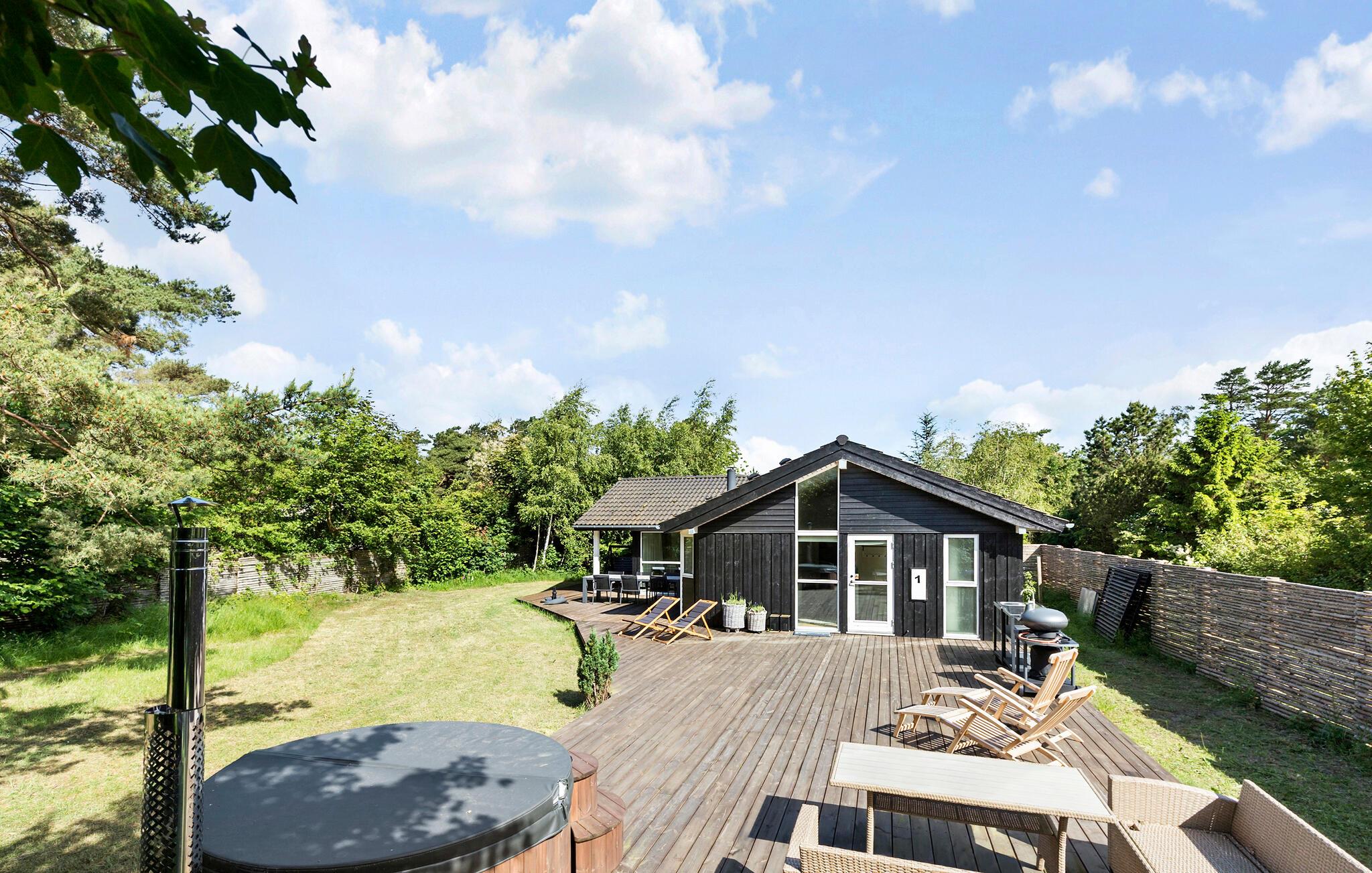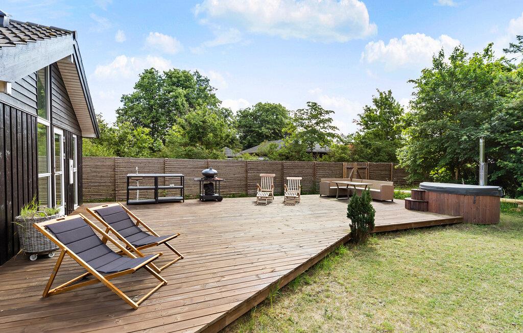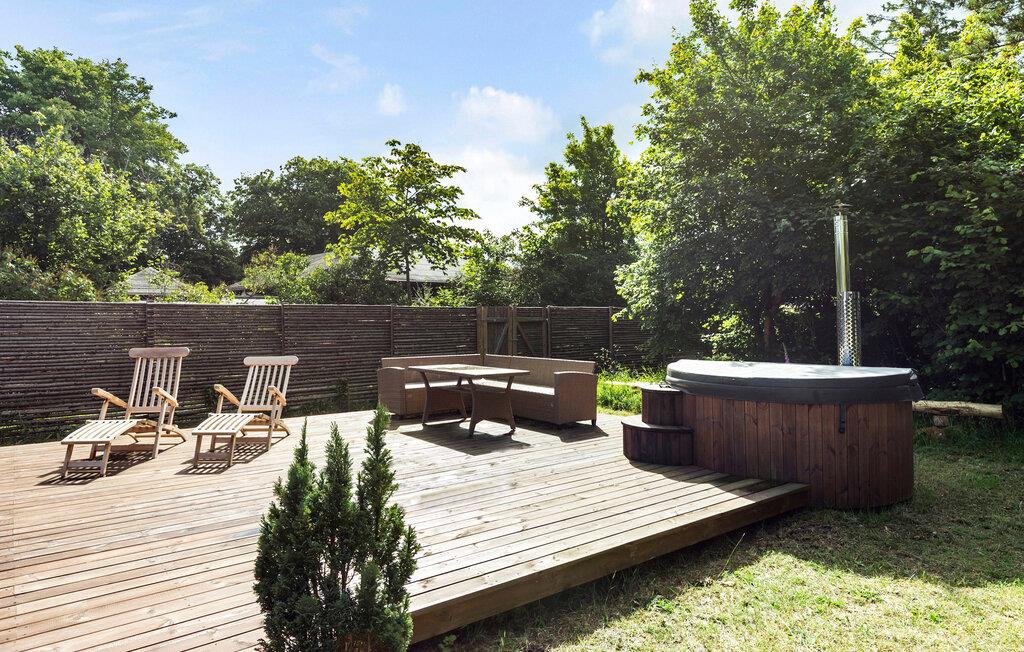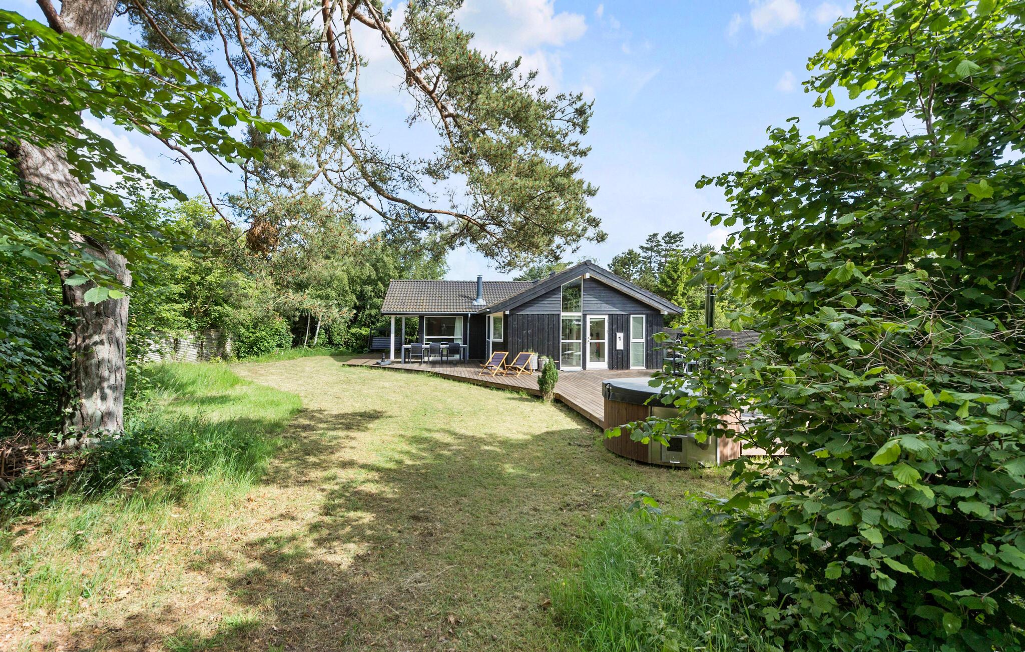 Når solen skinner, kan I nyde den fra morgen til aften på den store terrasse, der byder på behagelige siddepladser og løber om flere sider af huset. For børnene er der masser af plads og legetøj at boltre sig med i den indhegnede have, mens de voksne tænder op i grillen og gør klar til en skøn aftensmad i det grønne. På en stjerneklar aften er ikke meget, der slår en tur i vildmarksbadets varme vand med en kølig drink.
