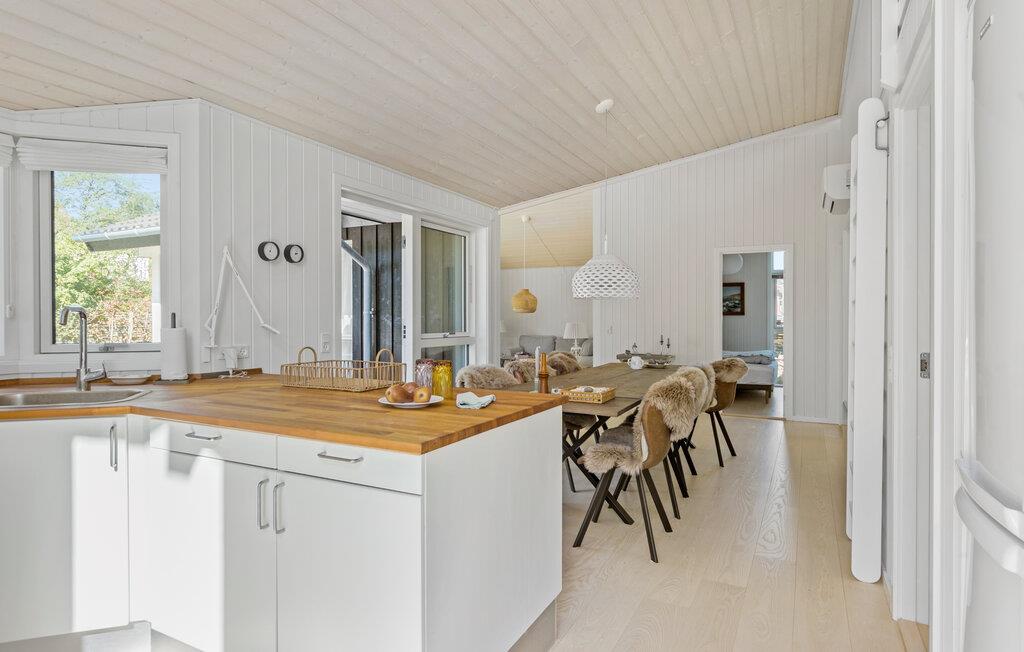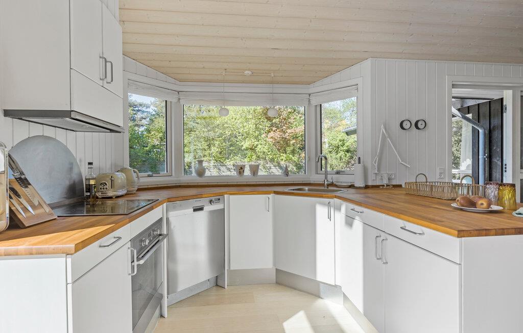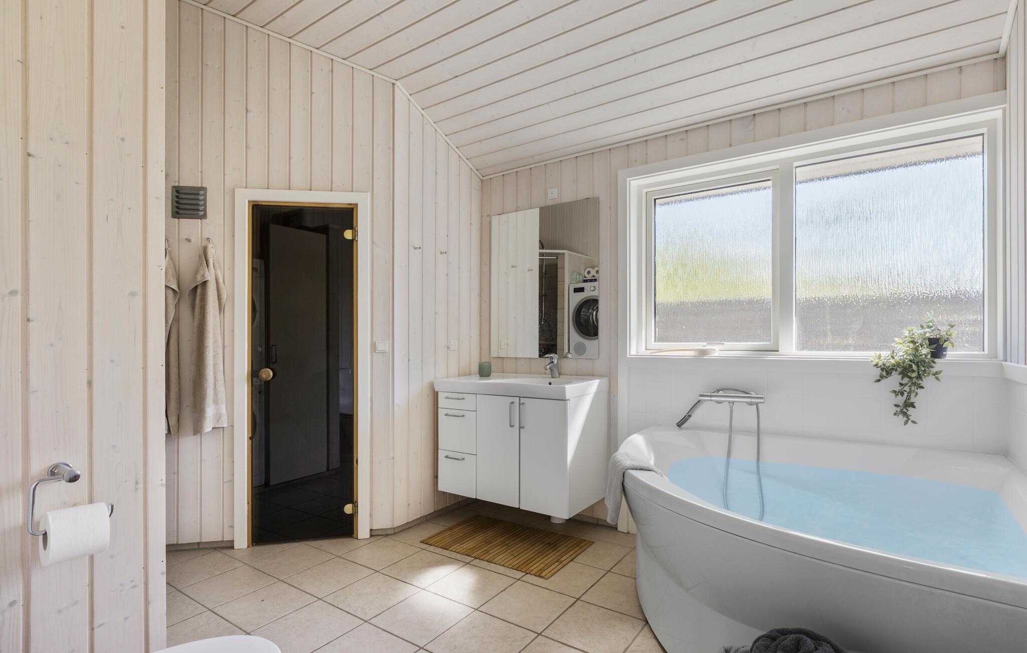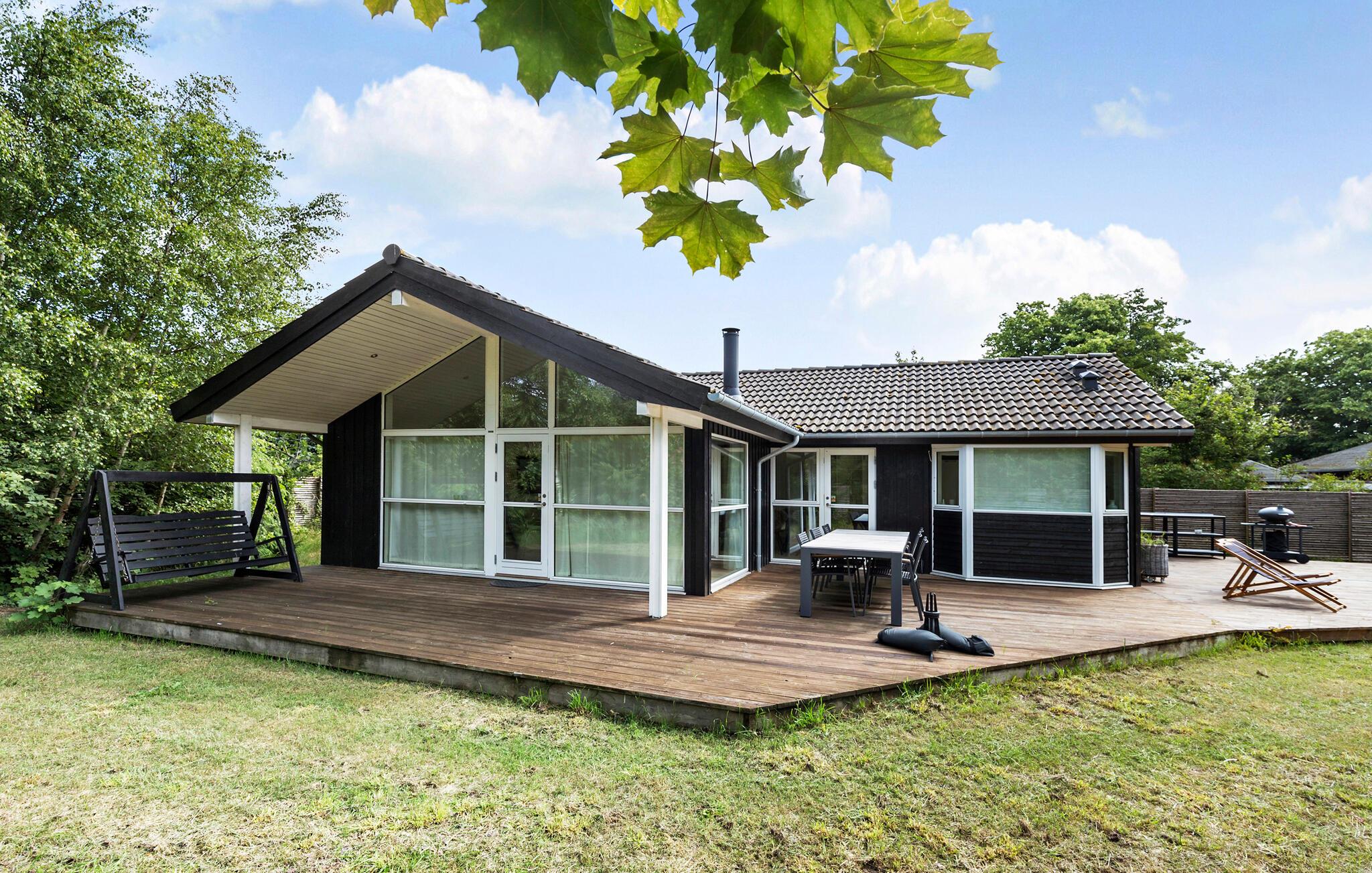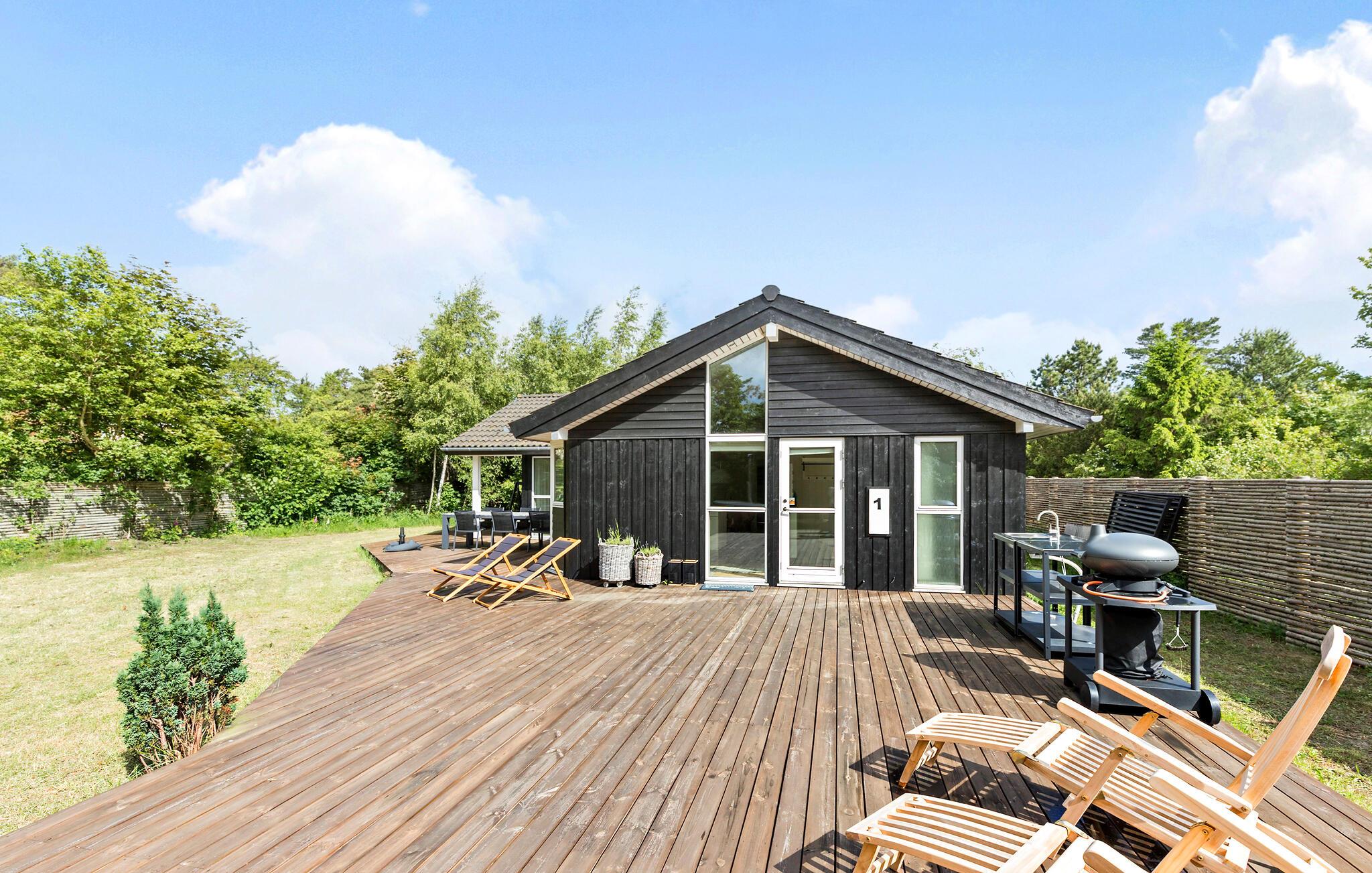 Når solen skinner, kan I nyde den fra morgen til aften på den store terrasse, der byder på behagelige siddepladser og løber om flere sider af huset. For børnene er der masser af plads og legetøj at boltre sig med i den indhegnede have, mens de voksne tænder op i grillen og gør klar til en skøn aftensmad i det grønne. På en stjerneklar aften er ikke meget, der slår en tur i vildmarksbadets varme vand med en kølig drink.