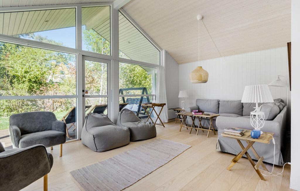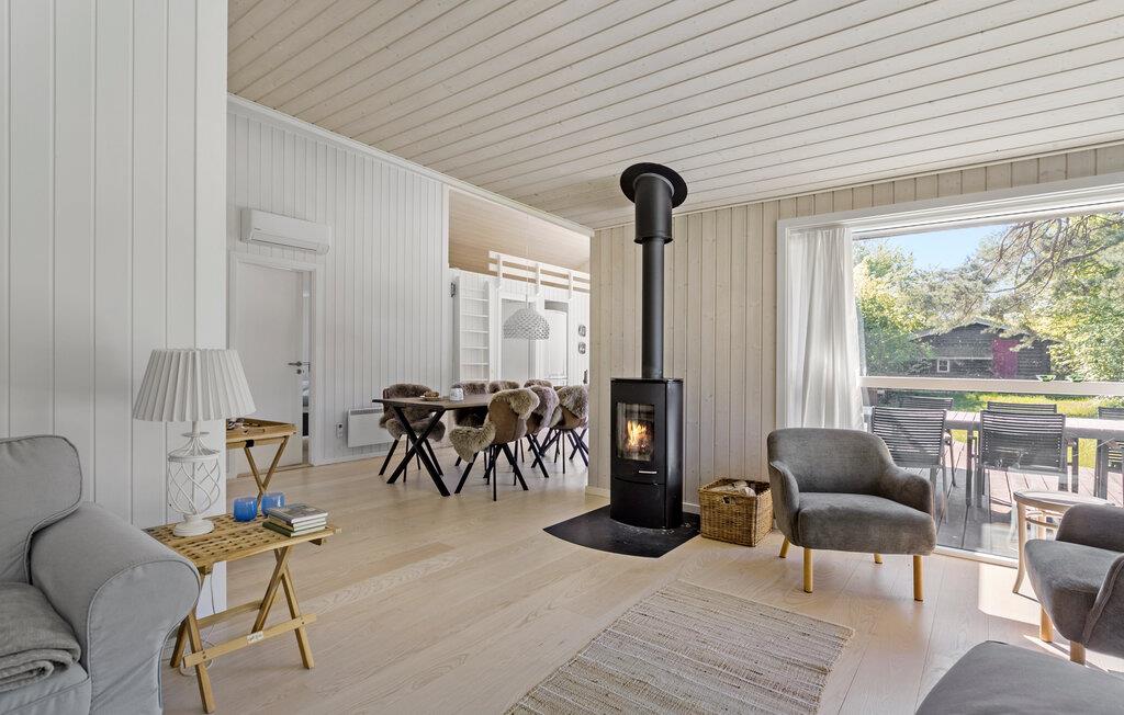 Velkommen til dette moderne og familievenlige hus, der ligger i skønne omgivelser tæt på Smidstrup Strand, og hvor I får de ideelle rammer for årets bedste uger med dem, I holder af. Indvendigt fremtræder huset flot og indbydende med gennemtænkte planløsninger, varme træpaneler og store vinduespartier, der giver et lækkert lysindfald og udsigt til haven. Skulle vejret bide lidt, kan I tænde op i brændeovnen og nyde dens varme knitren til madlavningen i det veludstyrede køkken og måltiderne ved det rustikke spisebord. Lad en dejlig indendørsdag gå på hæld med lækre snacks, brætspil og/eller en god film i sofaen, mens I lægger planer for de kommende dage. Eller måske I skal svede godt igennem i saunaen?