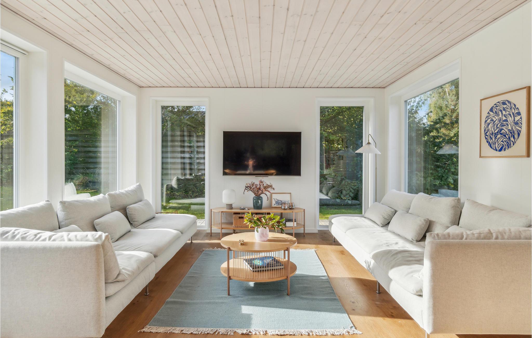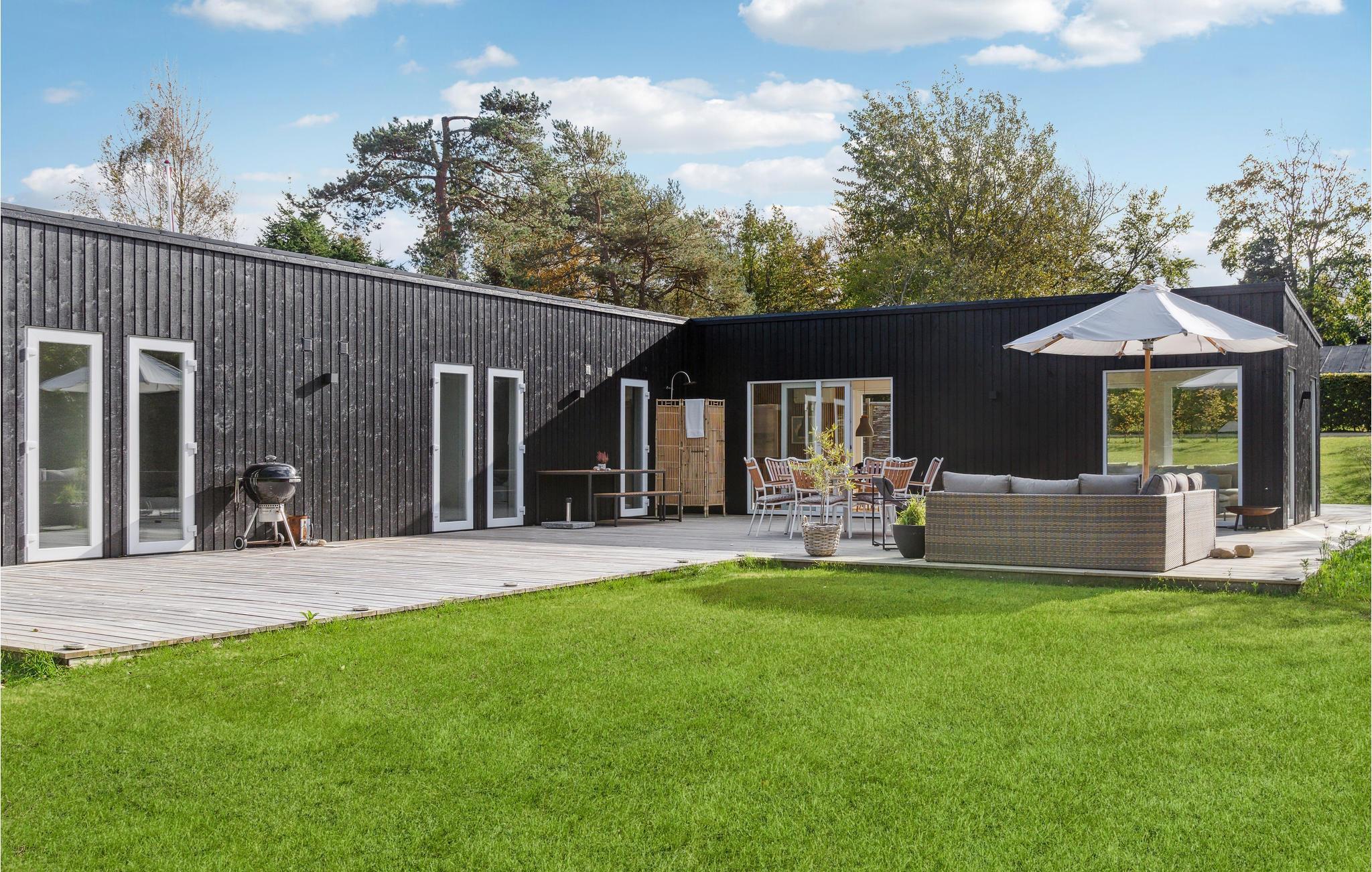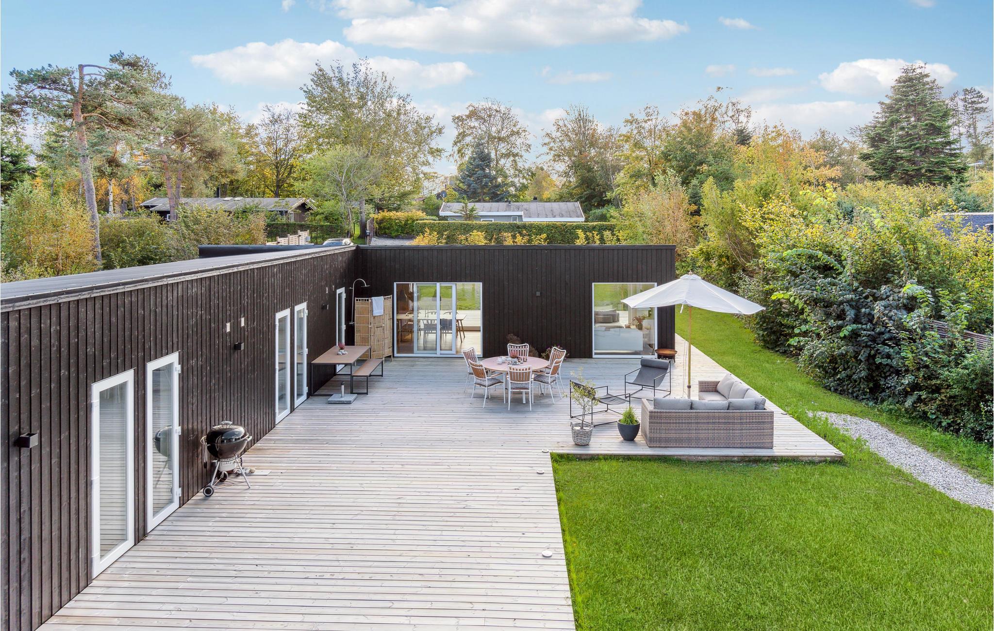 Moderne feriehus med lys atmosfære og stor terrasse i Smidstrup Strand.