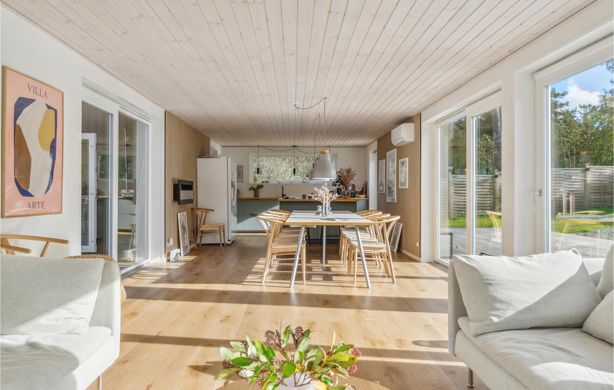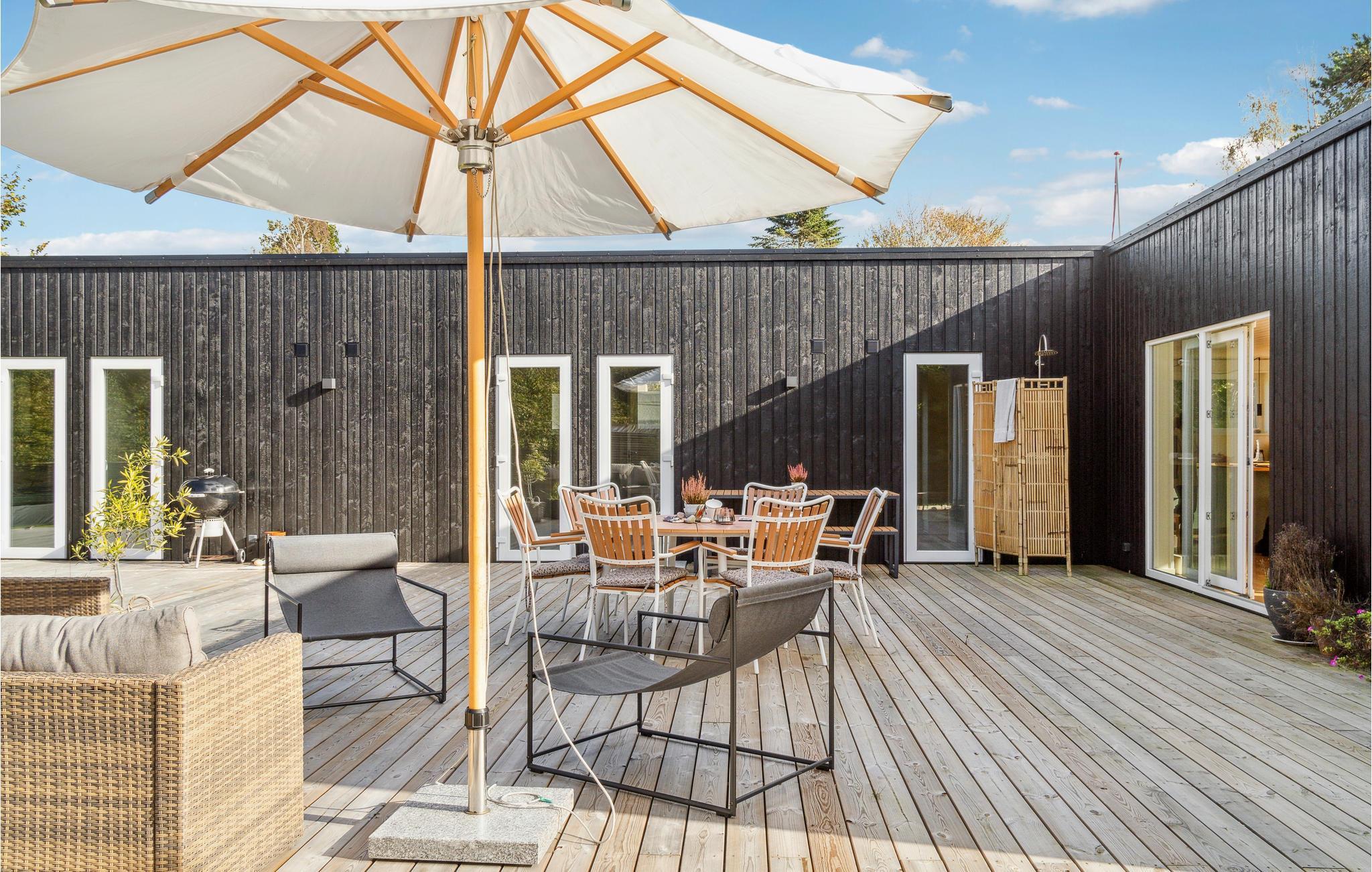 Nyd dette store hus, der giver jer en god pladsfordeling og udgang til terrasse fra alle rum. Fra morgen til aften er rummene oplyst af naturligt lys, som fuldender boligoplevelsen, foruden den komfortable indretning. Lav mad sammen i det åbne køkken og spis på den store terrasse. Her kan I slikke sol og derefter forfriske jer selv under den udendørs bruser. Jeres børn kan lege i haven eller gå alene til den nærliggende sandstrand.