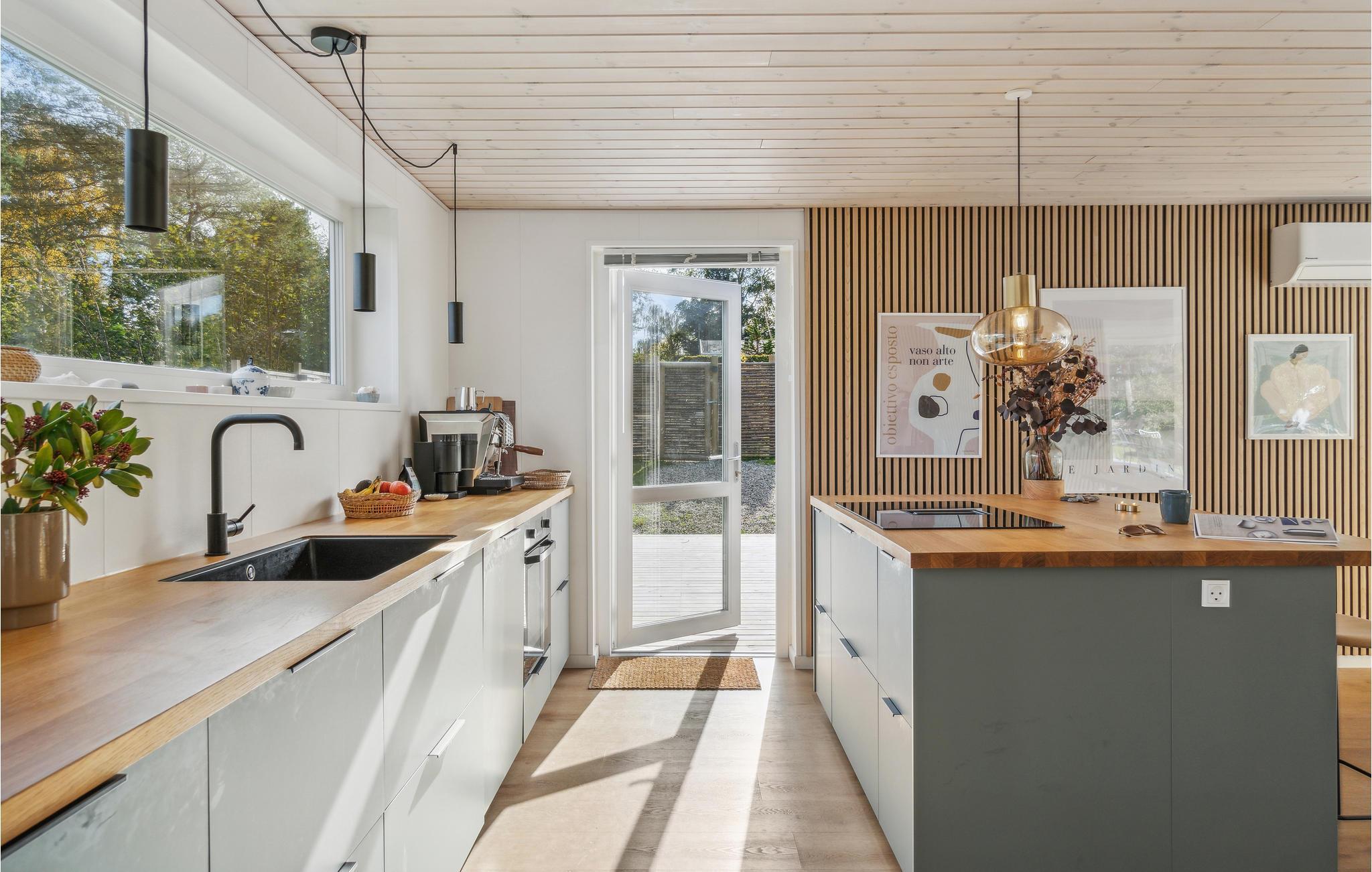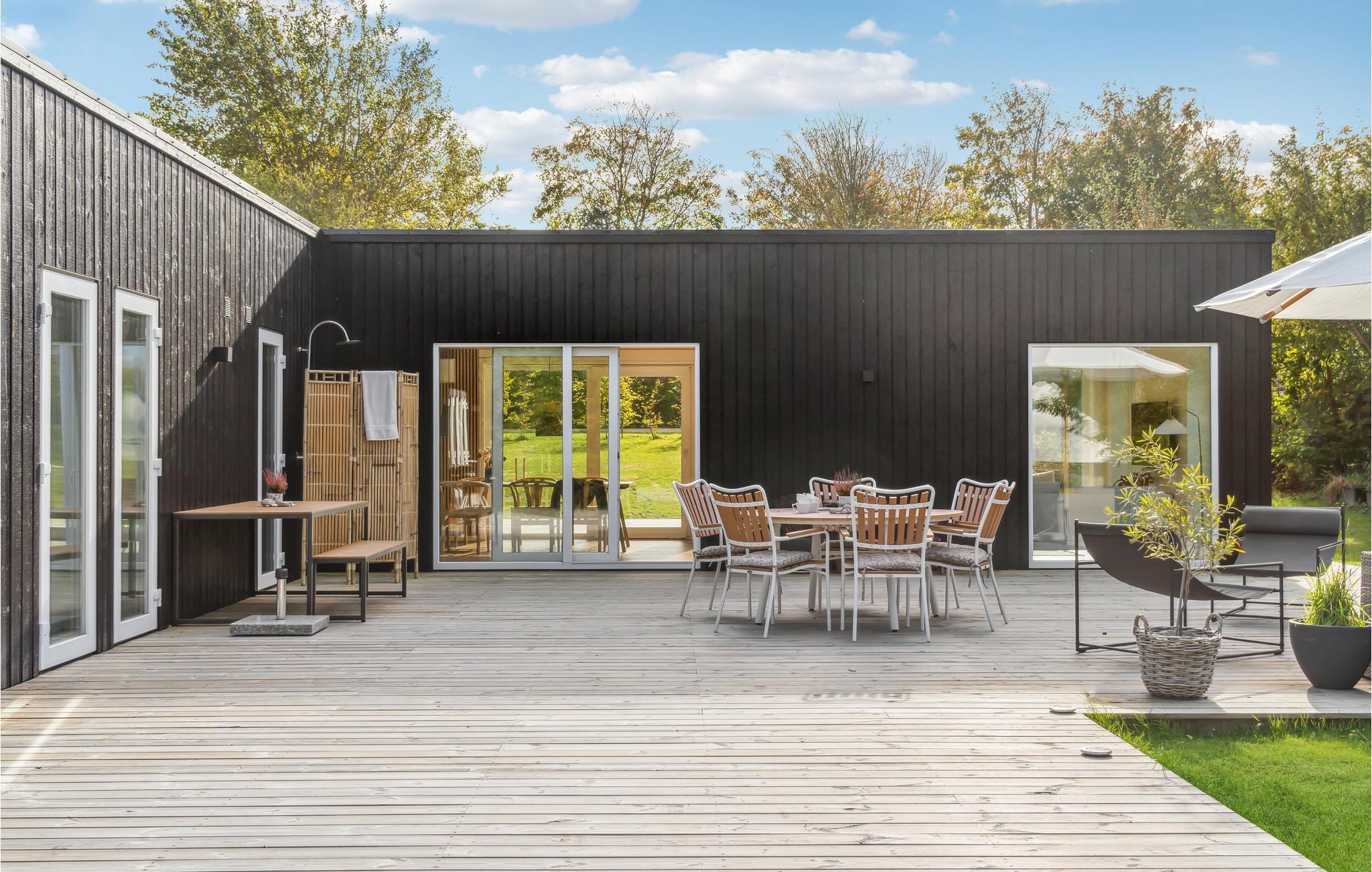 Moderne feriehus med stor terrasse ved vandet