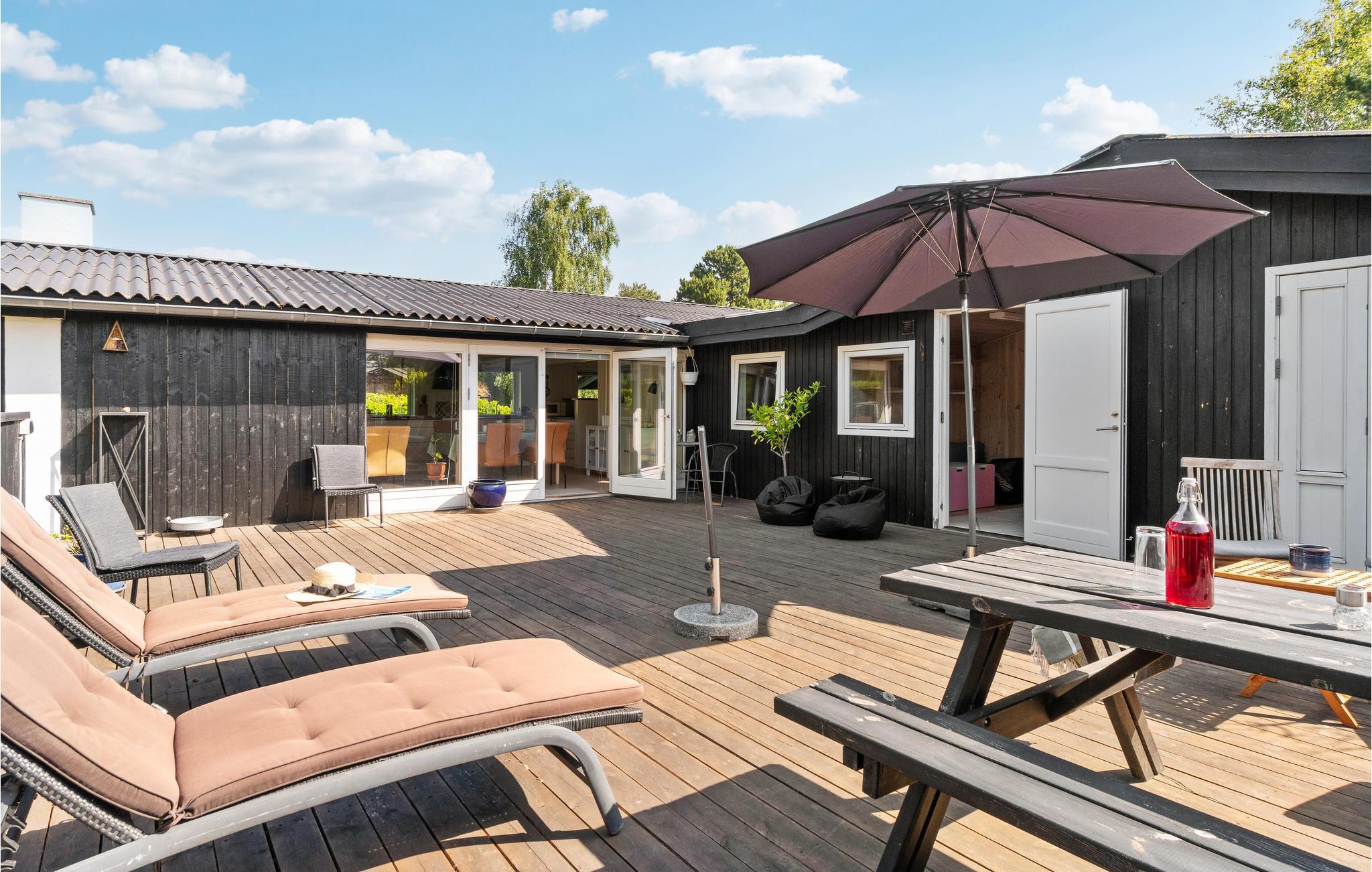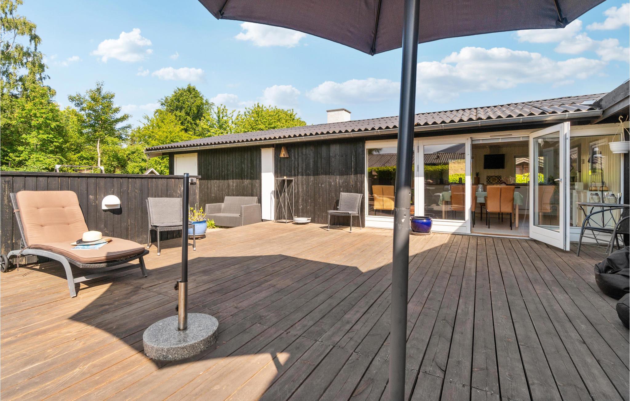 Skønt feriehus nær Smidstrup Strand med stor terrasse, have og kort afstand til havet.