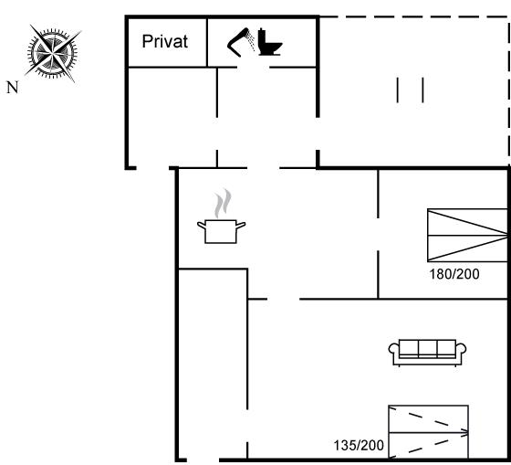 Der er i alt 1 soveværelse. Sovepladserne fordeler sig på: 2 sovepladser i dobbeltseng. 2 sovepladser i sovesofa (dobbelt). 1 soveplads på madras. 3 af disse sovepladser befinder sig i stuen.