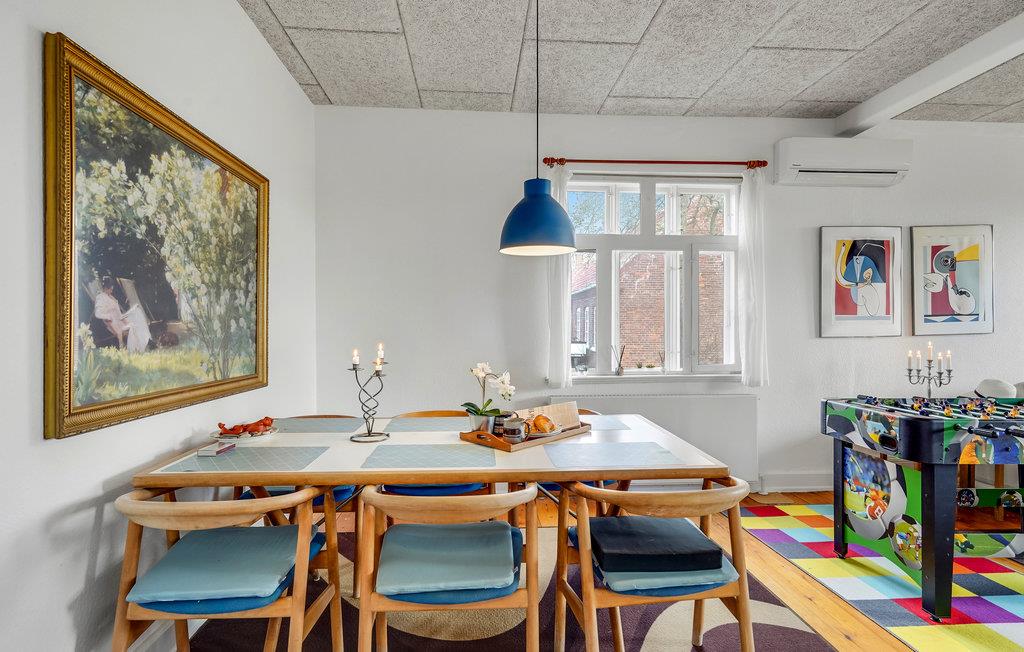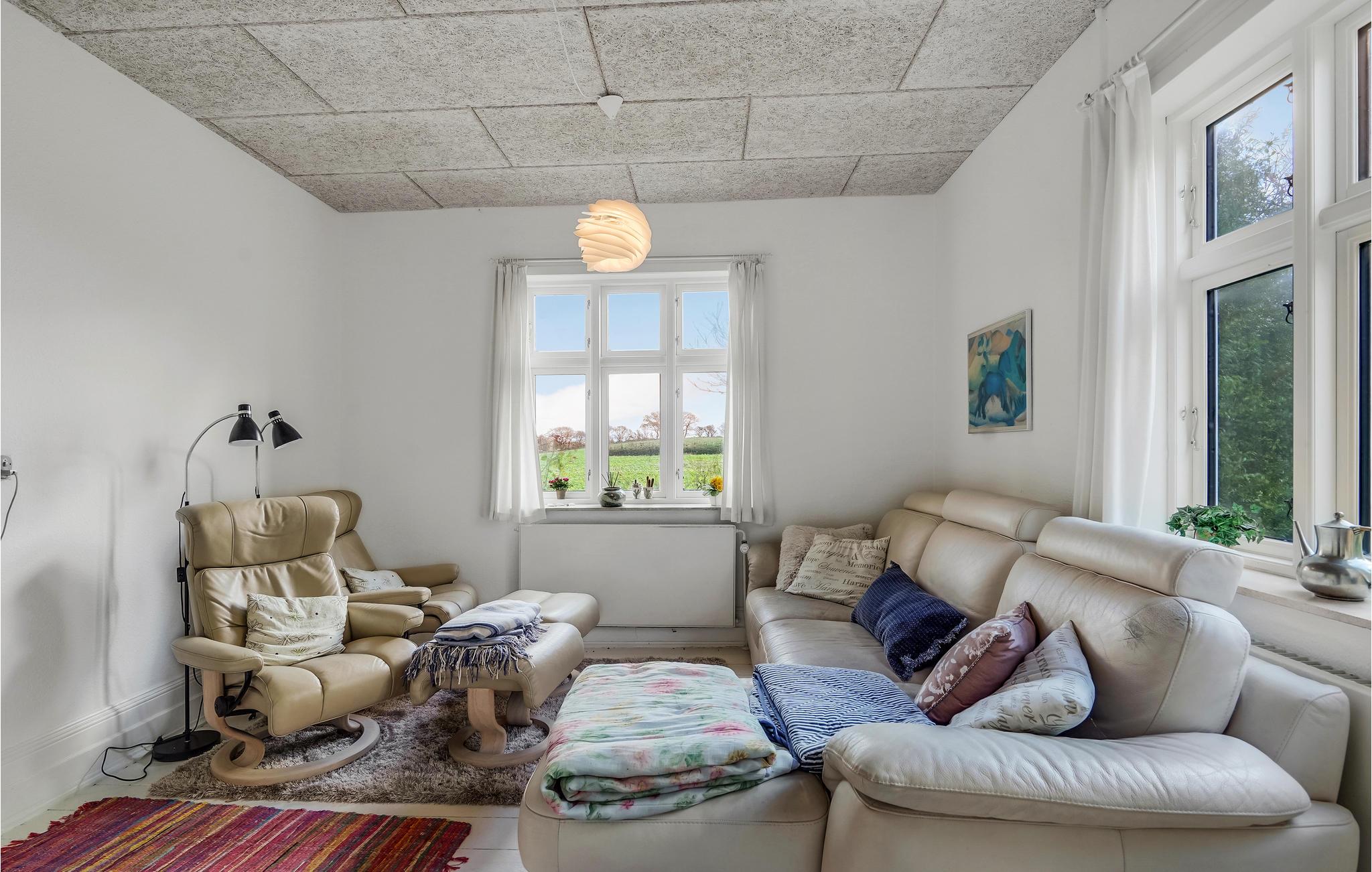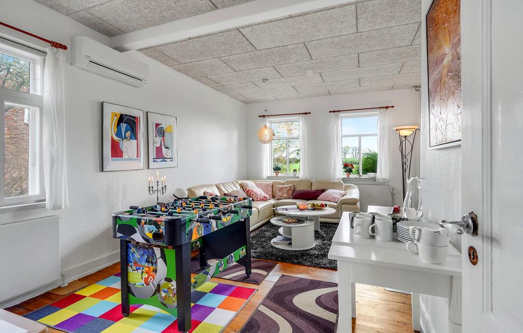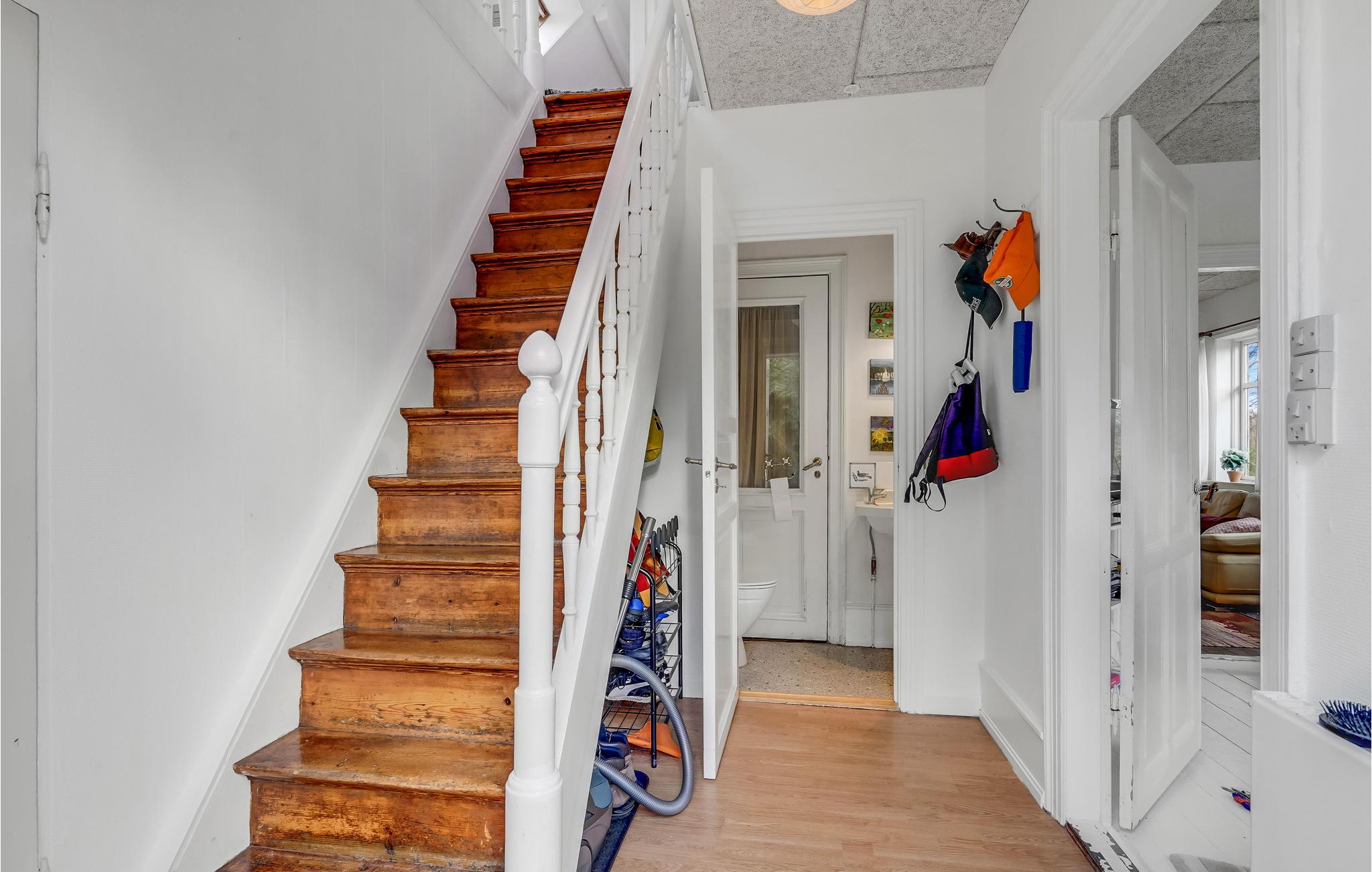 Det lyse interiør strækker sig over to etager og giver en hjemlig og autentisk atmosfære. Tilbring hyggelige timer med familie eller venner i stuen og hyg jer med en omgang bordfodbold fra tid til anden. Se en god film om aftenen eller hyg jer med en brætspilsaften for hele familien. Huset har en idyllisk, velholdt have med bede, gamle frugttræer og stille hjørner. Tilbring afslappende timer i havemøblerne under parasollen om sommeren, mens børnene boltrer sig på det grønne område - her kan livet virkelig nydes. Har I brug for det, kan terrassen indhegnes.
