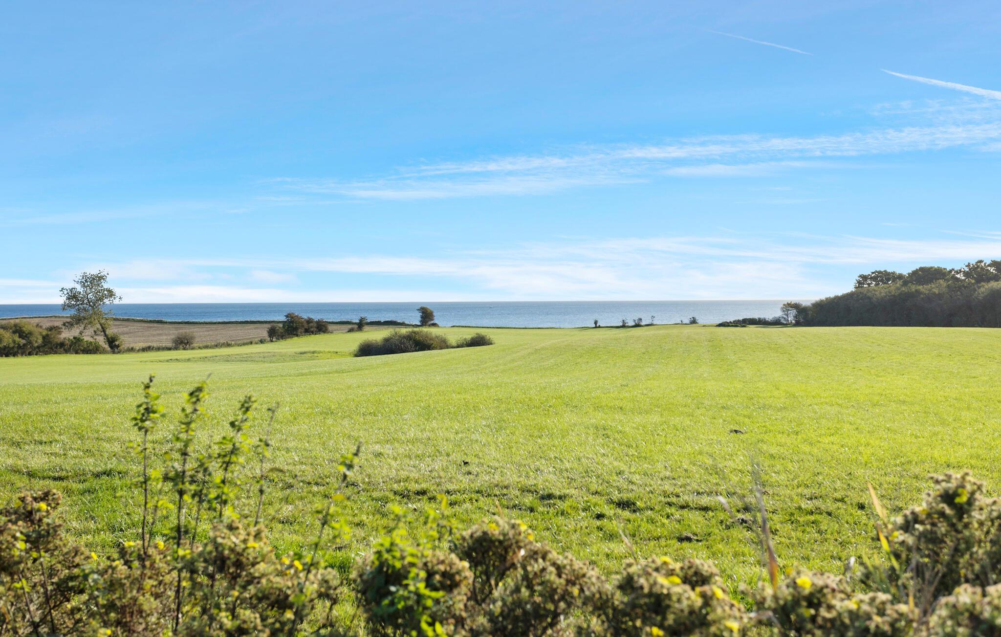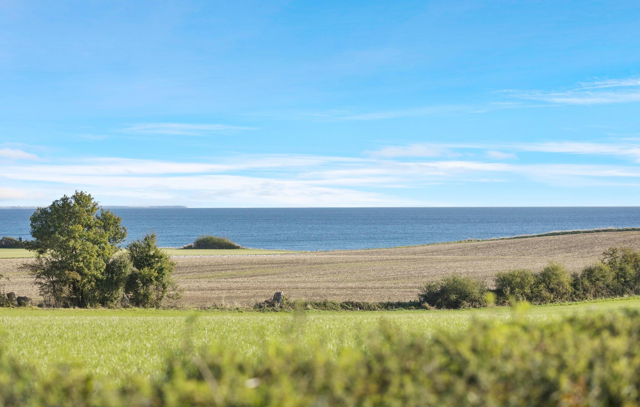 Oplev en charmerende feriebolig med panoramaudsigt over Langelandsbæltet, tæt på stranden.