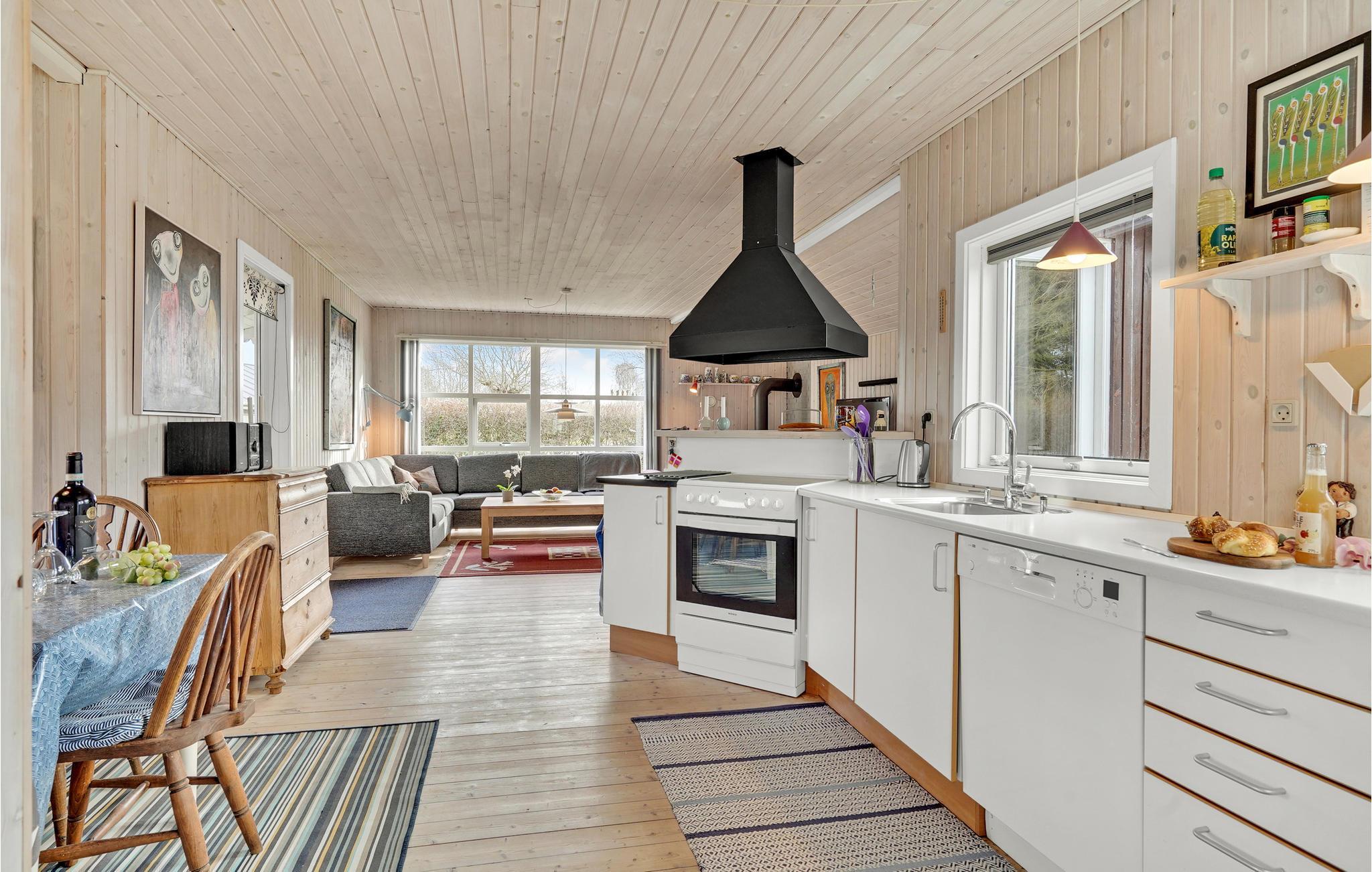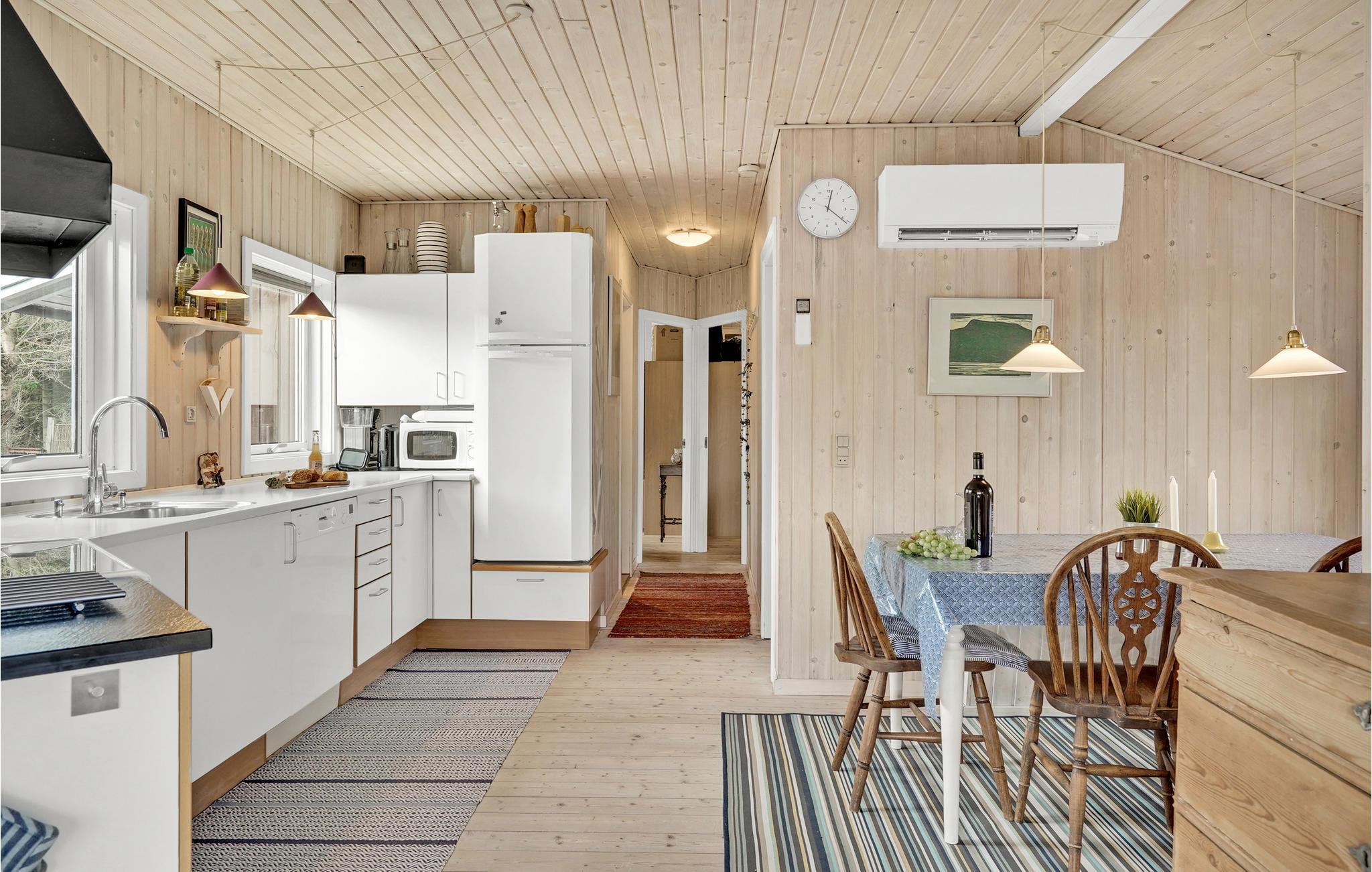 Glæd jer til en forrygende beliggenhed ud til vandet, hvor I kan se hen til Hjarnø og Alrø. Omgivelserne er i det hele taget meget naturskønne, for den østjyske kystlinje er dejligt grøn. Huset er godt indrettet til indehygge foran brændeovnen og byder på nogle gode rum, hvor I kan samles og slappe af, inden det igen går løs med flere oplevelser. Når solen er fremme, kan I nyde livet på terrasserne med udsigt til en lys og åben grund.