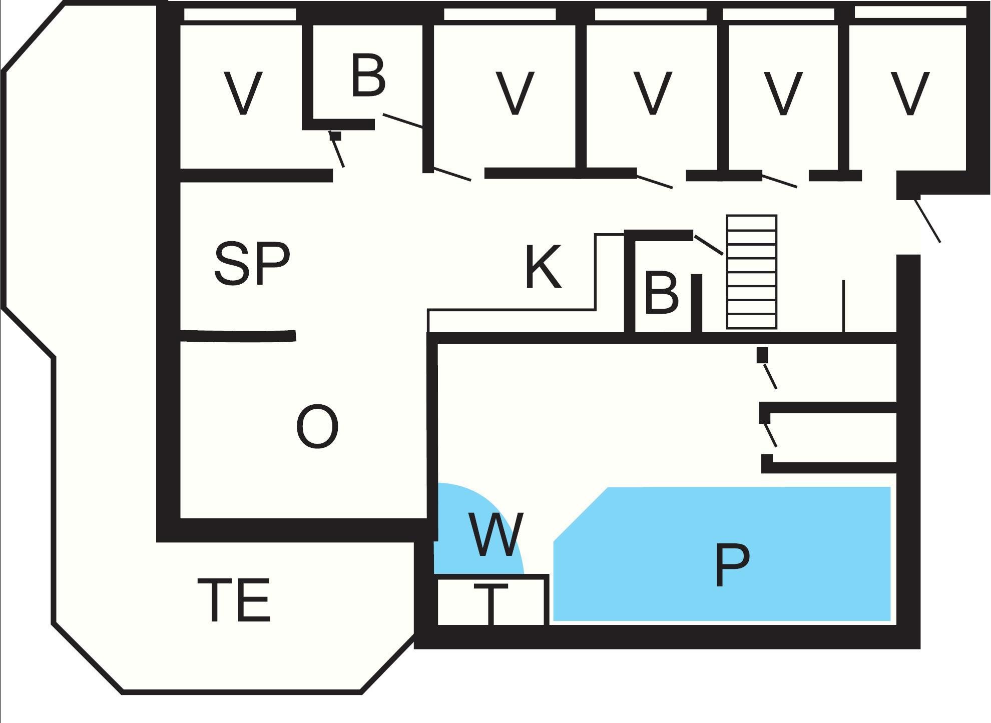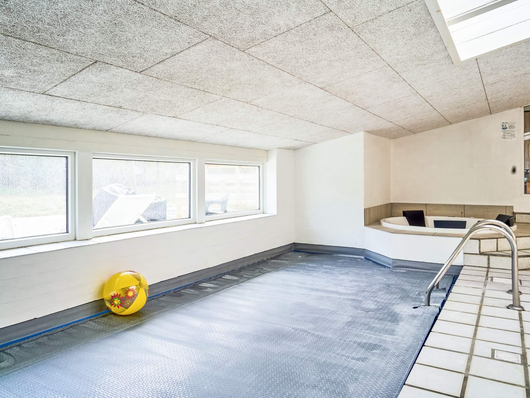 Lyst og velindrettet sommerhus med pool beliggende på hyggelig kuperet klitgrund med havkig. Det store poolrum indeholder stor swimmingpool på 7 x 2,5 x 1,6 meter. Det store 6 personers spabad giver mulighed for at få masseret musklerne efter en begivenhedsrig dag. Desuden finder I sauna i rummet.