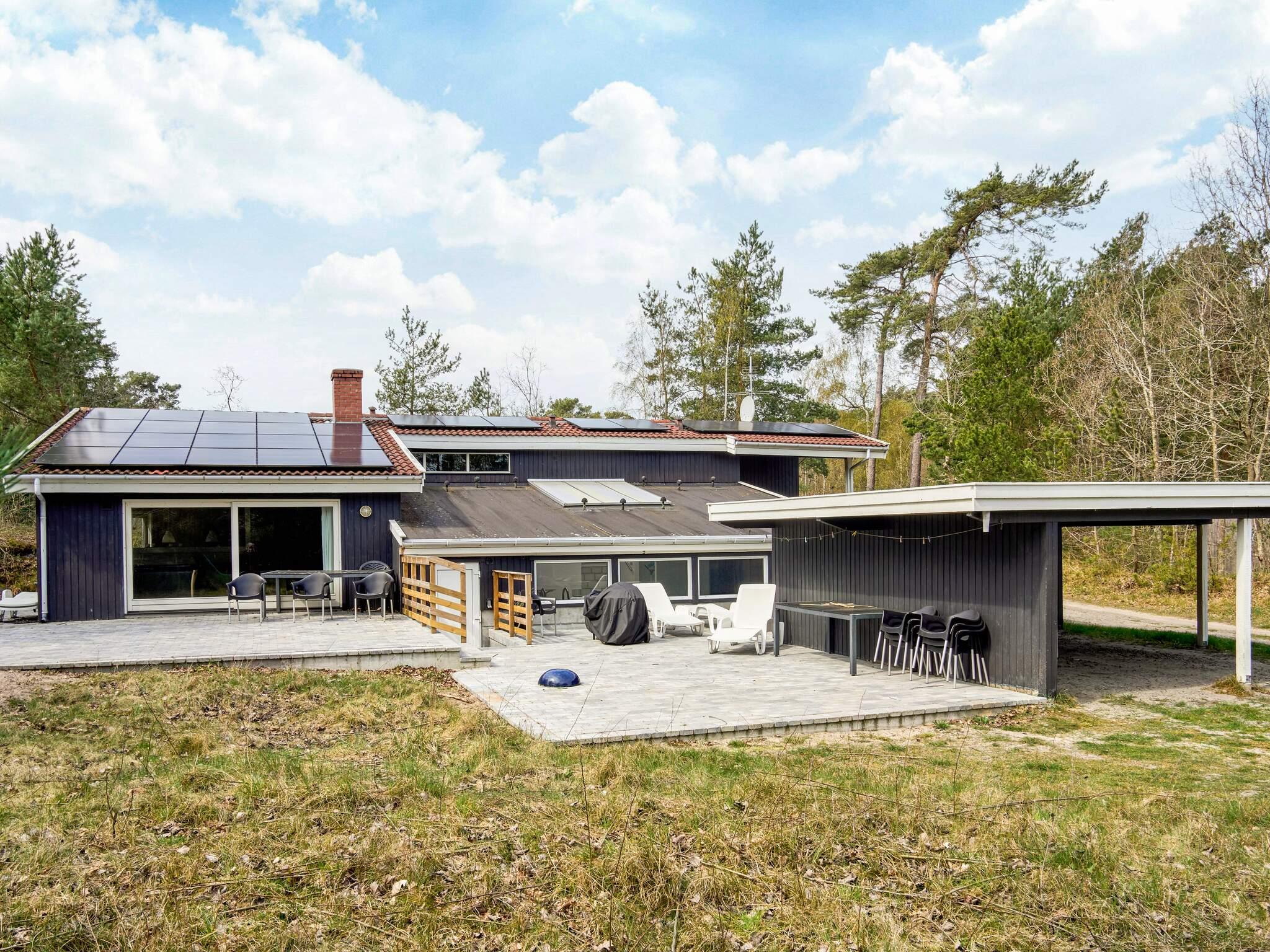 En stor træterrasse giver mulighed for at nyde udendørslivet i fulde drag. På de lune sommeraftener er den det perfekte sted for en hyggelig grillaften. Til huset hører en dobbelt carport med redskabsrum.
