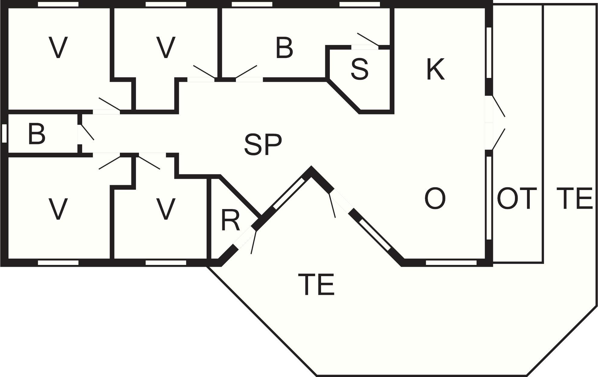 4 Soveværelser: (1DS)+(2S)+(2S)+(1DS)