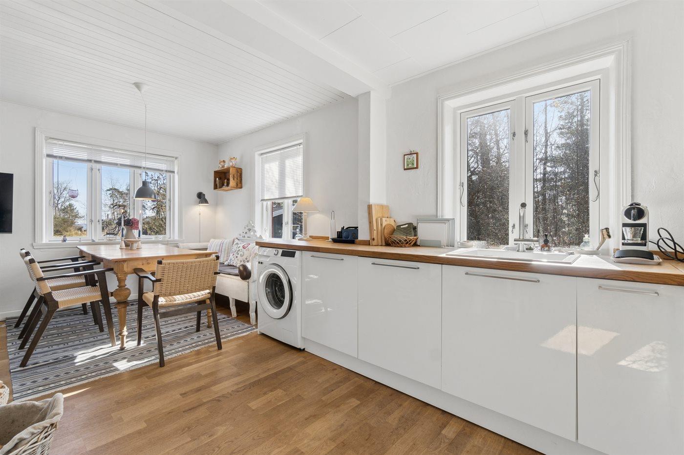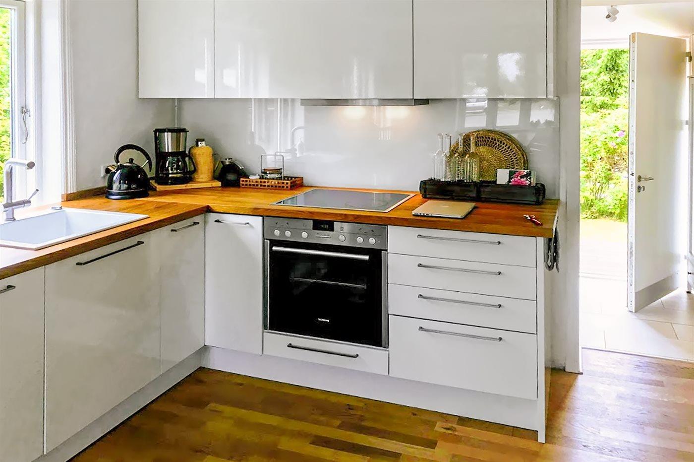 Køkkenet er udstyret med 1 køleskab. Der er 4 keramiske kogeplader, varmluftovn samt opvaskemaskine.