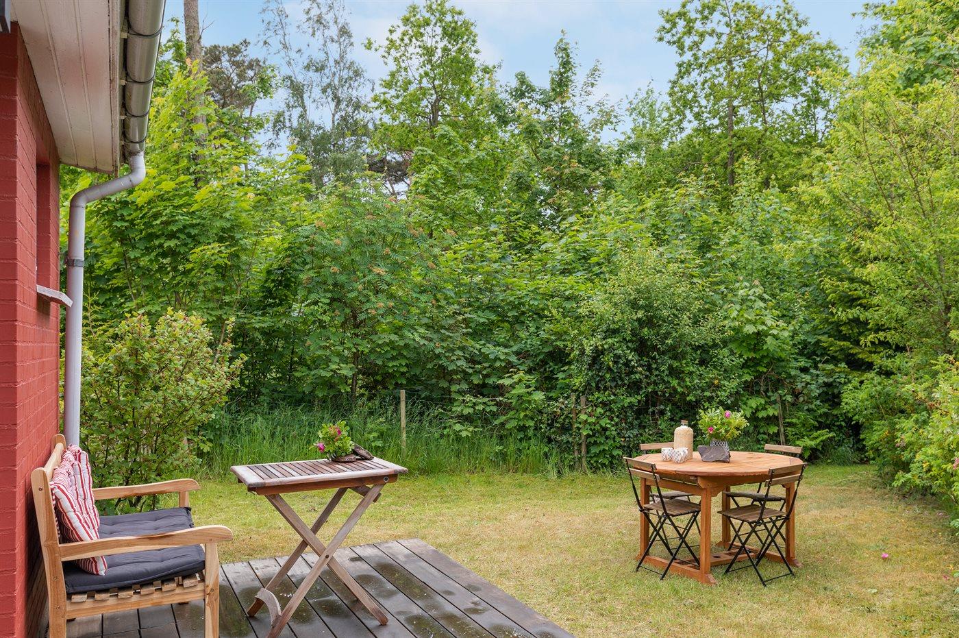 Ferieboligen er beliggende på en 230 m² stor havegrund. Grunden er indhegnet. Der er 100 m til havet. Nærmeste forretning er beliggende i en afstand af 500 m. Der er en golfbane i en afstand af 5700 m. Til ferieboligen hører 25 m² terrasseareal. Ligeledes er der adgang til udestue. Der er installeret stik til opladning af elbil. Type 2 stik. Med 22 kW ladeeffekt. Parkering ved ferieboligen.