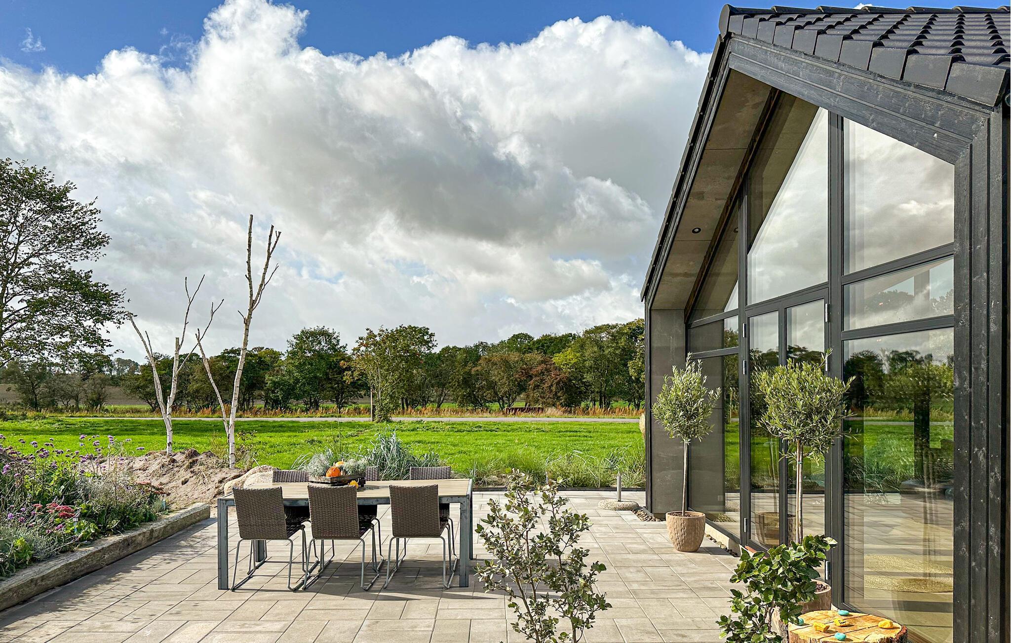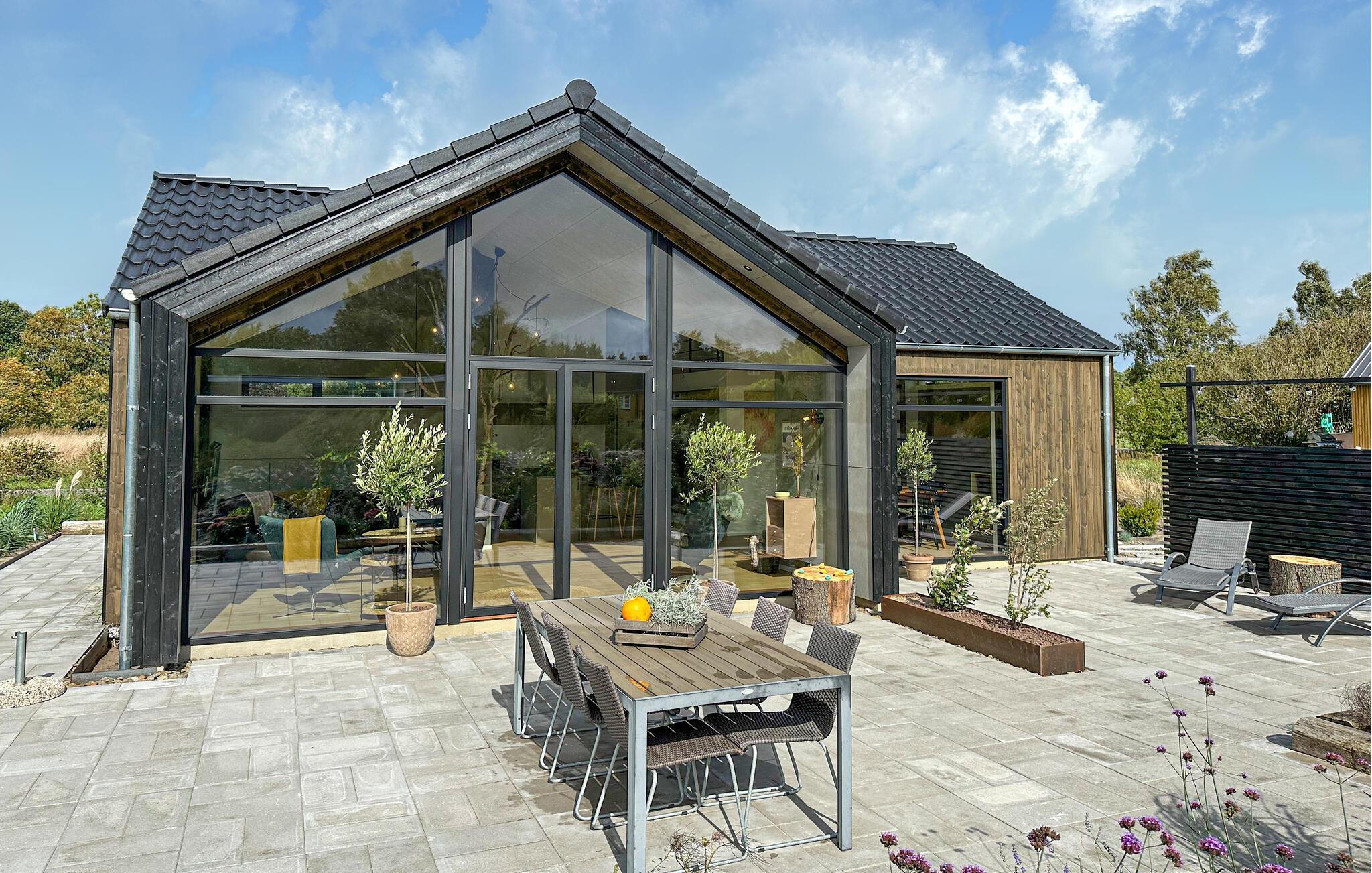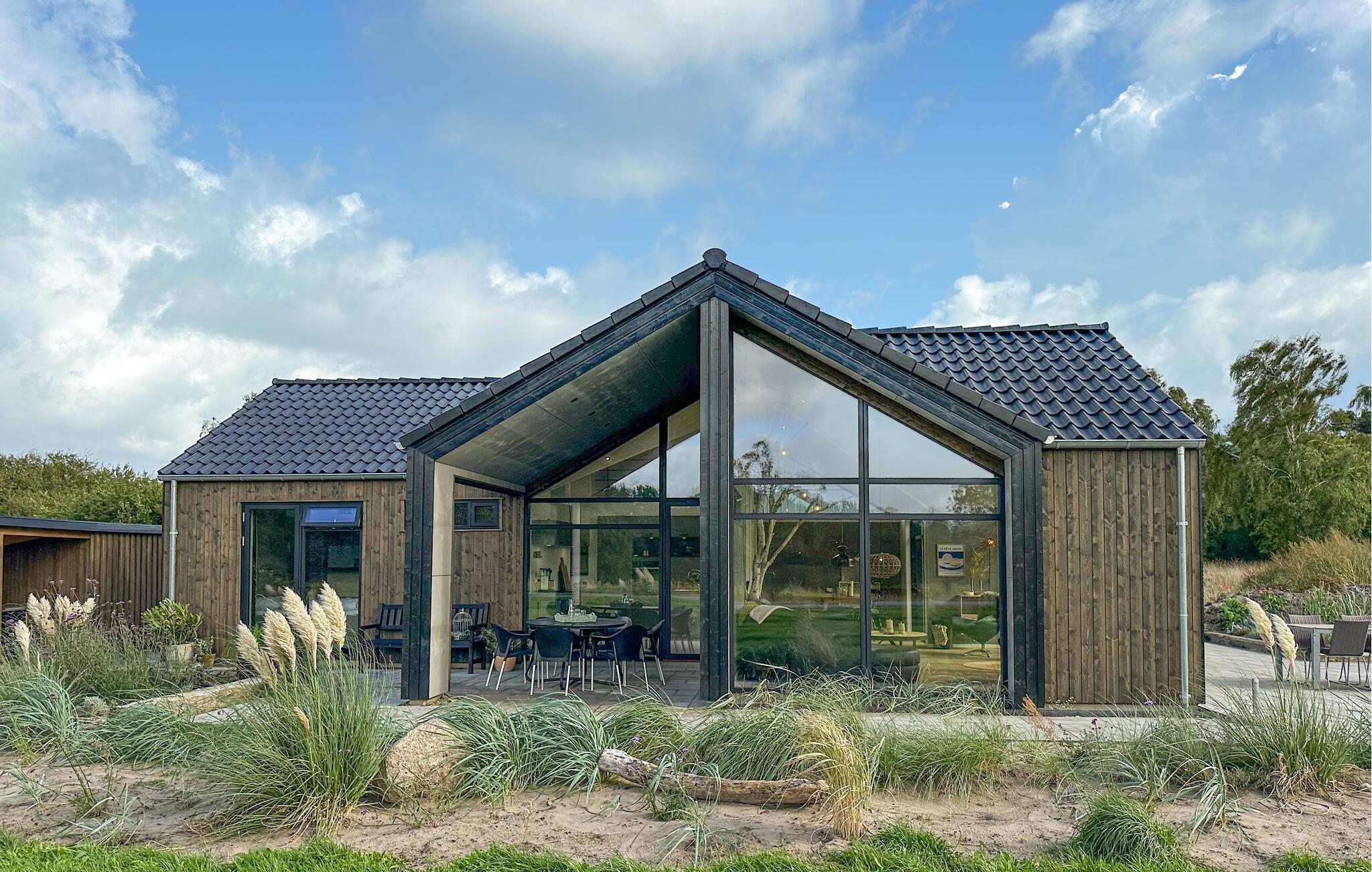 Moderne feriehus i Snogebæk nær strand og charmerende havn med stilfuld indretning og stor terrasse til hyggelige dage.