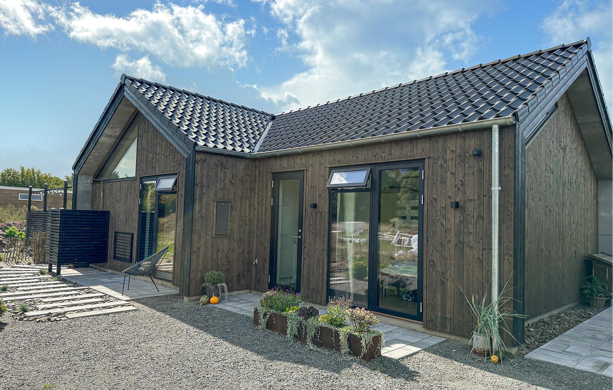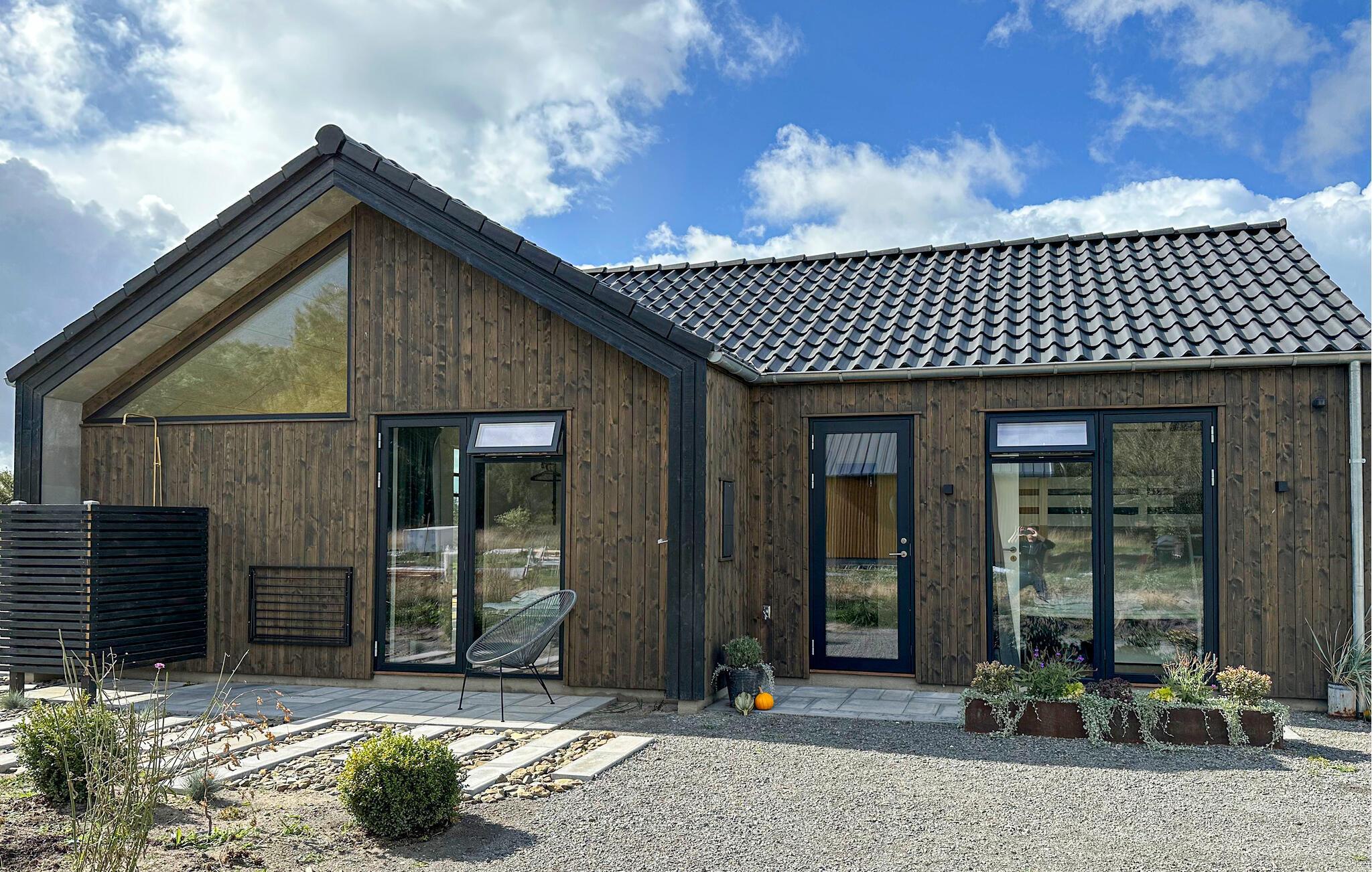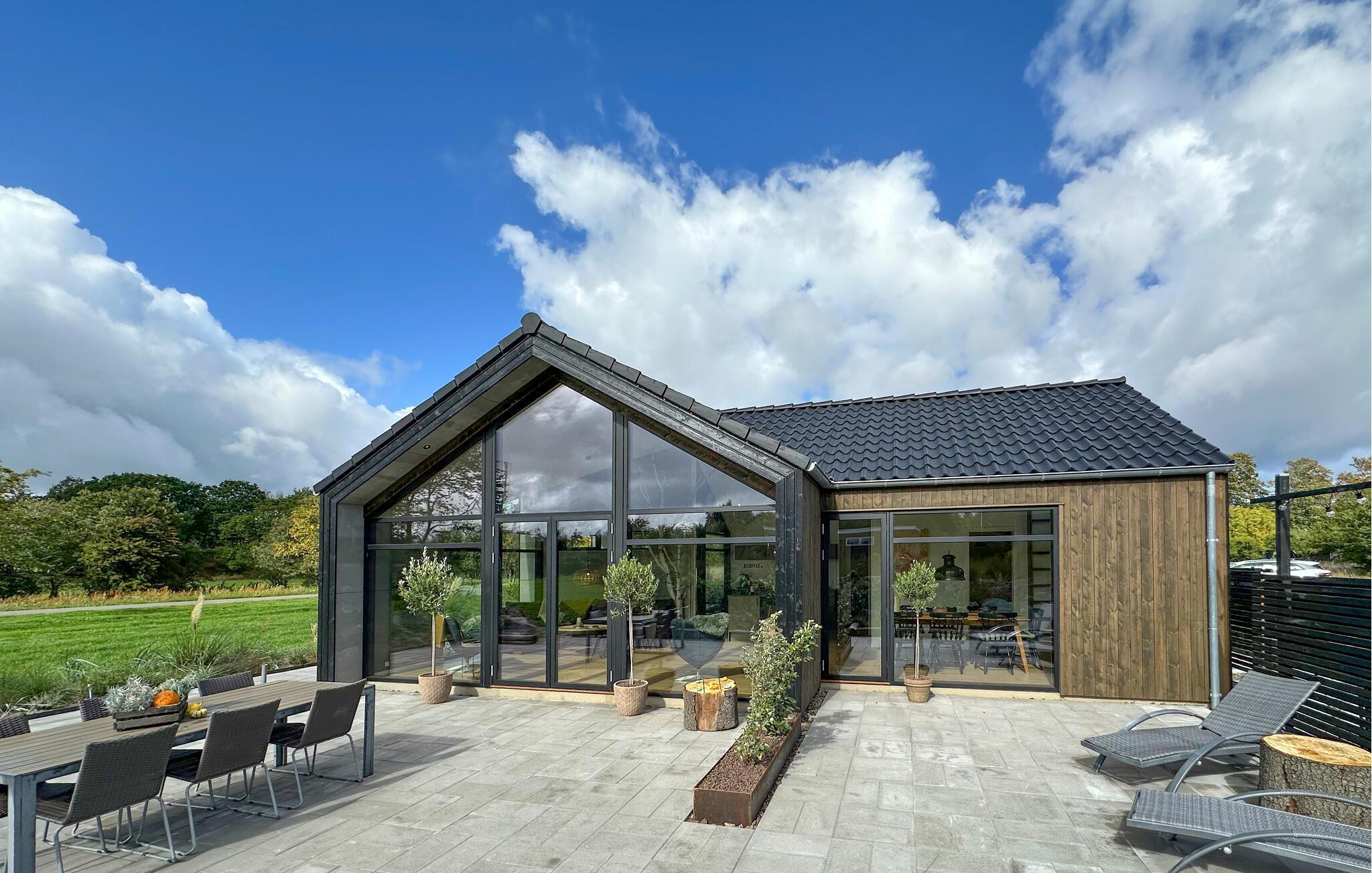 Moderne feriehus i Snogebæk nær strand og charmerende havn med stilfuld indretning og stor terrasse til hyggelige dage.