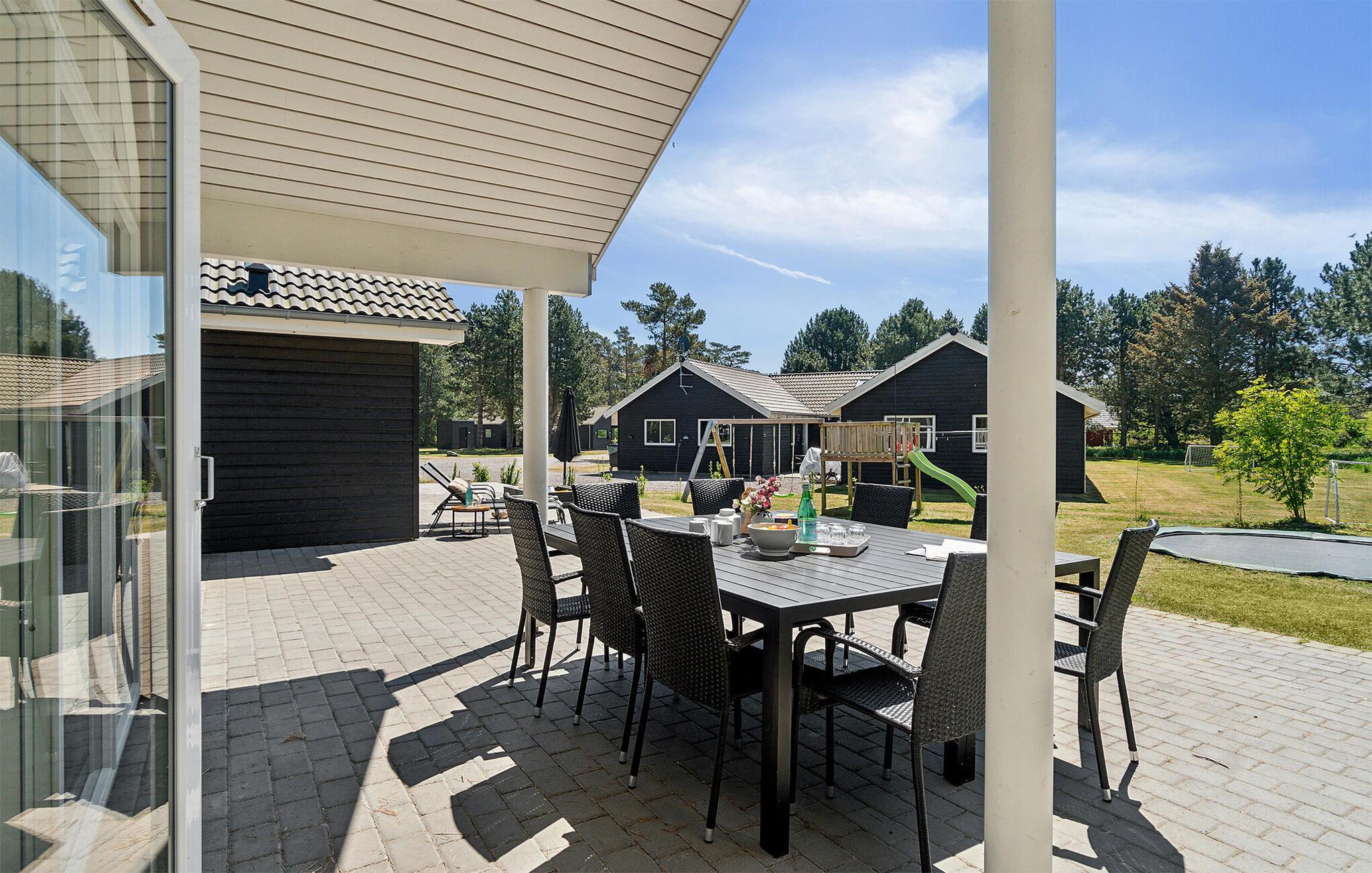 Dette nydelige og meget veludstyrede kvalitetsferiehus oser af feriehygge og byder på masser af aktivitetsmuligheder uanset årstid. Huset er bygget i 2020 og fremtræder overalt utroligt lækkert med en flot swimmingpool som det naturlige samlingspunkt i huset, hvor børn og barnlige sjæle kan boltre sig i vandet i flere timer. I kan også nyde ferien med en tur i det store spabad eller varme jer i den hyggelige sauna. Her er virkelig god plads omkring spisebordet, og i det nydelige, åbne køkken med alle moderne faciliteter, går tilberedning af feriens mange måltider som en leg. Huset byder også på et stort aktivitetsrum, hvor I kan spille bordtennis, billard eller bordfodbold, og for børnene er der udendørs gynger, sandkasse og et legetårn, ligesom de mere voksne kan hygge sig på husets petanquebane. Når I trænger til at slappe af, er de komfortable møbler i stuen et godt sted at opholde sig, eller hvorfor ikke nyde ferien ude på de gode solvogne på den ene af husets terrrasseområder - det kan man da kalde ferie.