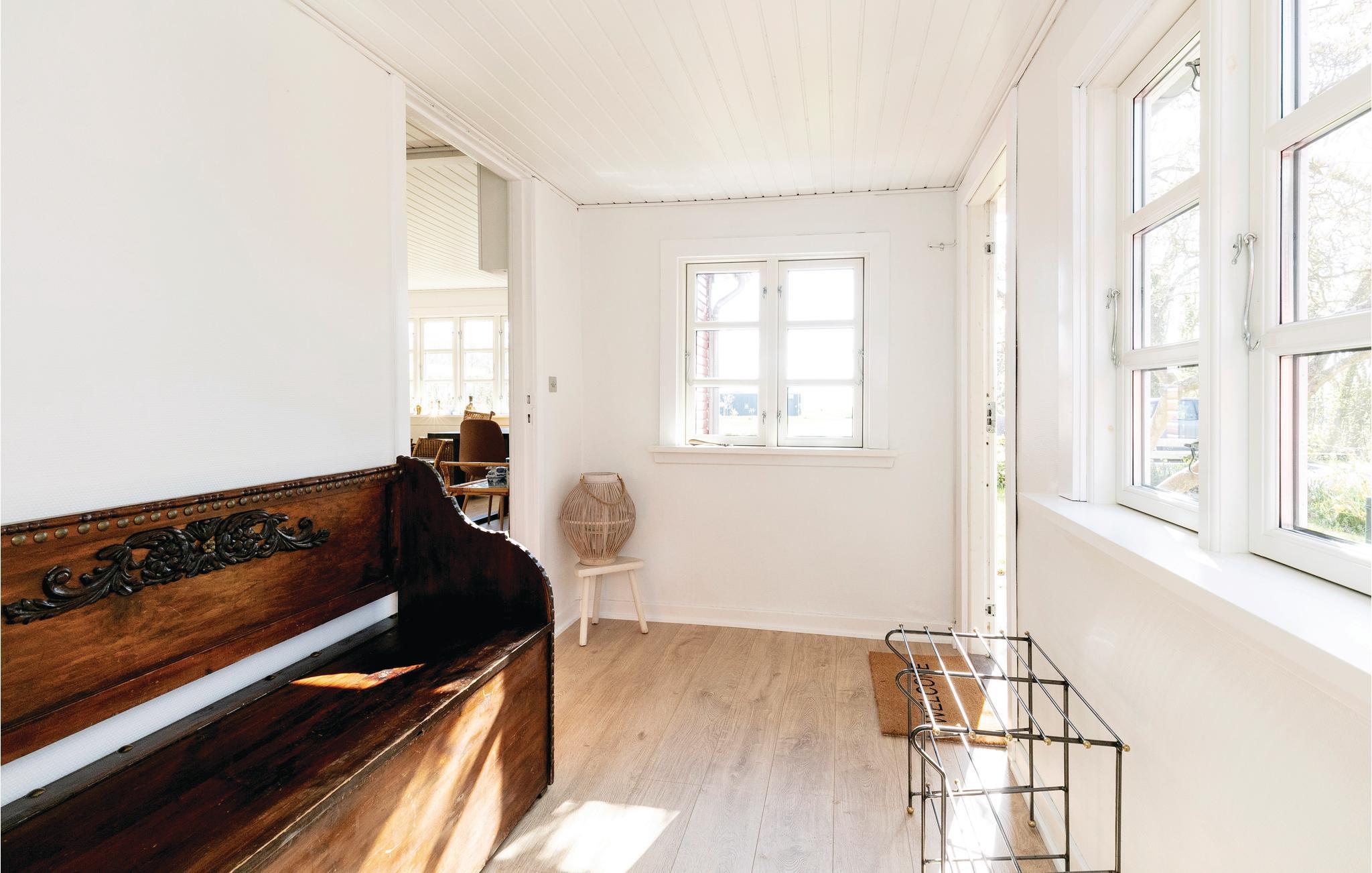 Sommerhuset fremtræder lyst og charmerende med flot åbent køkken, et nydeligt badeværelse og en velindrettet spise- og opholdsstue med brændeovn, der er husets primære varmekilde. I dette hyggelige sommerhus findes to soveværelser, hvoraf det store soveværelse har direkte udgang til en lille terrasse bagved huset. Foran sommerhuset finder I en hyggelig lille fliseterrasse med gode havemøbler.