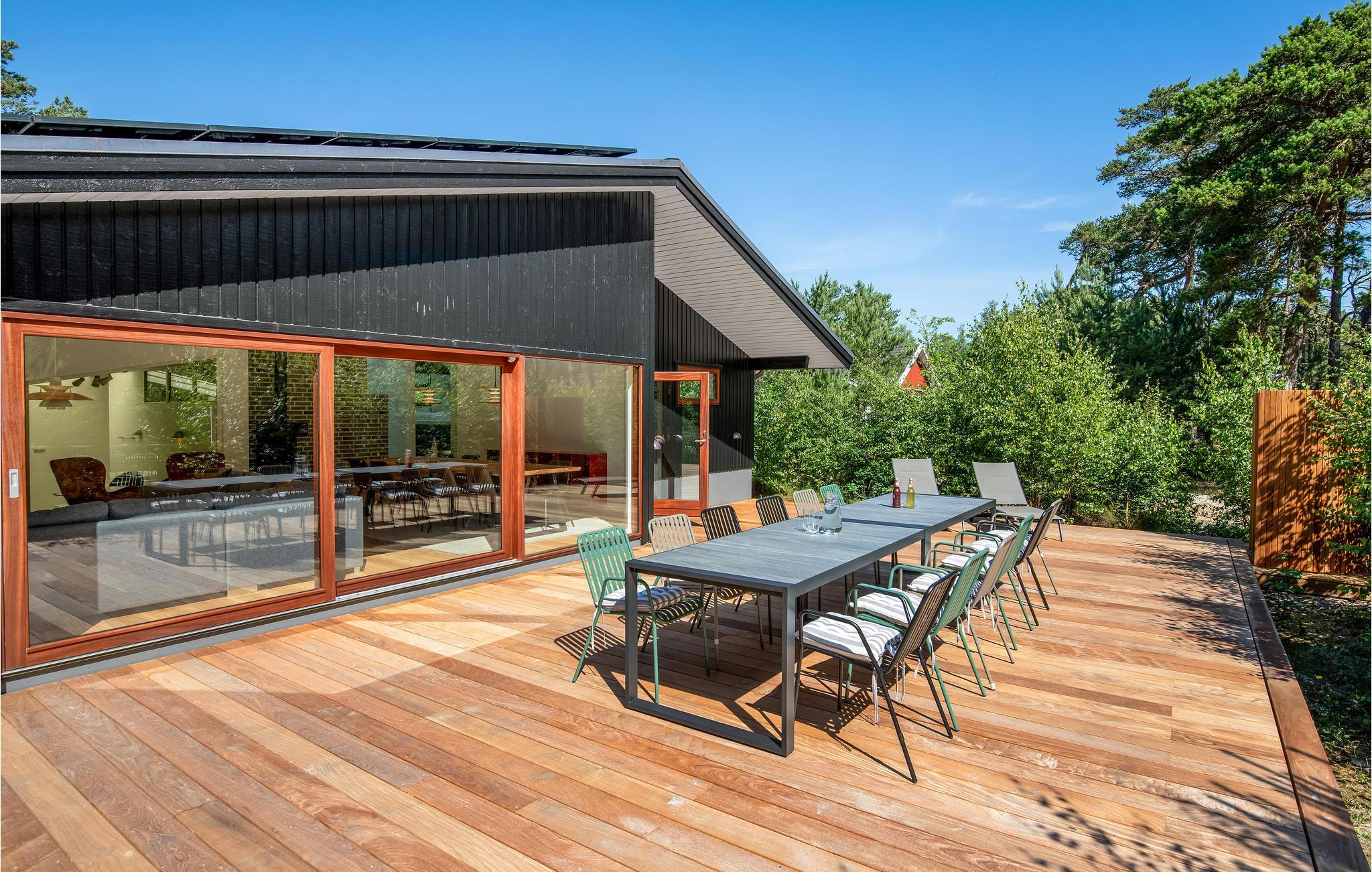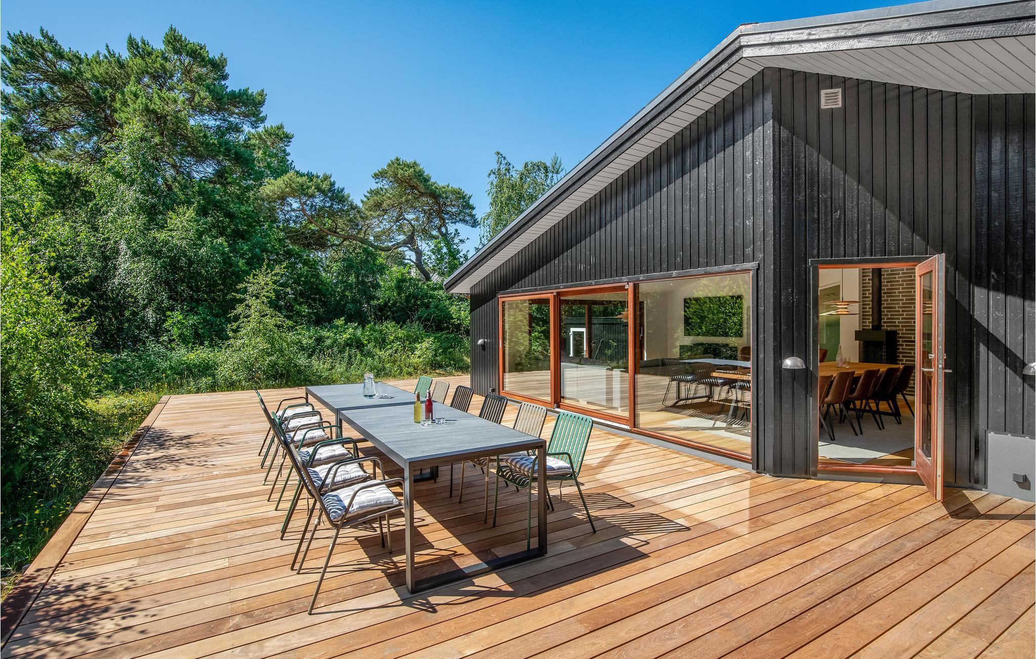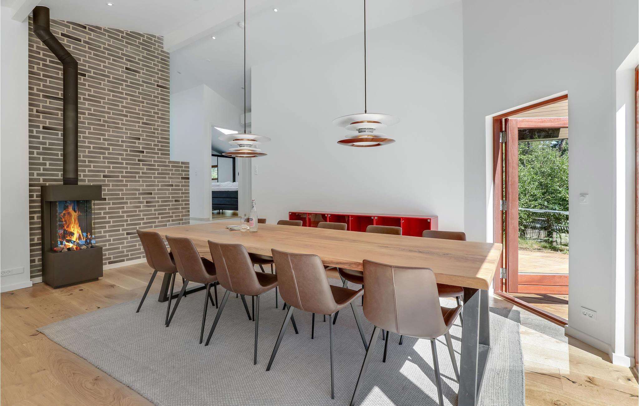 Ferieboligen har gulvvarme overalt og et ventilationssystem, hvilket sørger for et behageligt indeklima. Her får I nogle skønne dage, uanset om sæsonen er til indendørshygge eller sol i haven. I opholdsrummet kan I tænde op i el-pejsen på kølige dage eller give jer i kast med madlavningen, mens børnene plasker i swimmingpoolen, som I har udsyn til fra køkkenet. Der er fem gode soveværelser, så huset er godt indrettet til 11 personer.