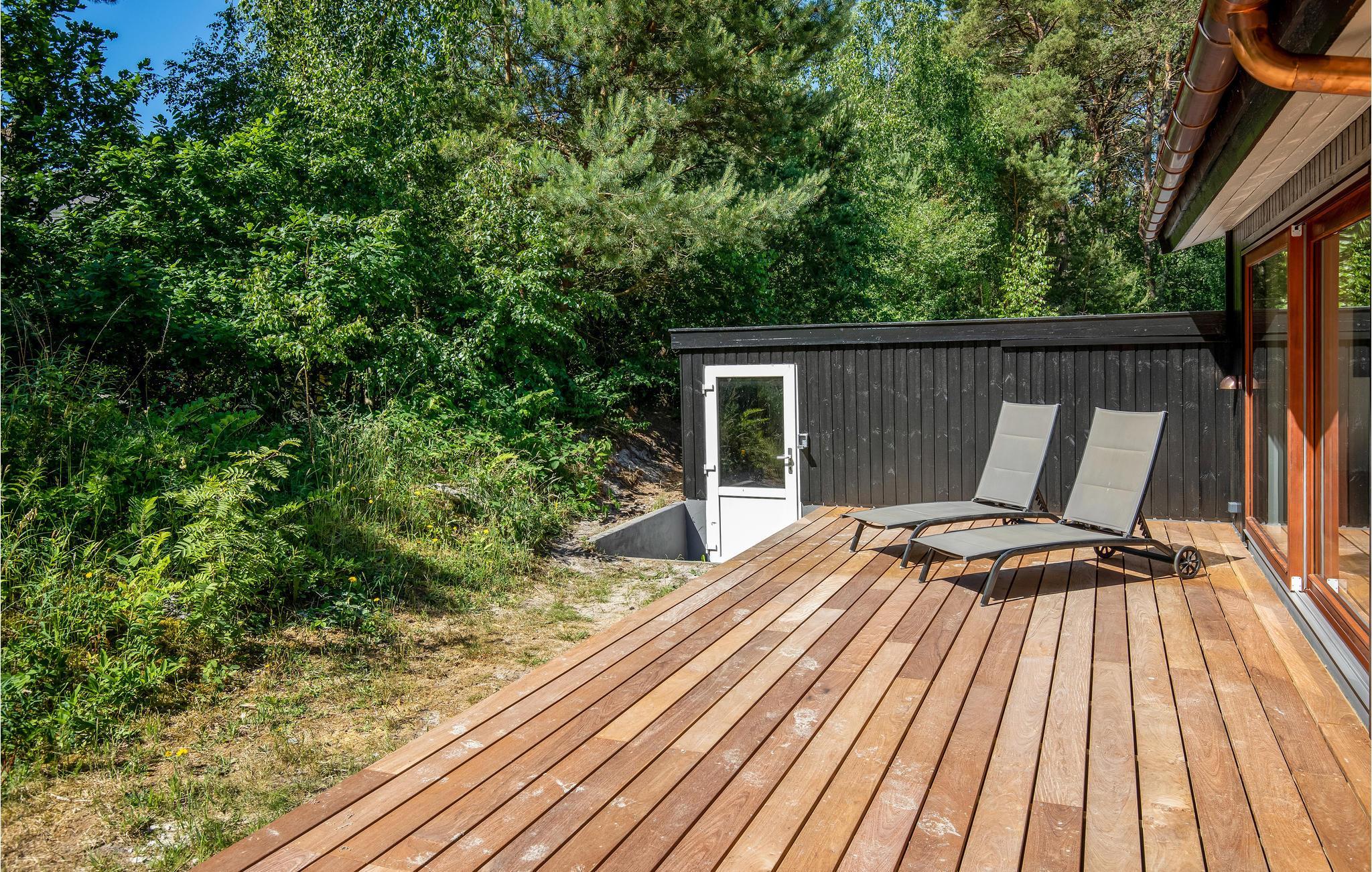Spaområdet byder på liggestole, en stor sauna, boblebad og opvarmet indendørs swimmingpool, så her er der masser af muligheder til en dag med indendørsvejr. Når solen er fremme, kan I rykke selskabet ud på en af de to store terrasser med havemøbler og gasgrill, hvor I kan nyde kigget til havet, som ikke er mange meter væk. Rundt om huset er der en dejlig grund, hvor I kan lytte til fuglefløjt og nyde freden og roen, mens børnene boltrer sig i det fri eller hygger sig med at bygge sandslotte.
