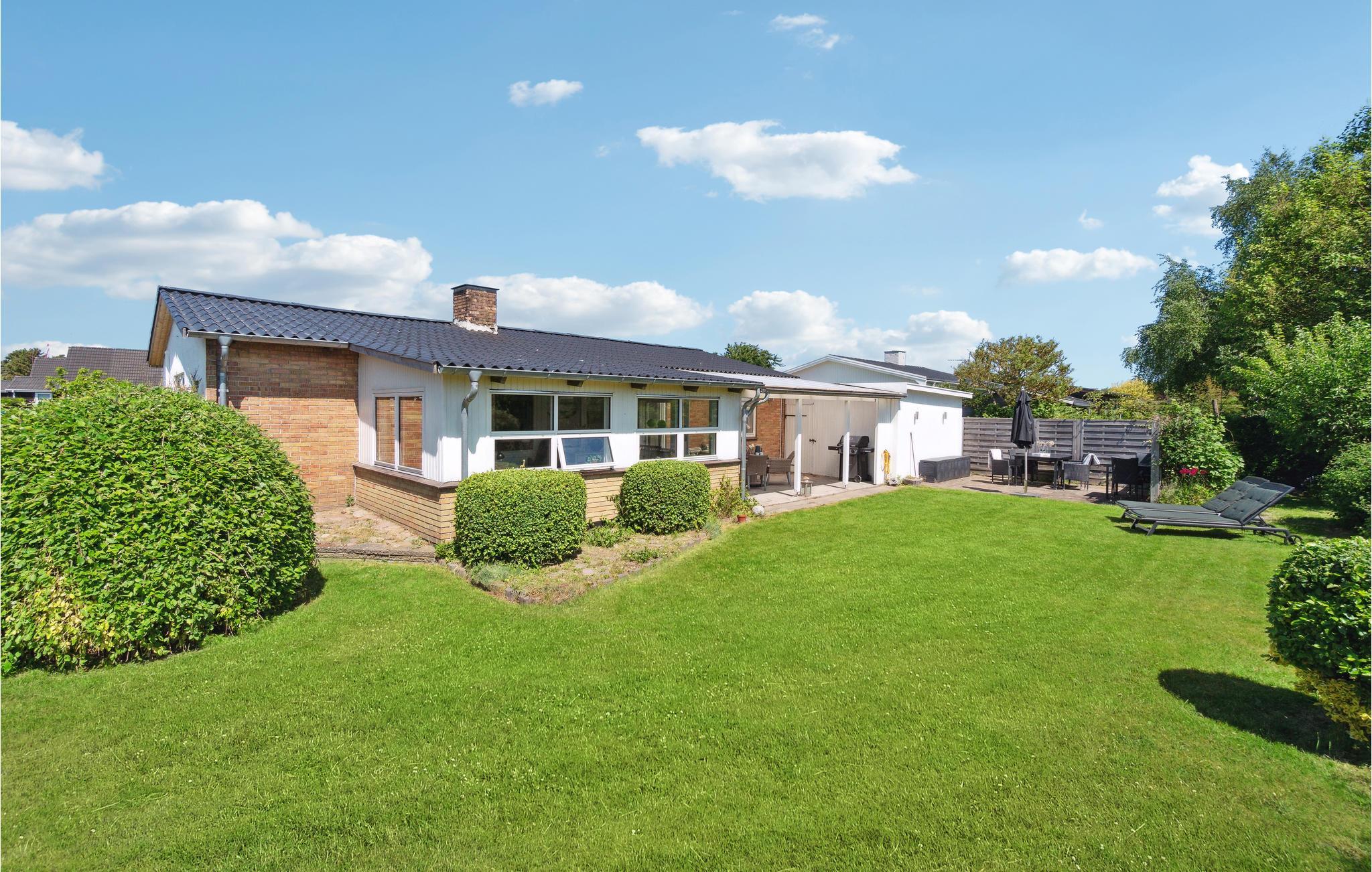 Hyggeligt feriehus i Snogebæk med 600 m til sandstrand, overdækket terrasse og indhegnet have.