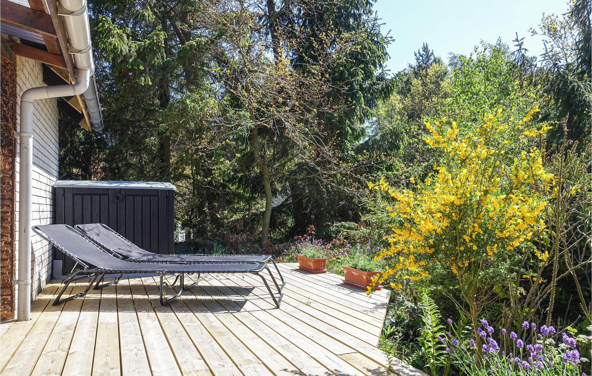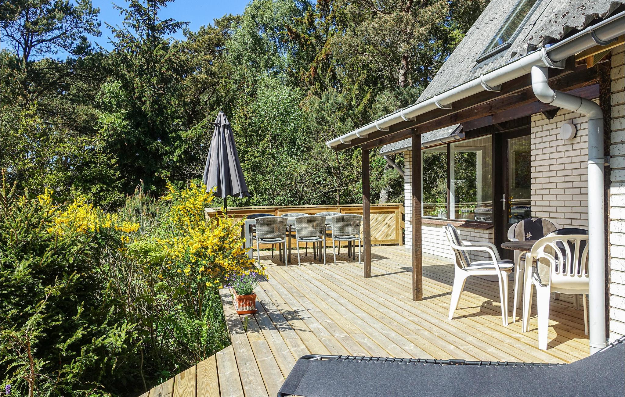 I løbet af dagen kan I læne jer tilbage på en ugeneret, delvist overdækket træterrasse, hvor der også er en grill til rådighed. Der er også en terrasse med morgensol, så her kan I sætte jer med en brunch, hvis dagen skal have en rolig start. Trænger man til en alenestund, kan man sætte sig med en bog og en kop kaffe på altanen.