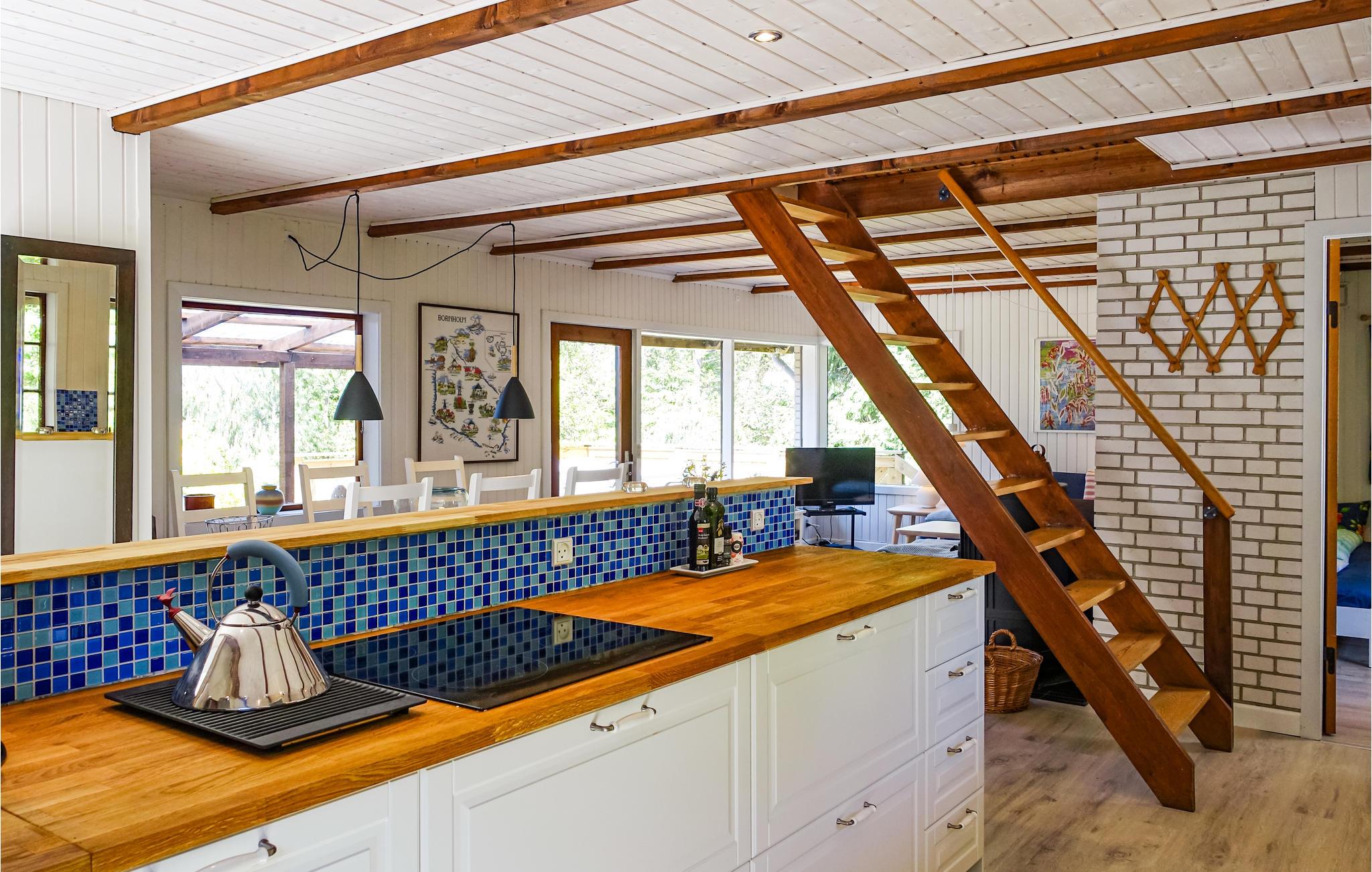 Huset ligger få minutters gang fra charmerende Snogebæk og kun 400 m fra vandkanten ved skøn sandstrand. Der er kun få minutters gang til Snogebæk, som har en masse at byde på til det ubekymrede ferieliv. Lige fra en flot sandstrand til den charmerende havn med den fine, gamle træbro og skønne kræmmermarkeder, moderne røgeri og den smukke Povls Kirke i romansk byggestil. I befinder jer på den sydøstlige del af Bornholms kystlinje, og derfor har I heller ikke langt til alle de spændende seværdigheder i Nexø og den forrygende strand ved Dueodde.