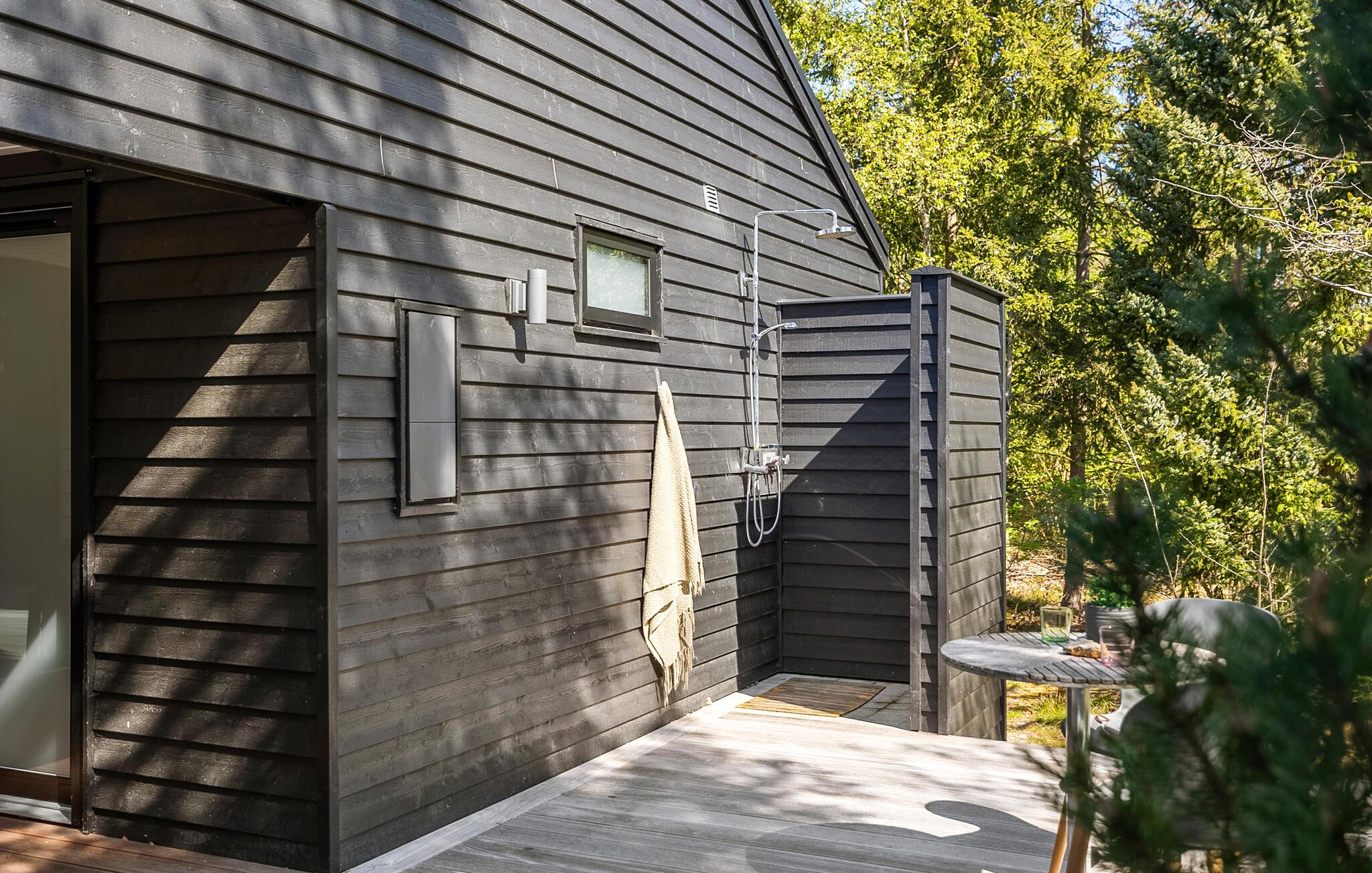 Om sommeren kan I gå direkte hjem fra stranden med badetøjet på og bruse sandet af under udebruseren. I kan nyde udelivet på den 100 m2 store, delvist overdækkede træterrasse, som ligger helt ugeneret og er forsynet med havemøbler og grill.