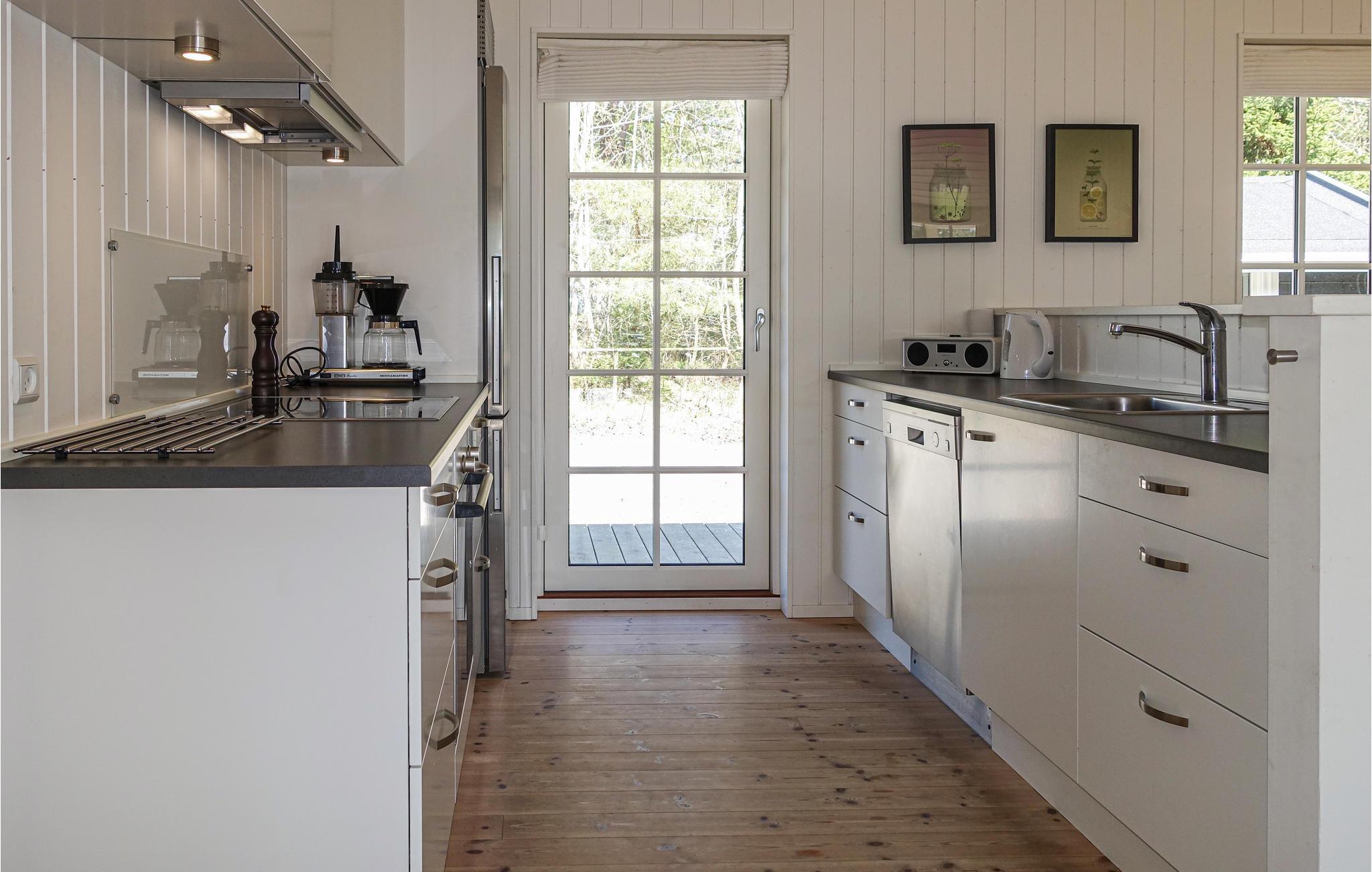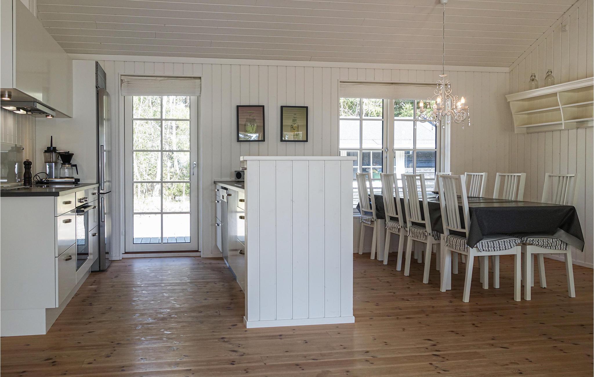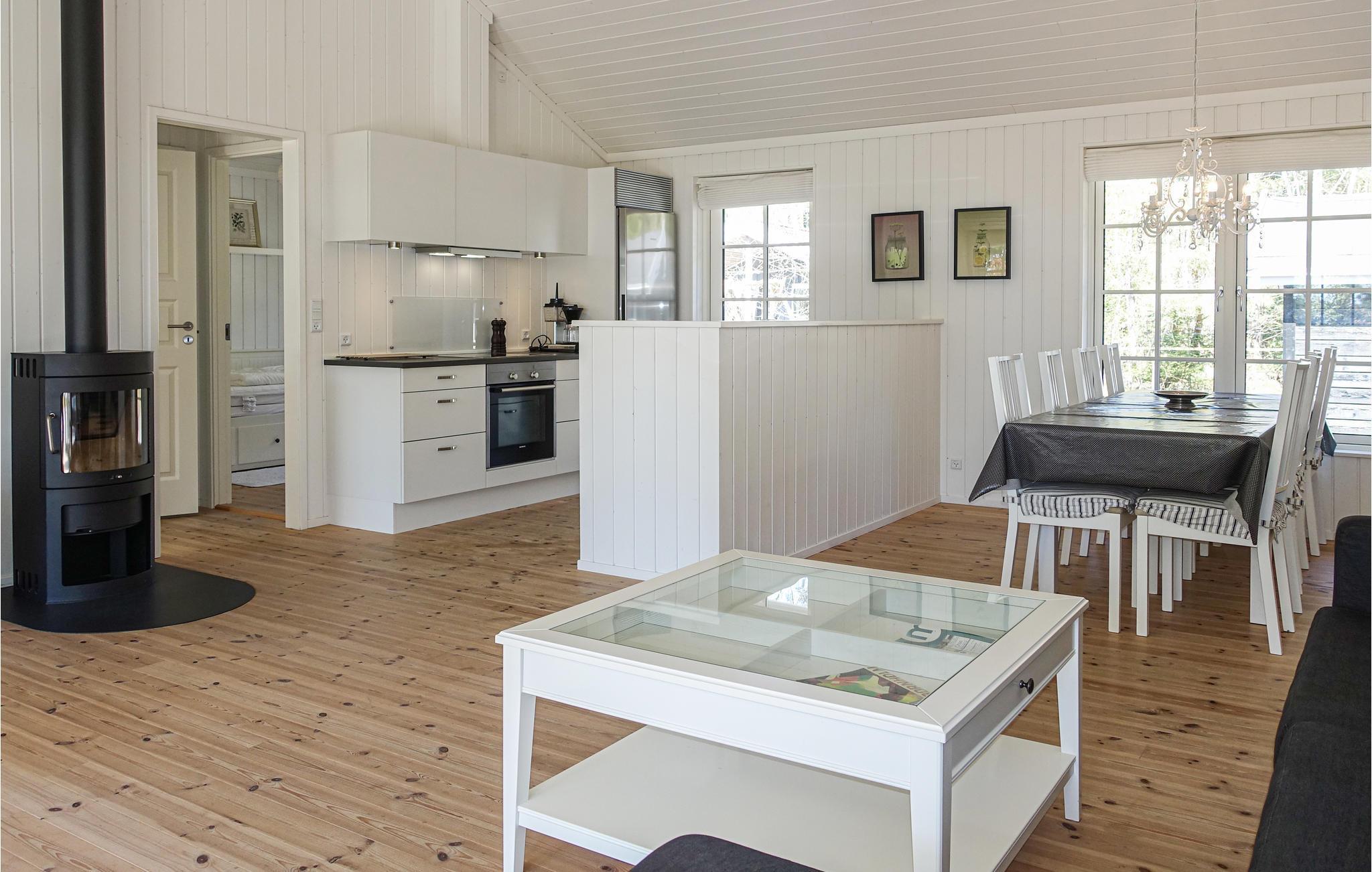 Glæd jer til et ophold i dette vidunderlige sommerhus, som præsenterer sig lækkert og moderne ude og inde. Opholdsrummet giver jer nogle skønne lyse rammer, hvor I kan slappe af og tænde op i brændeovnen på kølige dage.
