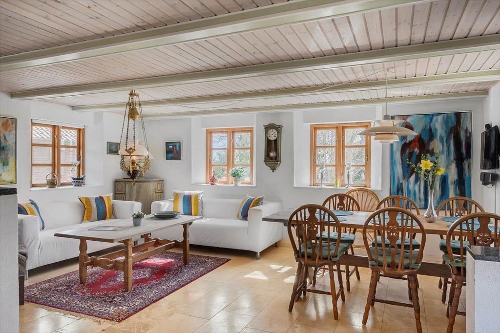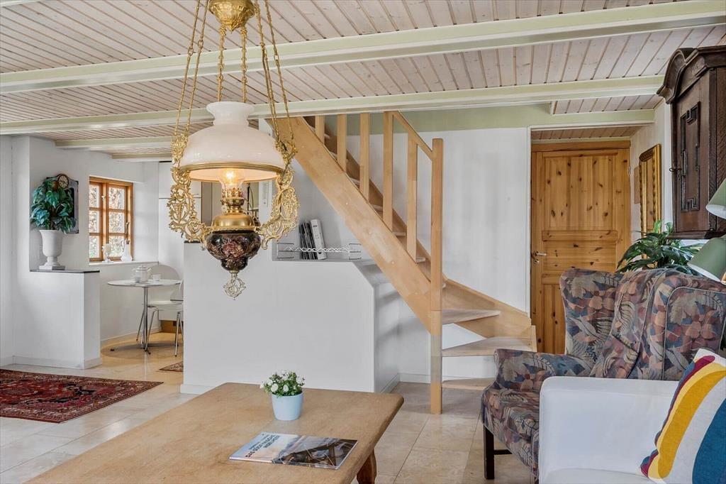 Det charmerende sommerhus byder på en hyggelig og autentisk atmosfære fra det øjeblik, du træder ind ad døren. Her er bindingsværk, synlige loftsbjælker og et varmt, naturligt lysindfald, der straks får dig til at føle dig hjemme. I det åbne opholdsrum smelter stue og køkken sammen og skaber en indbydende ramme om fælles måltider, brætspil og lange samtaler. Når du læner dig tilbage i sofaen, har du udsigt til haven og det glitrende Lillebælt – et blik, der både beroliger og inspirerer. Soveværelset er hyggeligt indrettede og giver dig mulighed for ro og restitution efter en dag i naturens tegn. Badeværelset fuldender husets autentiske stemning med sin enkle og harmoniske stil. Her er med andre ord lagt op til en ferie, hvor du kan slappe helt af og nyde livet i et ægte, dansk sommerhusmiljø.