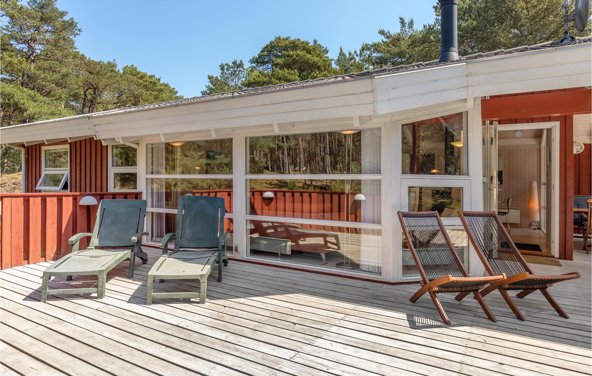I et attraktivt sommerhusområde ligger dette nydelige og velholdte træsommerhus på en skøn naturgrund. Huset har en flot og moderne indretning med komfortable møbler samt brændeovn, og fra husets dejlige opholdsstue er der udsigt til den flotte natur. Pæn spisestue og dejligt åbent køkken. I dette kvalitetssommerhus får I også 2 badeværelser, heraf et med sauna, 2 store soveværelser samt et børneværelse. Hemsen er bygget indover kontoret og er velegnet til børnene, når der skal leges og hygges. En skøn stor træterrasse giver mulighed for nogle dejlige grillaftener og solbadning. Fra huset er der ikke langt til sandstranden og klitterne, og området er skønt til vandreture i den smukke bornholmske natur. Et skønt sommerhus af høj kvalitet med en rolig og ugenert beliggenhed.