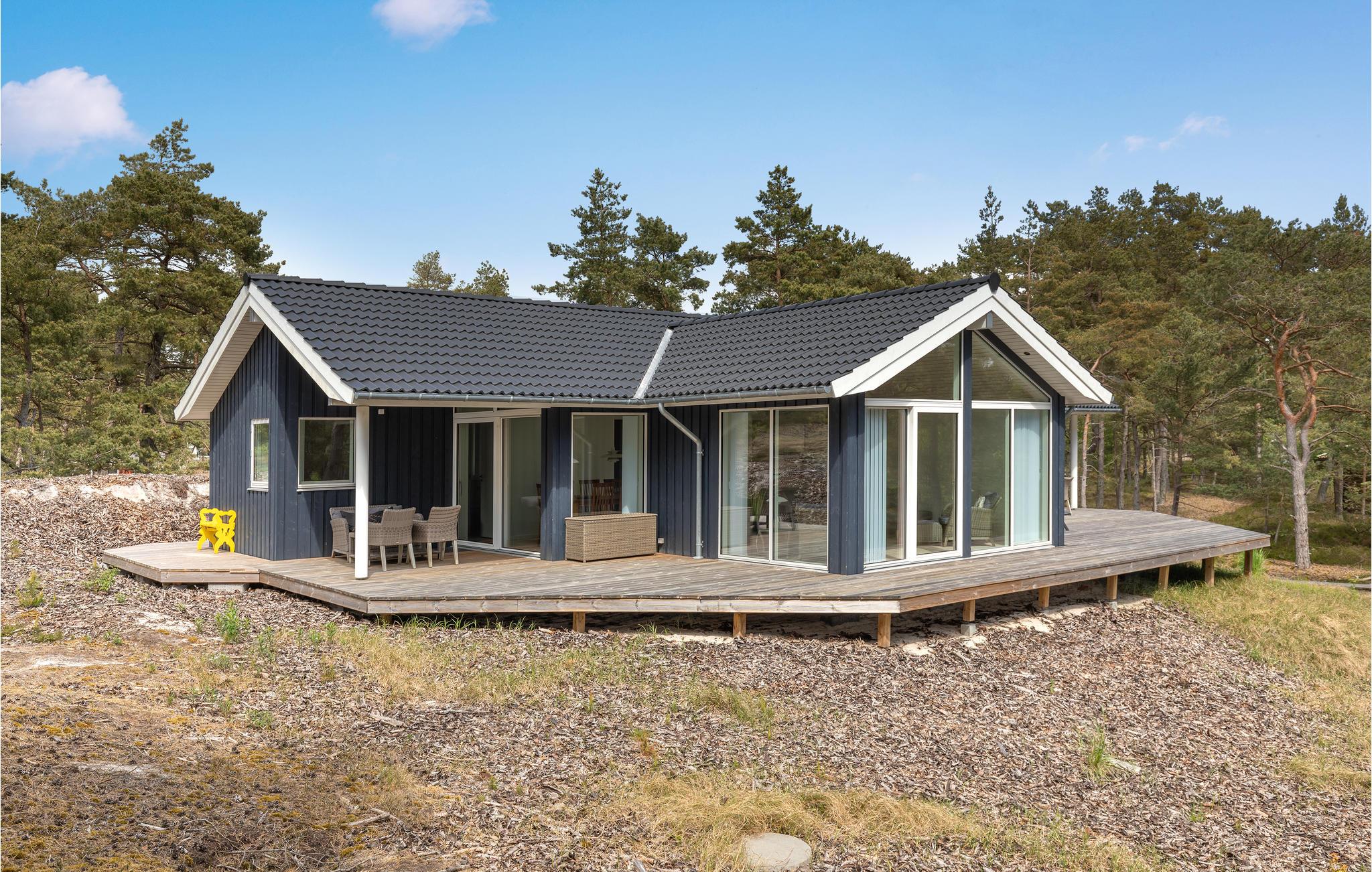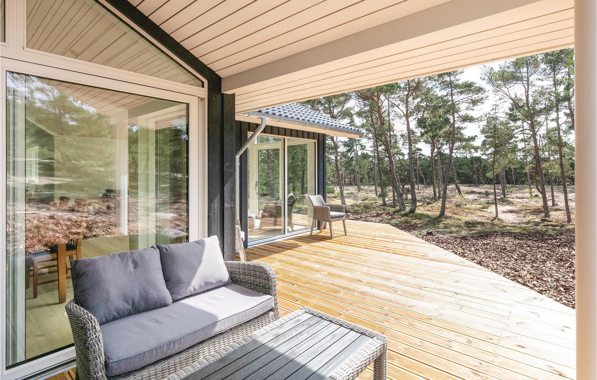 Luksussommerhus ved Nexø med sauna, moderne køkken og stor terrasse tæt på strand og skov.