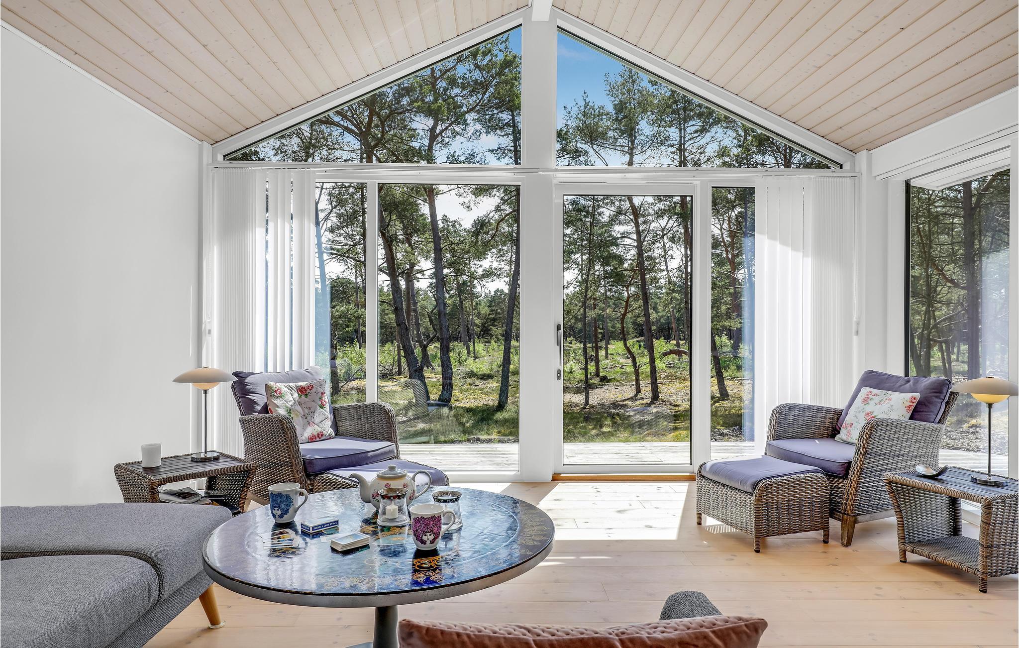 Et luksussommerhus med god plads og moderne indretning, beliggende i 1. række til fredsskov nær dejlig sandstrand. Dette skønne sommerhus fremtræder overalt lyst og indbydende og byder på to flotte badeværelser med gulvvarme samt sauna, og et nydeligt åbent køkken med alt i moderne hvidevarer, der gør det nemt og hyggeligt at tilberede feriens mange måltider. Flot kombineret spise- og opholdstue med højt til loftet, fladskærms-tv og skønt lysindfald fra de store vinduespartier. Her er gratis internet/fibernet, varmepumpe og masser af plads. Huset byder også på tre dejlige soveværelser samt en hems til børnene. Indefra dette lækre og indbydende kvalitetssommerhus har I skøn udsigt til den smukke bornholmske natur, og I fornemmer virkelig at huset ligger midt ude i naturen, og her på en stor og ugeneret naturgrund. Fra stue og køkken har I direkte udgang til husets store og flotte træterrasse, hvor ferien virkelig kan nydes i de komfortable havemøbler, og I har to store overdækkede terrasser til de lune aftener. Dette flotte luksusferiehus har en fantastisk beliggenhed i et roligt og populært sommerhusområde nær strand og 18 hullers golfbane, ligesom der er gode mulighed for vandre- og løbeture i området. Husets høje komfort og moderne faciliteter gør det velegnet til ferieophold uanset årstid.