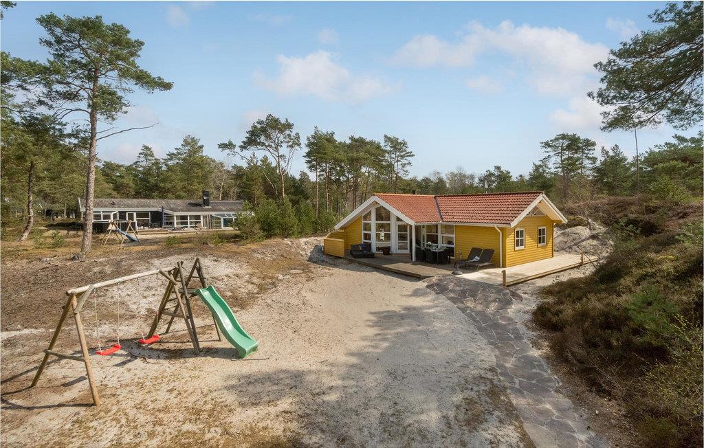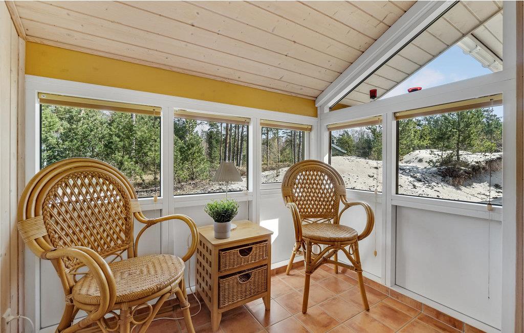 Pragtfuldt og meget velholdt luksusferiehus med alle moderne faciliteter og en dejlig stor terrasse. Det er lyst og smagfuldt indrettet i et åbent miljø med et lækkert køkken med kogeø. En dejlig spisestue med udsigt til den flotte natur og en nydelig opholdsstue med komfortable møbler og brændeovn. Huset råder over to flotte badeværelser, hvoraf det ene er luksuriøst indrettet med sauna og det andet er mindre. Der er rig mulighed for at nyde den flotte natur med vandreture langs stranden eller i den flotte fredsskov. Området er ideelt til børnefamilier. Huset ligger nær en dejlig sandstrand og en 18 hullers golfbane.