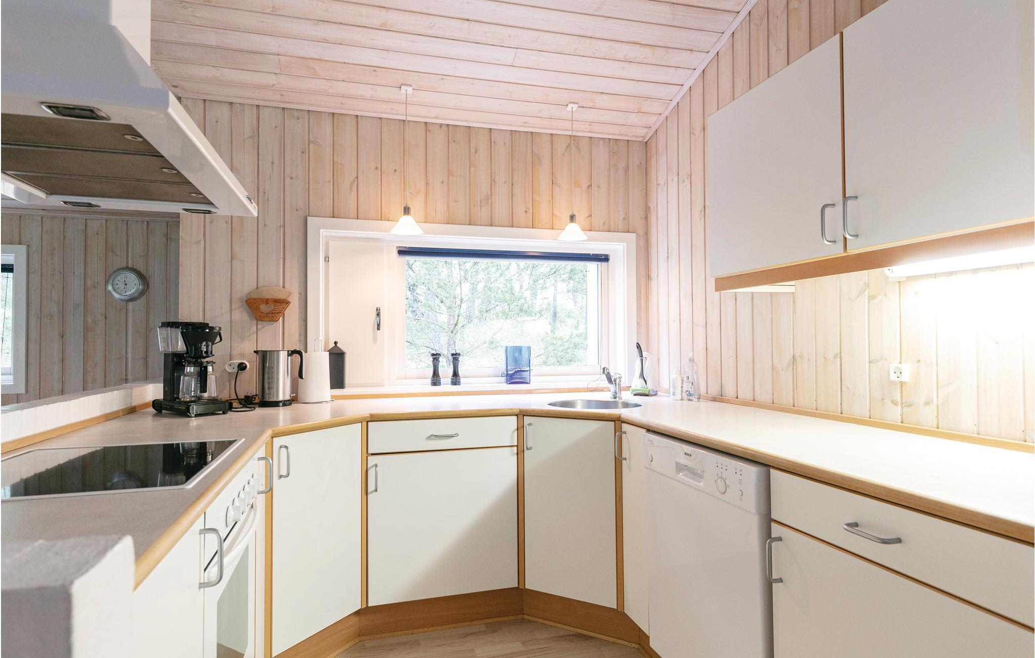 Huset fremtræder overalt lyst og moderne indrettet, her er gratis WIFI og Smart-tv, og huset er med sin høje komfort og moderne faciliteter velegnet til ferieophold uanset årstid. I dette dejlige feriehus finder I et lyst og moderne køkken, hvor feriemåltiderne nemt kan tilberedes samt nydes i husets pæne spisestue. Den nydelige opholdsstue med komfortable møbler og brændeovn, med det 48-tommers fladskærms-tv, og udsigt til naturen via de store vinduespartier, giver en rar stemning uanset årstid. Dette rummelige kvalitetssommerhus byder også på 2 dejlige badeværelser, heraf et med spa-bad.