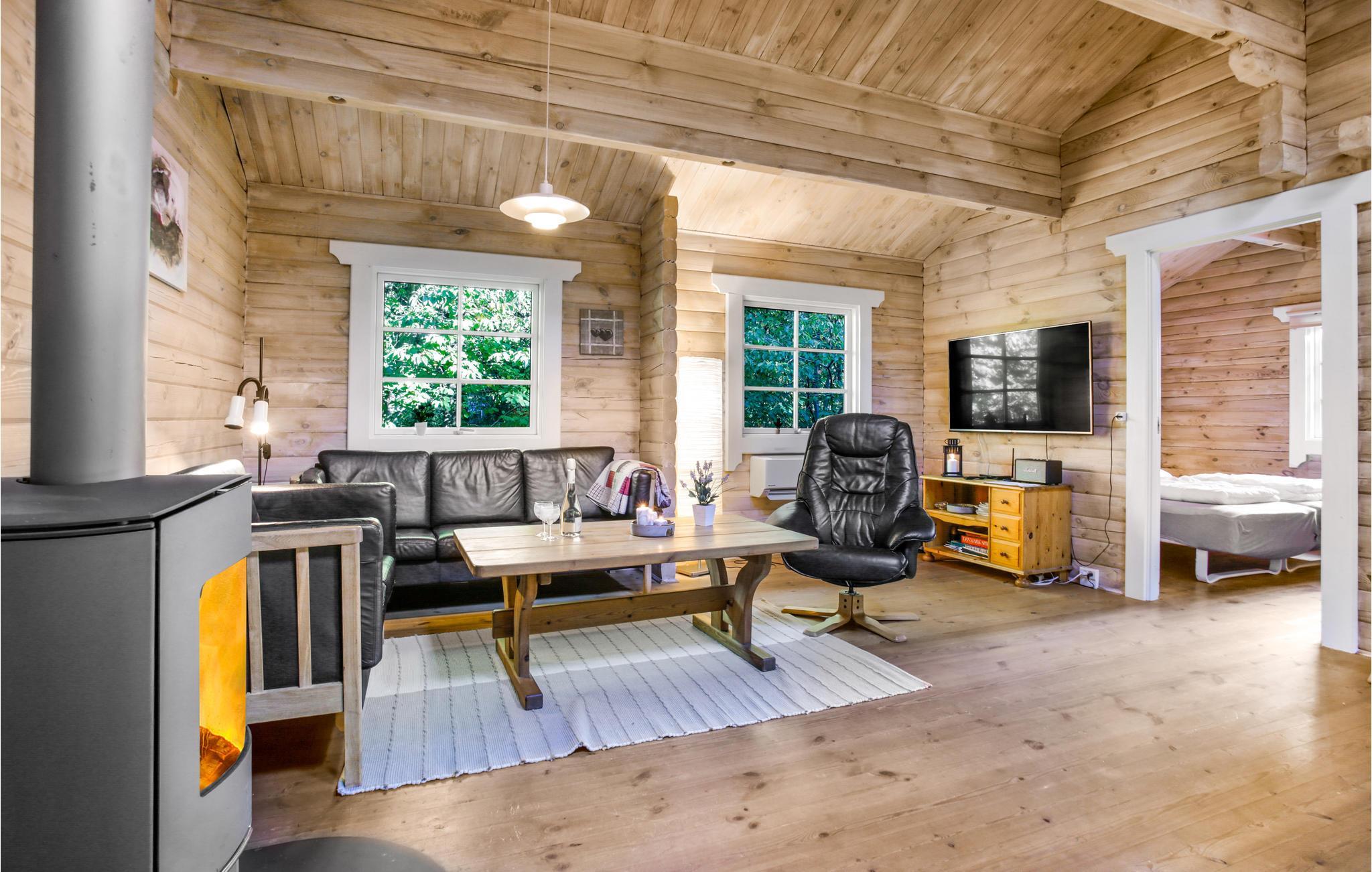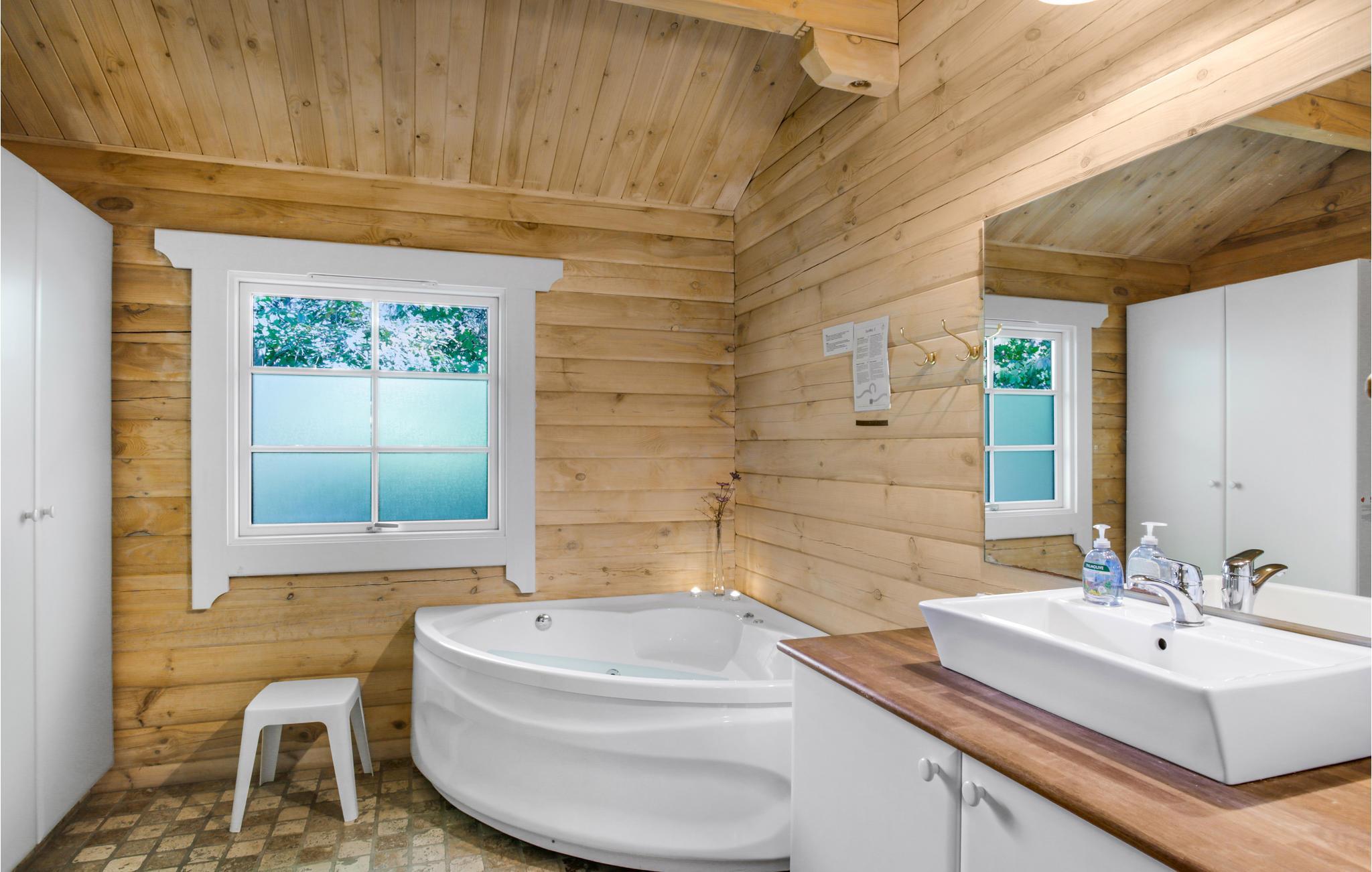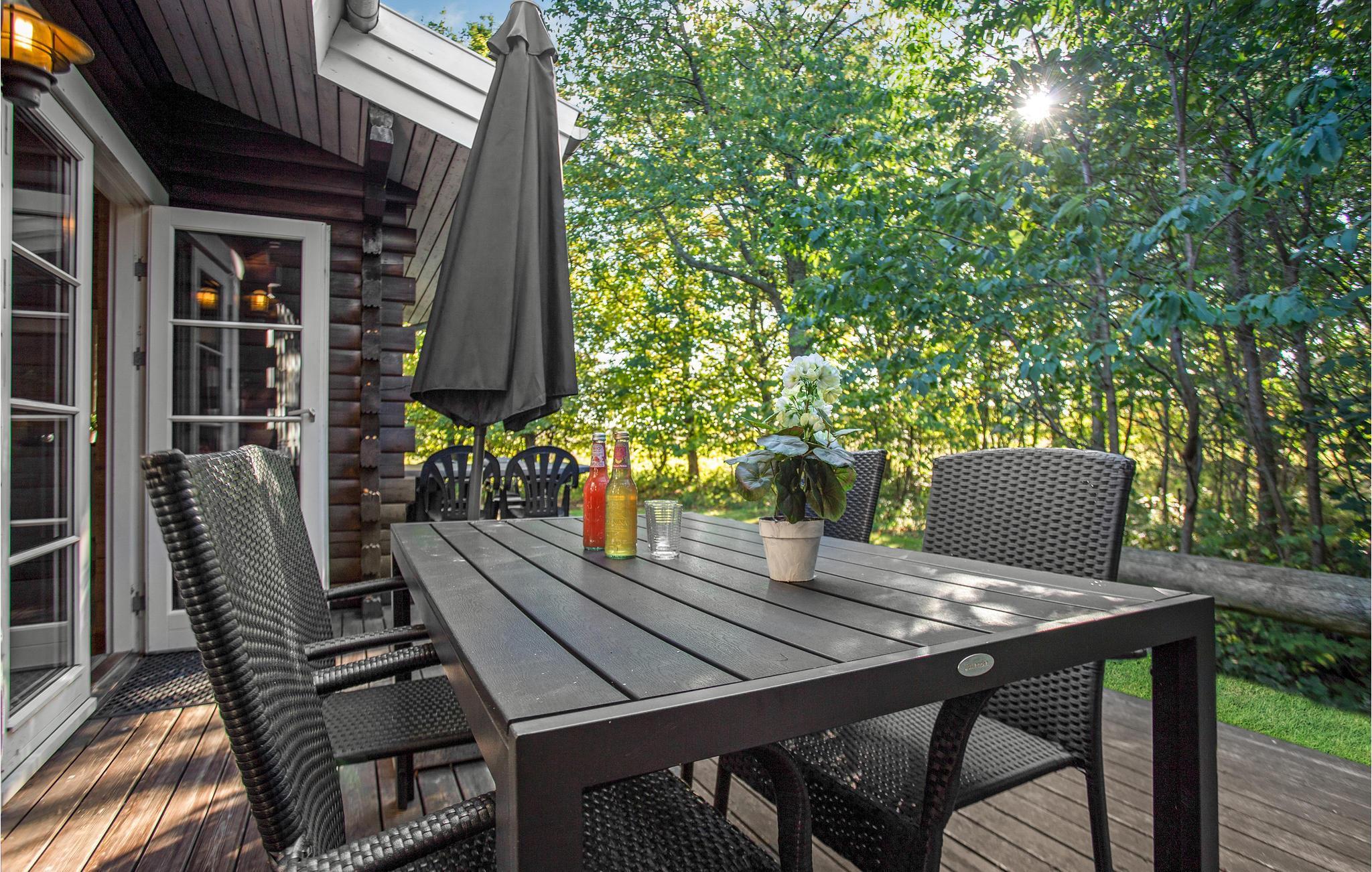 Hyggeligt bjælkehus med spabad og naturudsigt