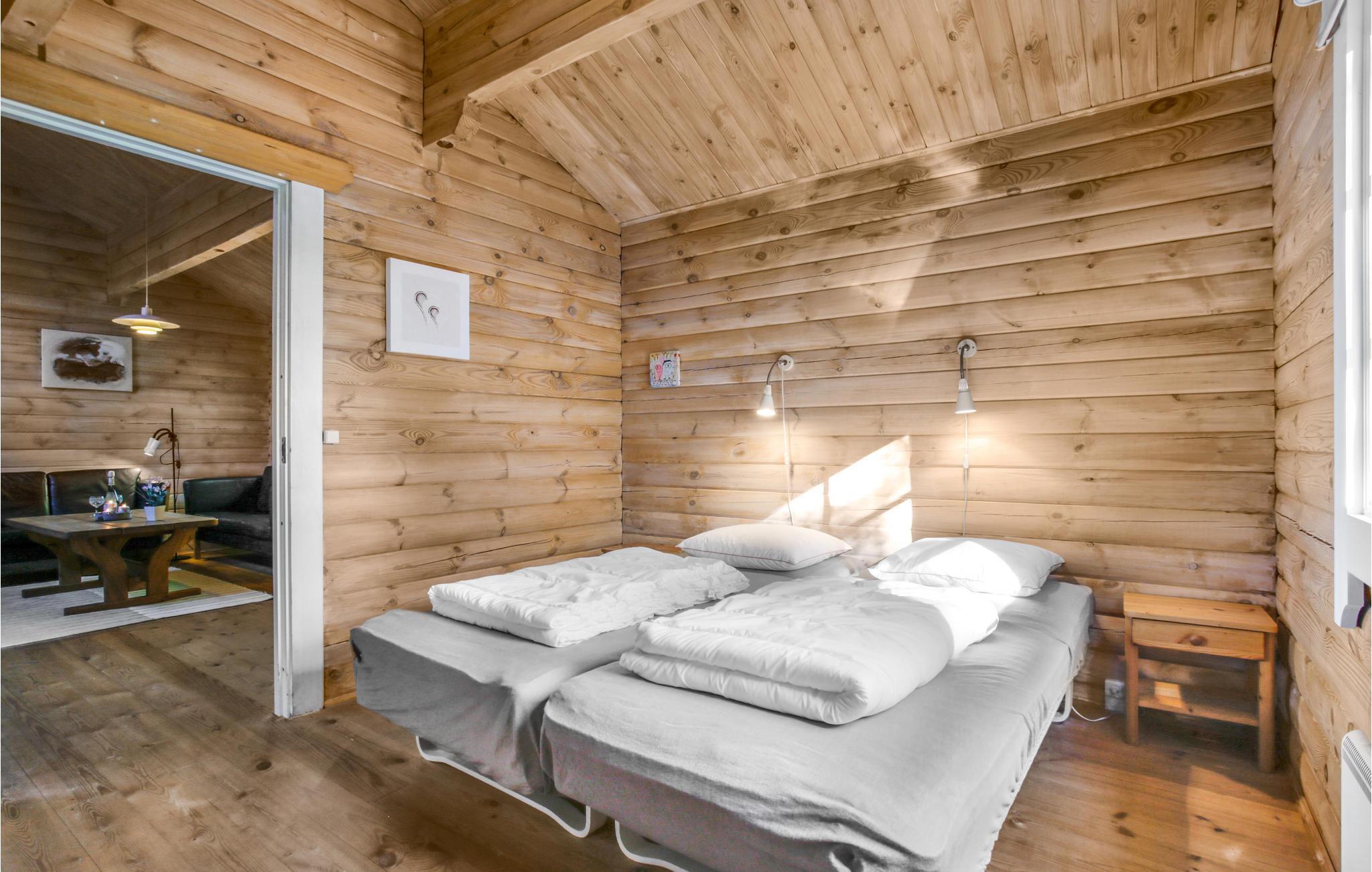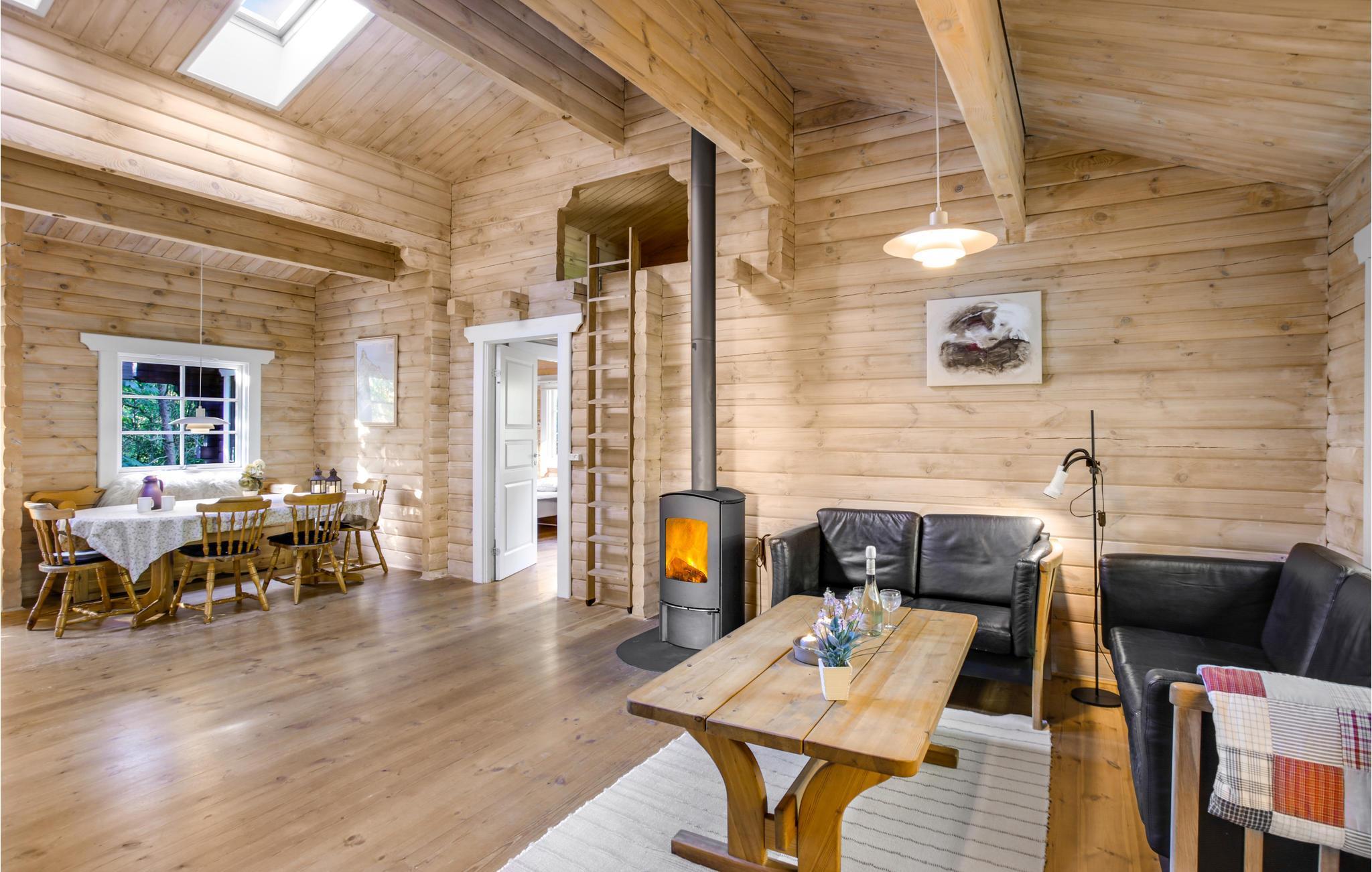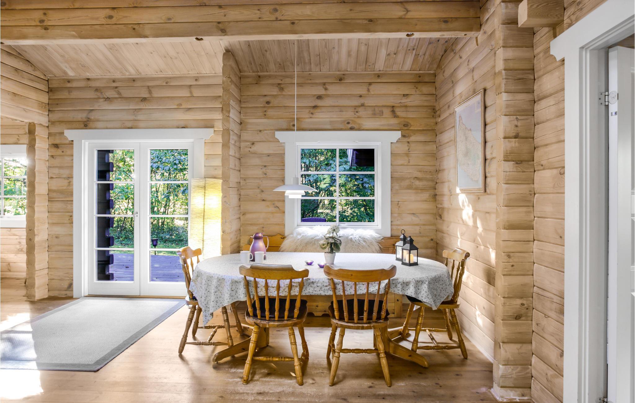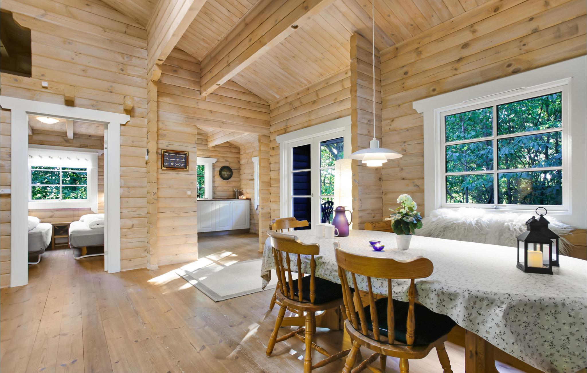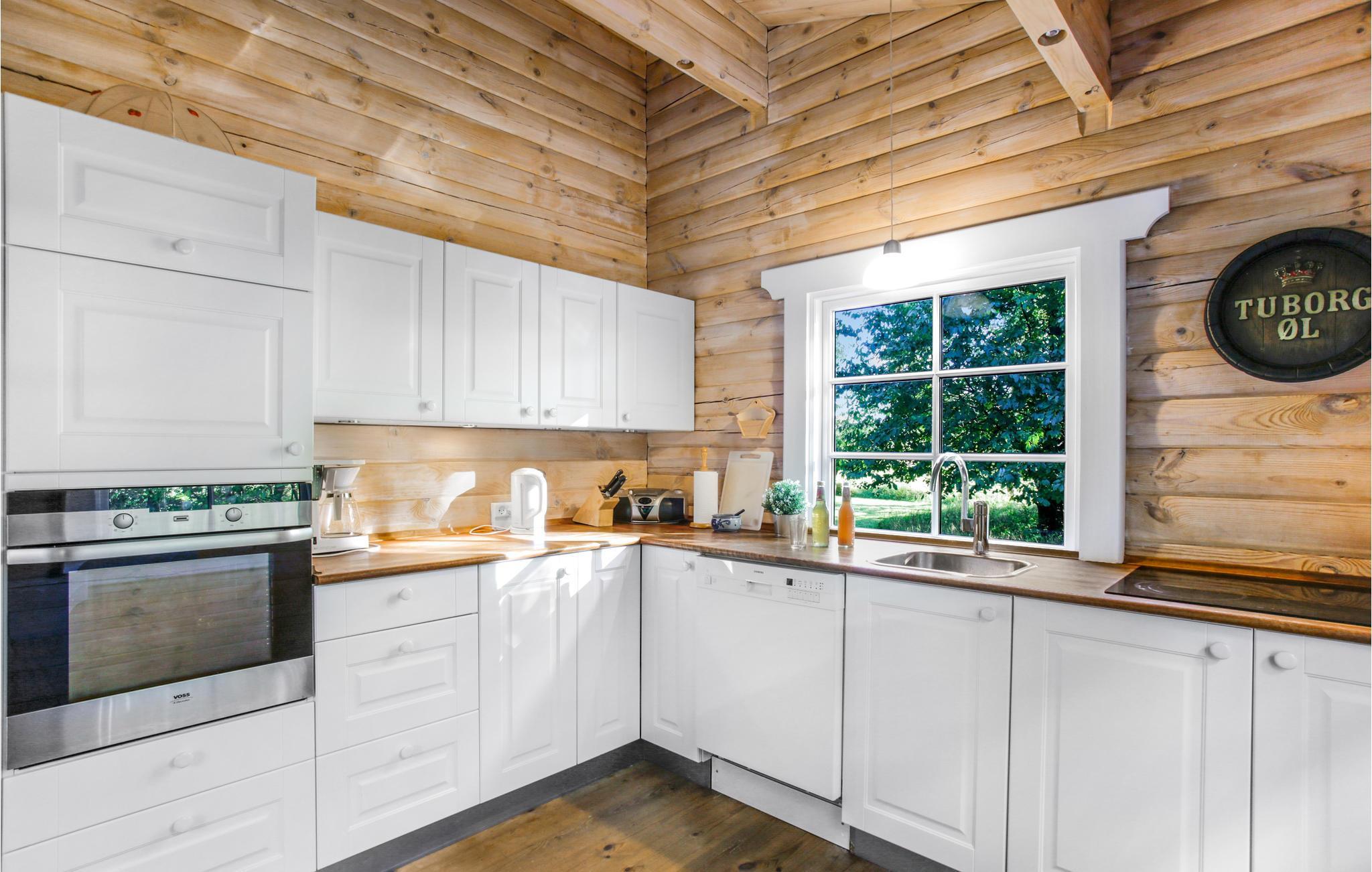 Dejligt bjælkehus med hyggelig atmosfære og mange moderne faciliteter. Det er lyst og venligt indrettet med et flot og veludstyret køkken, hvor I kan tilberede mange måltider i et rart og sundt indemiljø. I dette flotte, rustikke feriehus er der bl.a. to hemse, hvoraf den ene bruges til overnatning. Den anden er velegnet som legeplads for børnene. Et stort luksusbadeværelse med gulvvarme og spabad gør ferien endnu mere komfortabel. Huset ligger på en åben naturgrund med udsigt til de åbne marker og er omgivet af en dejlig stor træterrasse. På grunden løber en lille å. Der er ikke langt til Hasle Lystskov, cykelstier og en god badestrand. Huset er helårsegnet.