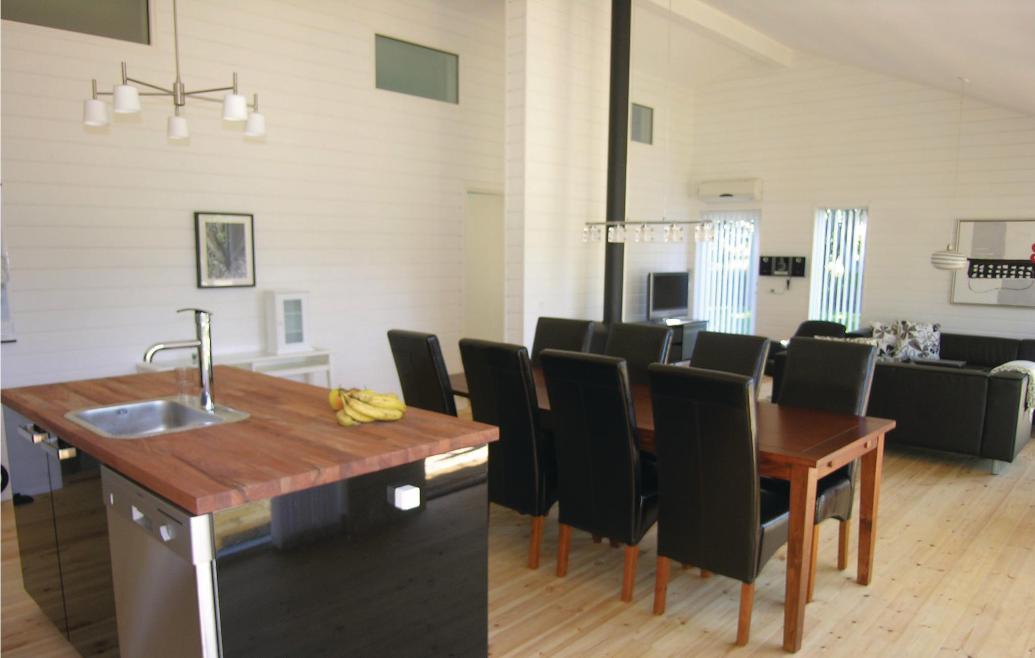 Flot luksushus i dejlig natur og rolige omgivelser ikke langt fra Hasle Lystskov med gode vandrestier, cykelstier og en glimrende sandstrand. Huset er bygget i førsteklasses materialer, er lyst og moderne indrettet og har god plads til to familier. Der er to flotte badeværelser med gulvvarme, hvoraf det ene er indrettet med et lækkert spabad og det andet et dampbad. Dette skønne luksushus indeholder også fire flotte soveværelser. Fra det dejlige og veludstyrede, åbne køkken er der adgang til en stor og velindrettet opholdsstue med gode møbler og brændeovn. Fra stuen har I udsigt til naturen og direkte adgang til en dejlig, stor træterrasse, hvor I kan nyde mange gode feriestunder. Grunden grænser op til en lille å og de åbne marker. Husets høje komfort gør det velegnet til ferie året rundt.
