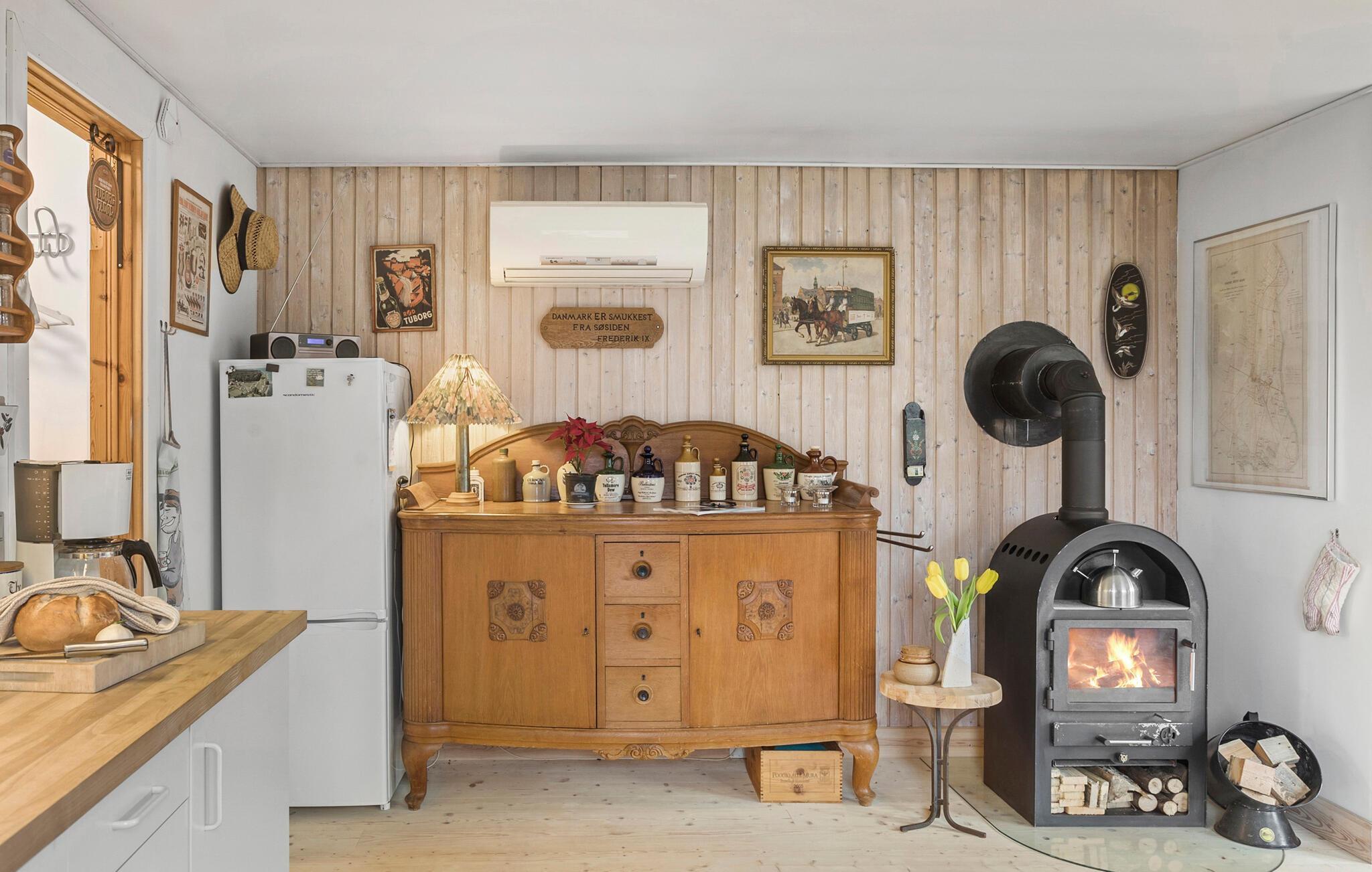 Hyggeligt træhus på Falster nær stranden med terrasse, brændeovn og gratis parkering.