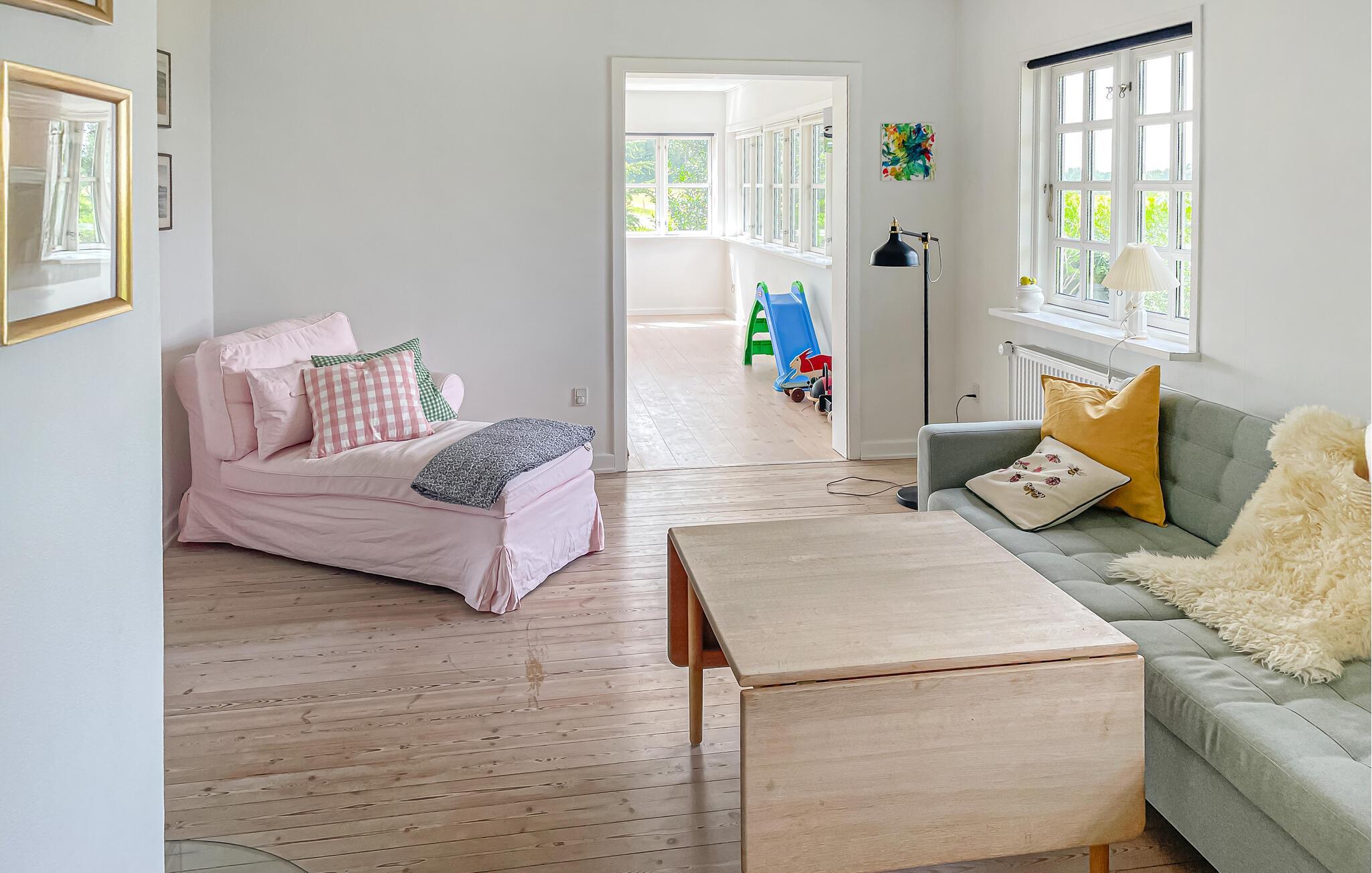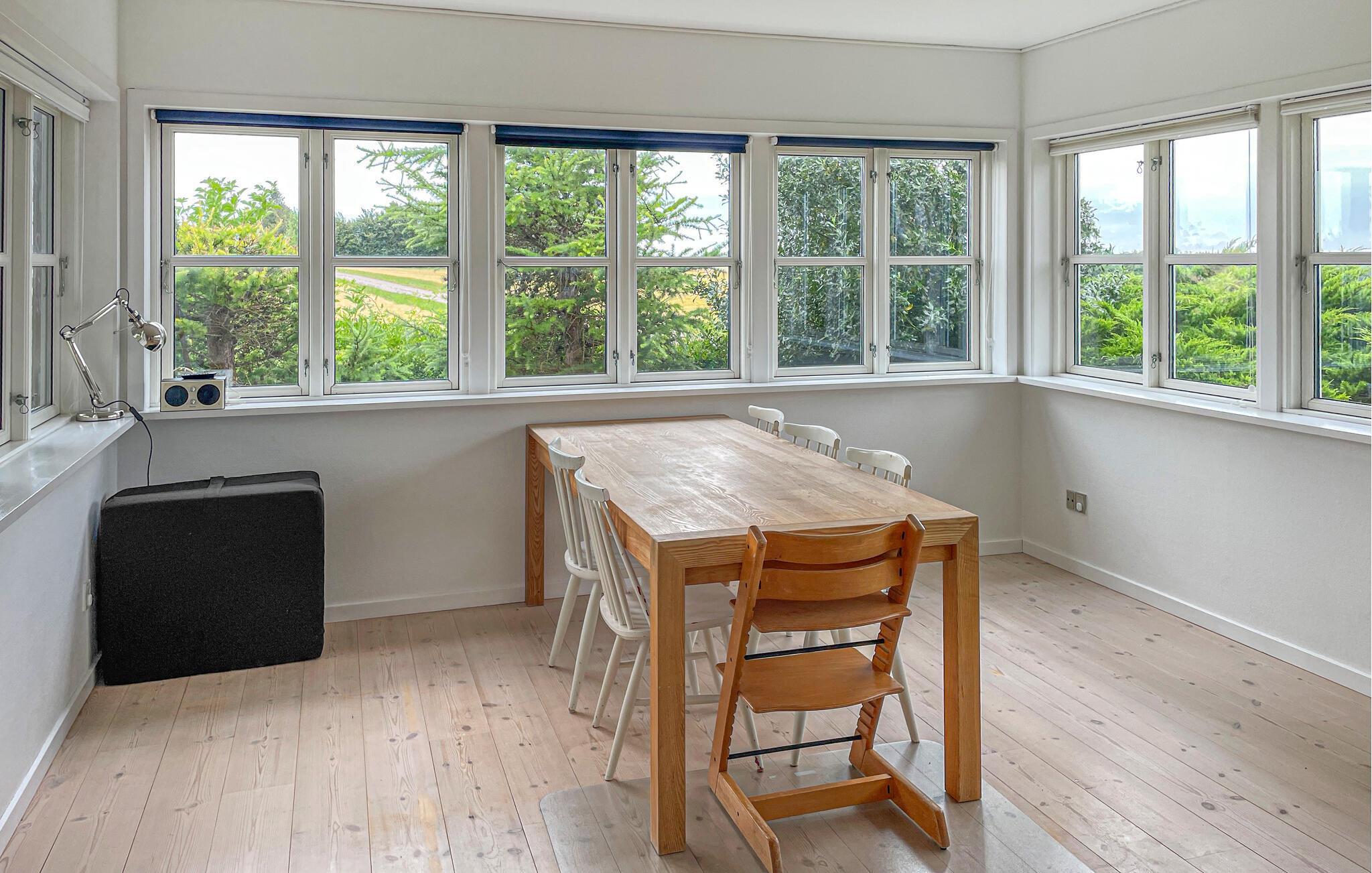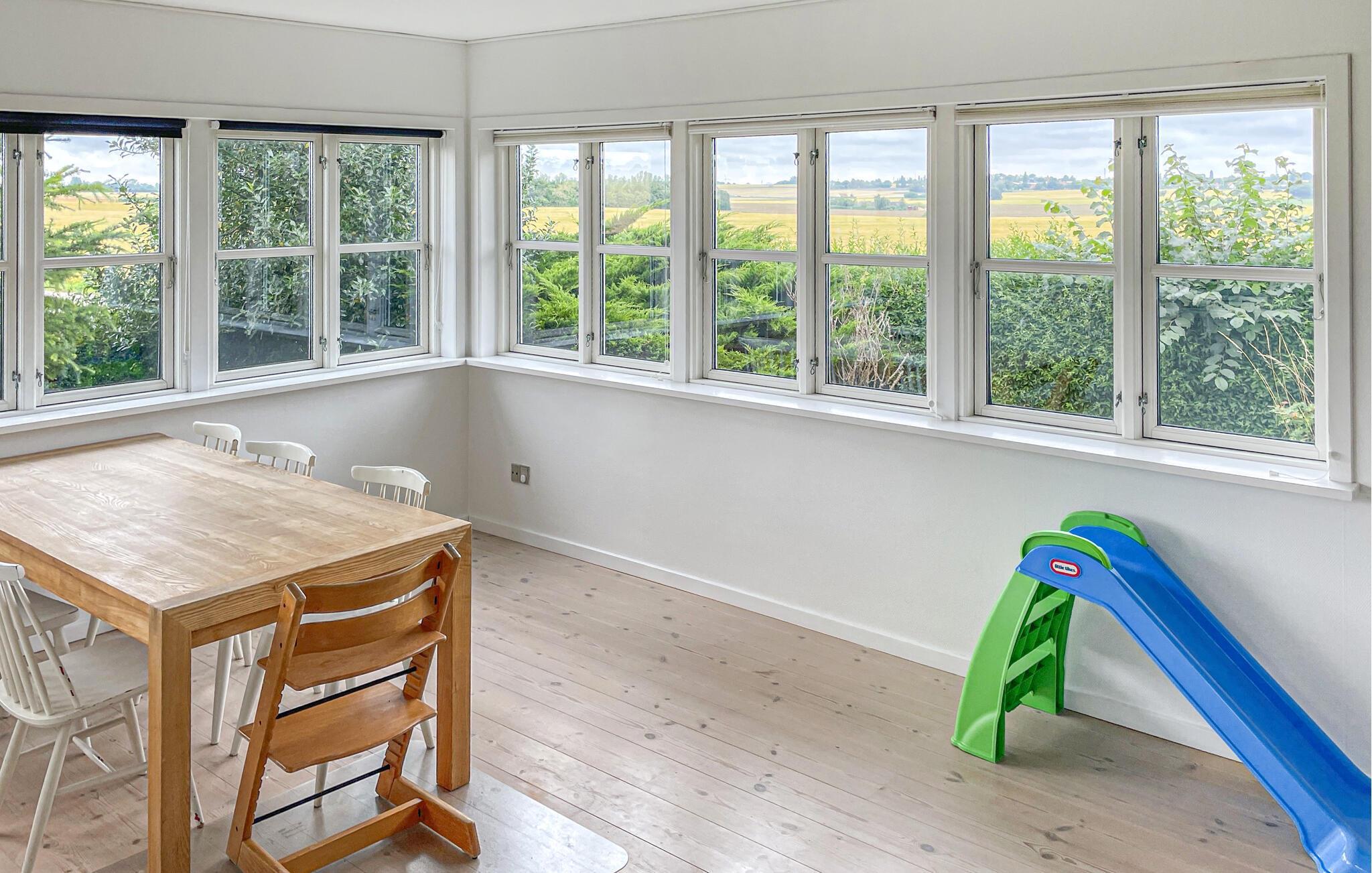 I dette feriehus kan hele familien sætte hverdagen på pause. De småsprossede vinduer lukker lyset ind i boligen og giver jer adgang til en flot panoramaudsigt over de grønne omgivelser. Læn jer godt tilbage i den komfortable sofa og gør en lækker feriemiddag klar i køkkenet, mens I får jer et glas vin.