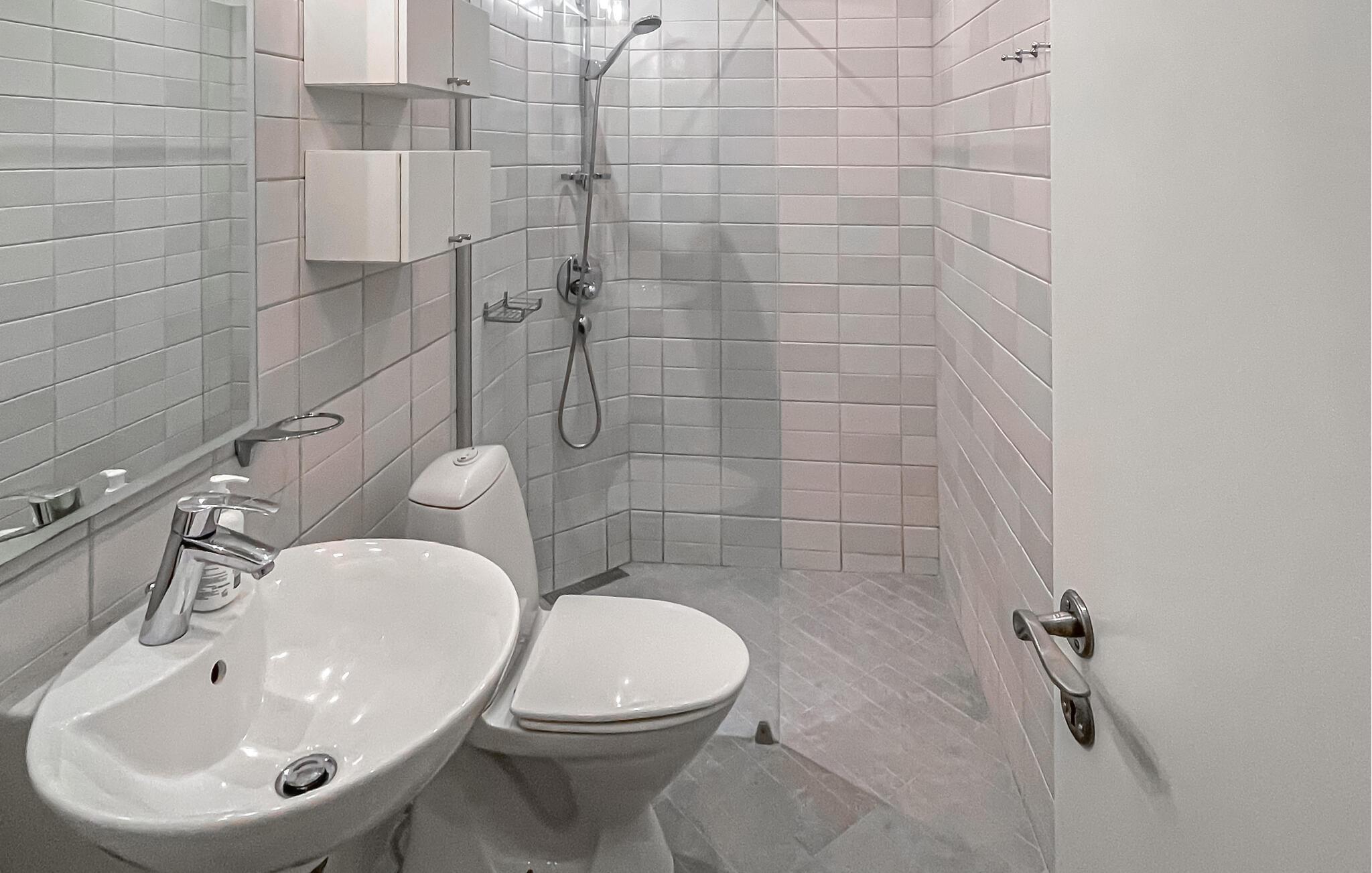 Badeværelse (nr. 1) - WC. Varmt og koldt vand. Bruser