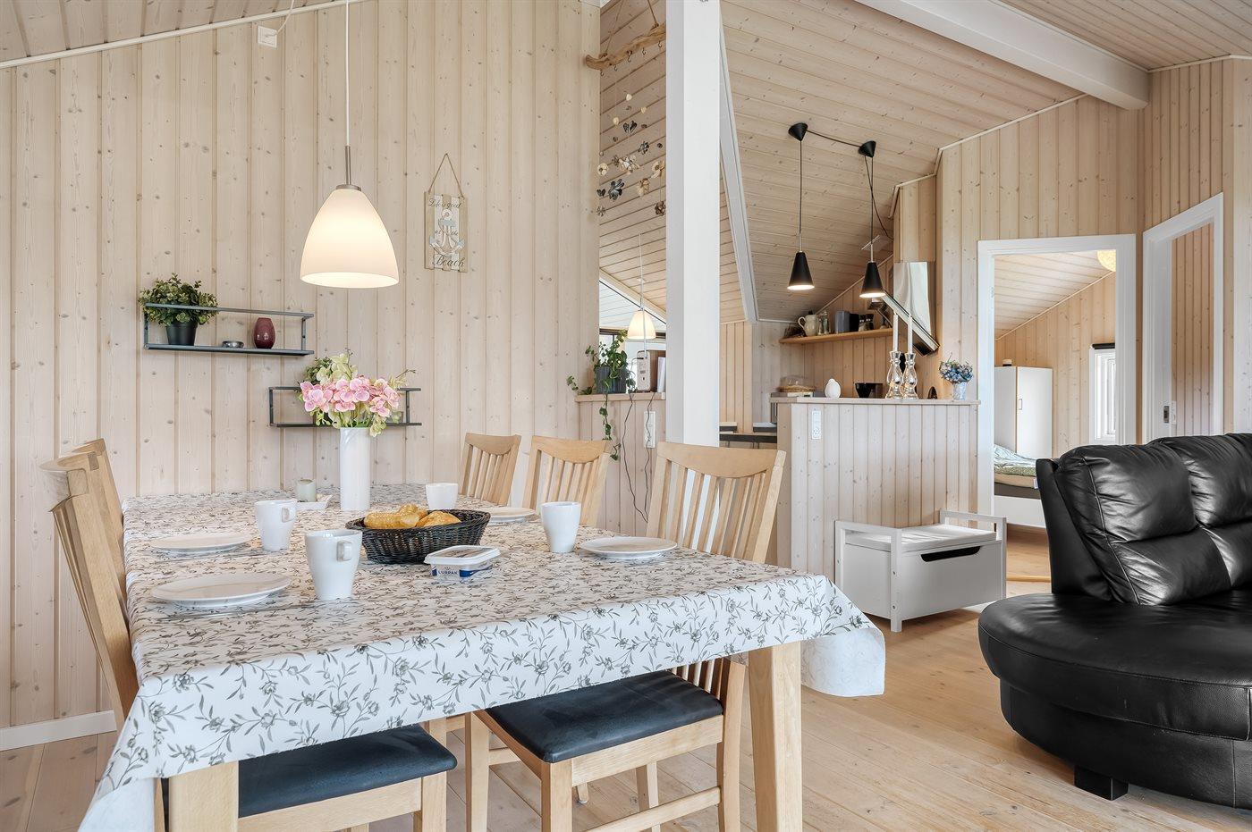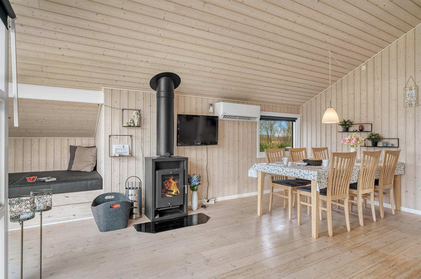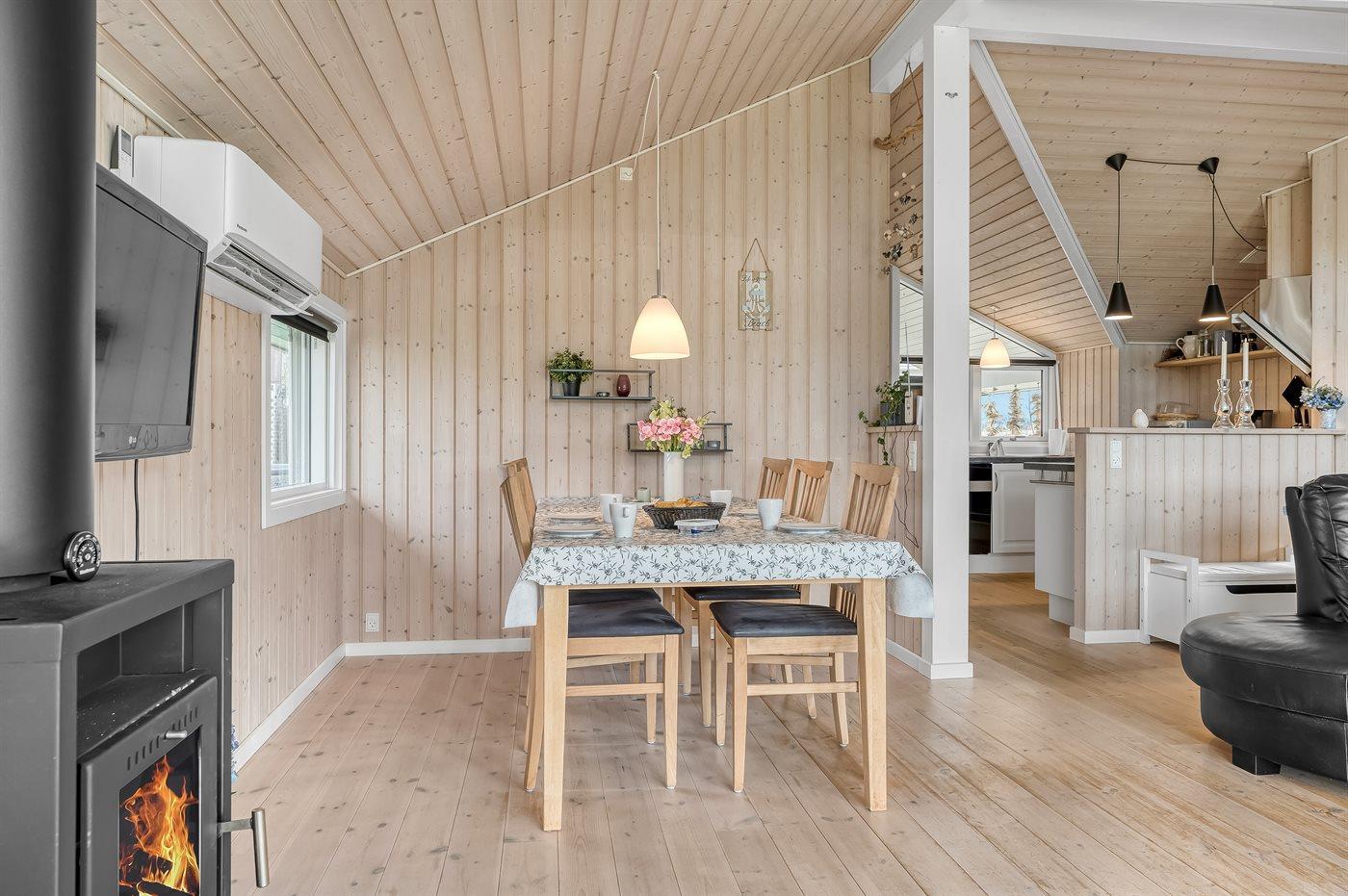 Sommerhuset egner sig til 6 personer samt 1 barn op til 3 år. Ferieboligen er på 77 m² og er bygget i 2011. Det er tilladt at medbringe 1 husdyr. Ferieboligen er udstyret med 1 energibesparende luft til luft varmepumpe. Ferieboligen har vaskemaskine. Frysekapacitet på 60 liter. Der er desuden brændeovn. Til de små er der 1 stk. barnestol.