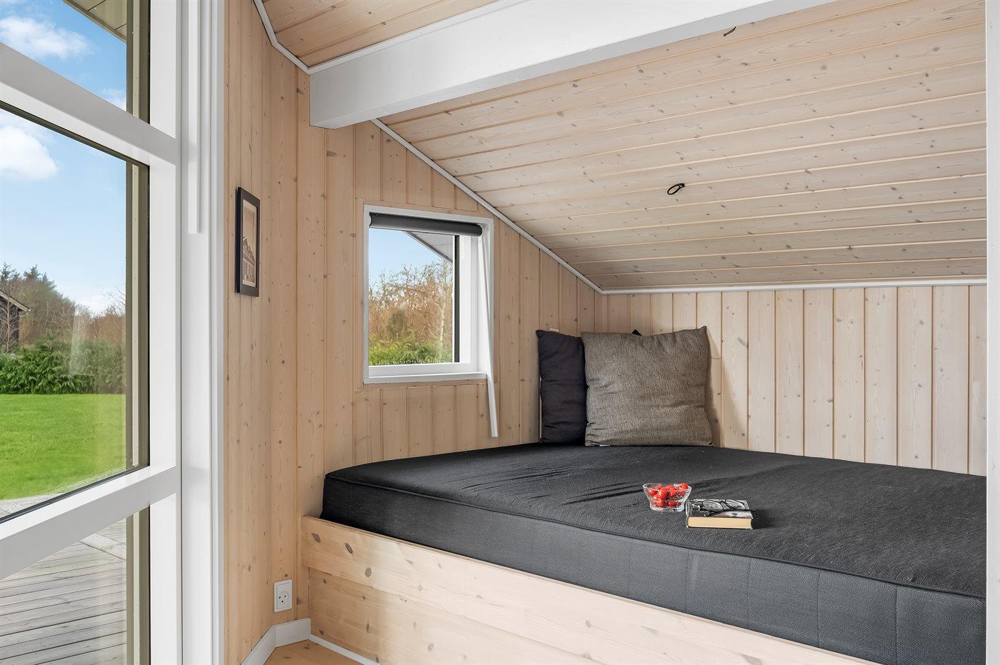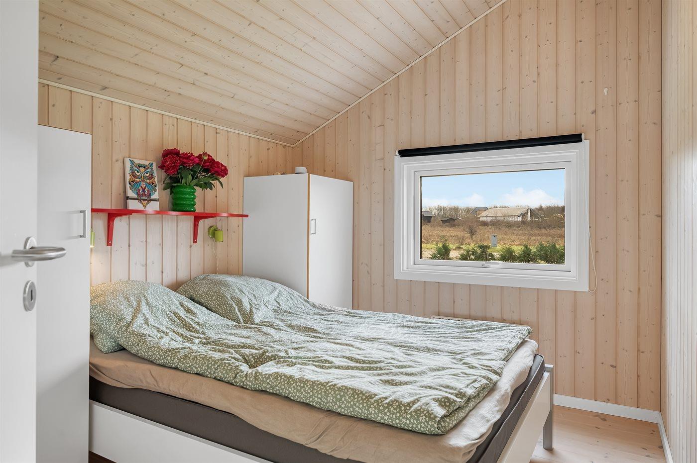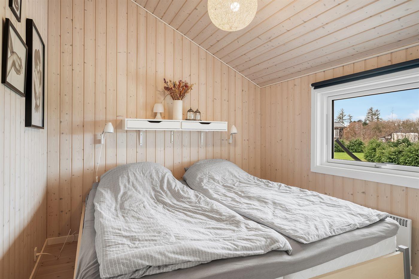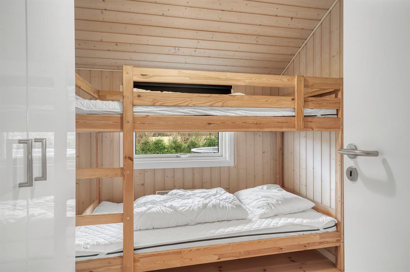 Der er i alt 3 soveværelser. Sovepladserne fordeler sig på: 4 sovepladser i dobbeltsenge. 2 sovepladser i køjeseng. Derudover er der 1 stk. barneseng.