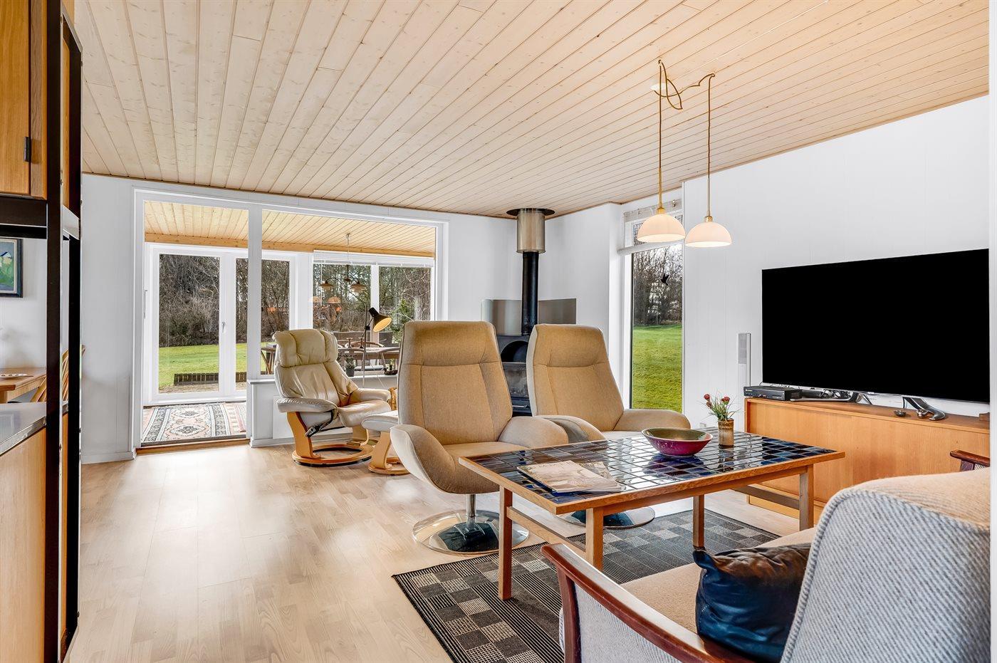 Charmerende sommerhus nær Limfjorden med brændeovn, stor grund og adgang til skov og fjord.