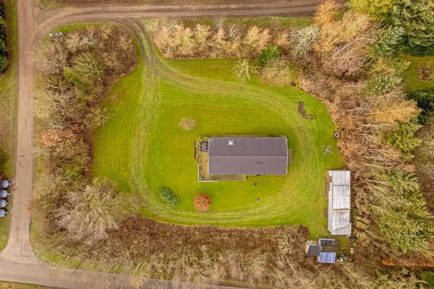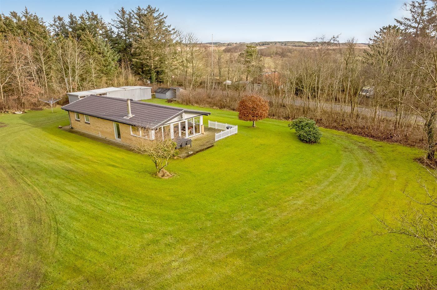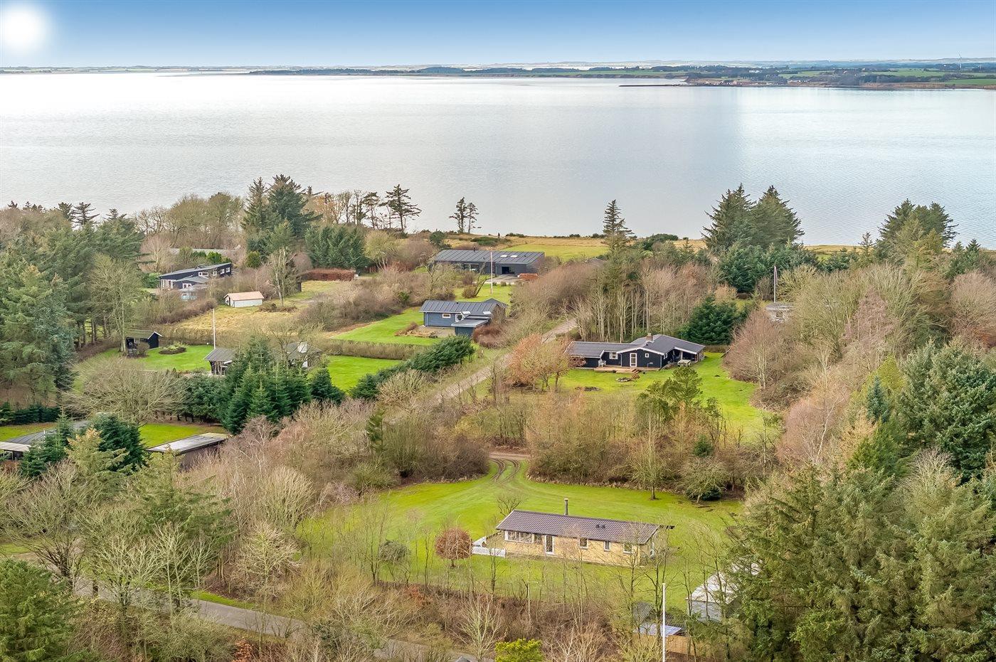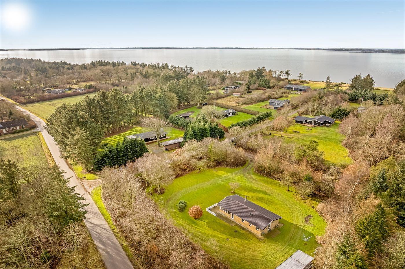 Ferieboligen er beliggende på en 3131 m² stor grund i skov/plantage. Der er 400 m til fjorden. Nærmeste forretning er beliggende i en afstand af 2000 m. Til ferieboligen hører åbent terrasseareal. Ligeledes er der adgang til udestue. Parkering ved ferieboligen.