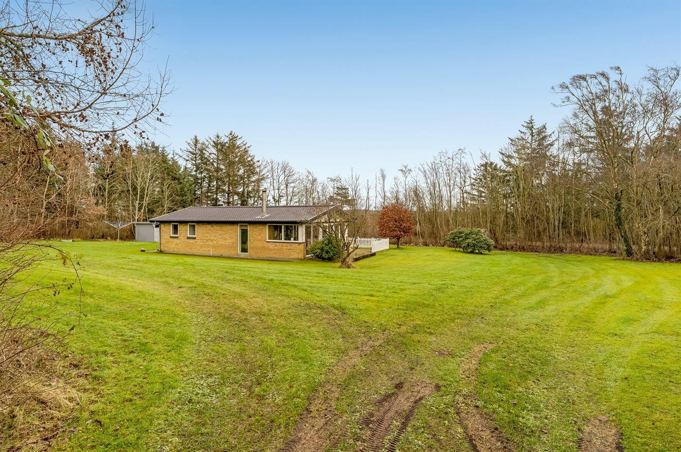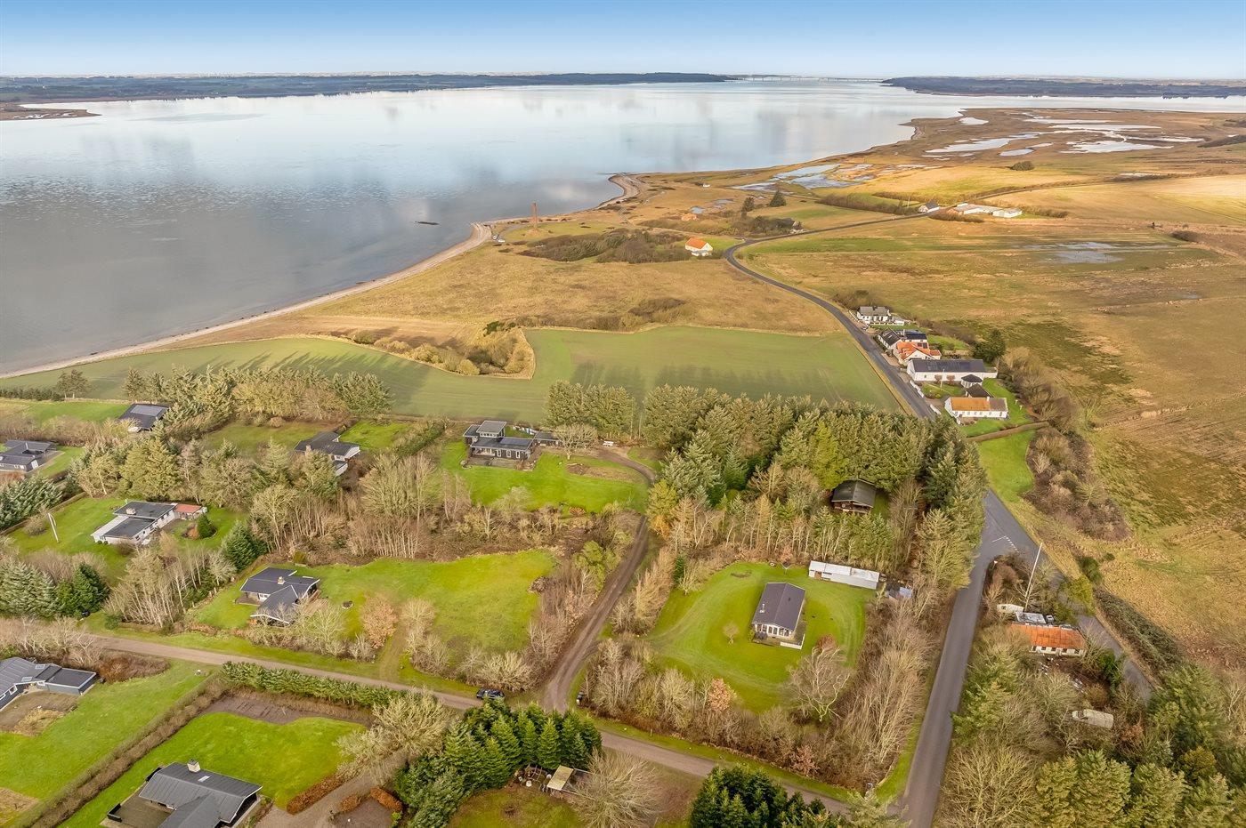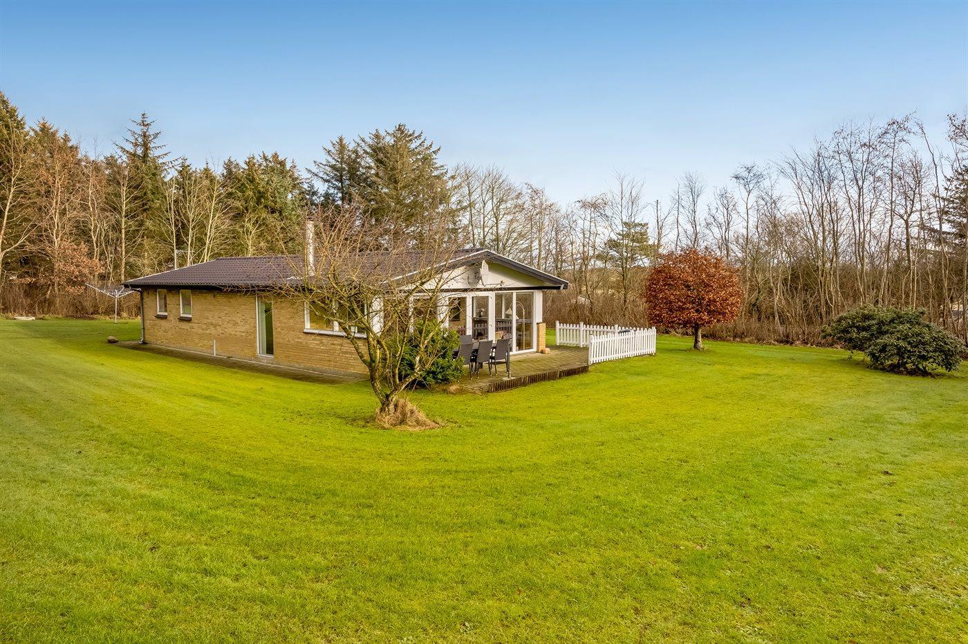 Ferieboligen er beliggende på en 3131 m² stor grund i skov/plantage. Der er 400 m til fjorden. Nærmeste forretning er beliggende i en afstand af 2000 m. Til ferieboligen hører åbent terrasseareal. Ligeledes er der adgang til udestue. Parkering ved ferieboligen.