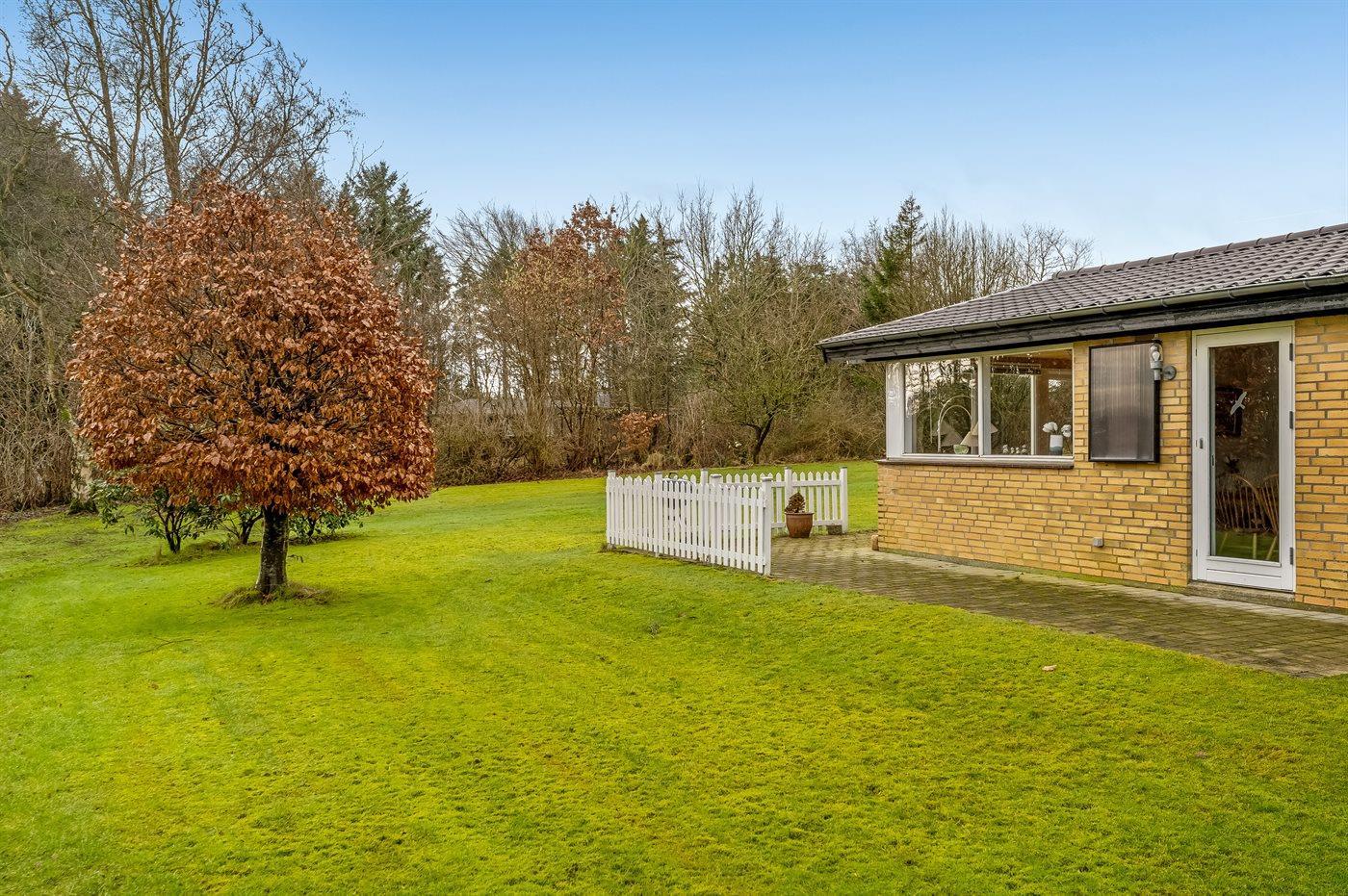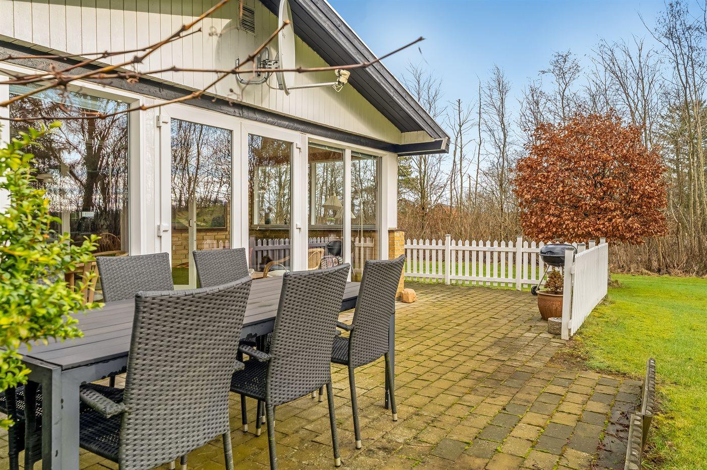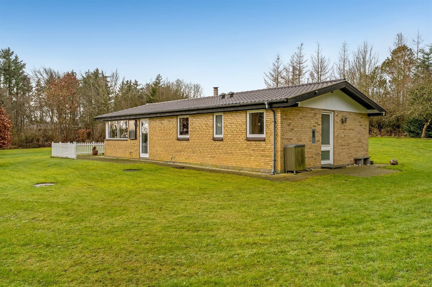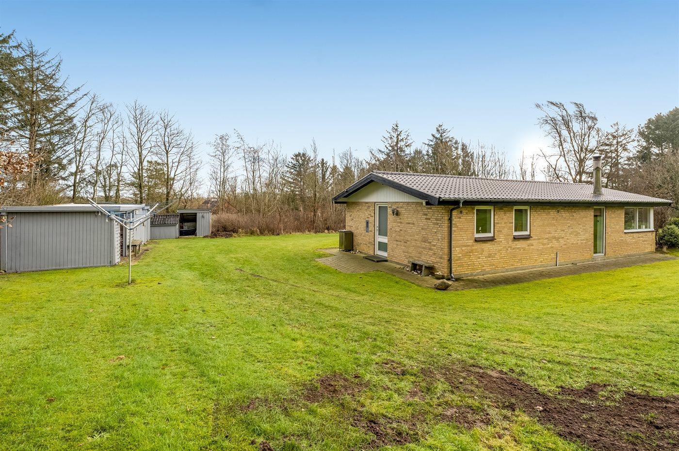 Ferieboligen er beliggende på en 3131 m² stor grund i skov/plantage. Der er 400 m til fjorden. Nærmeste forretning er beliggende i en afstand af 2000 m. Til ferieboligen hører åbent terrasseareal. Ligeledes er der adgang til udestue. Parkering ved ferieboligen.