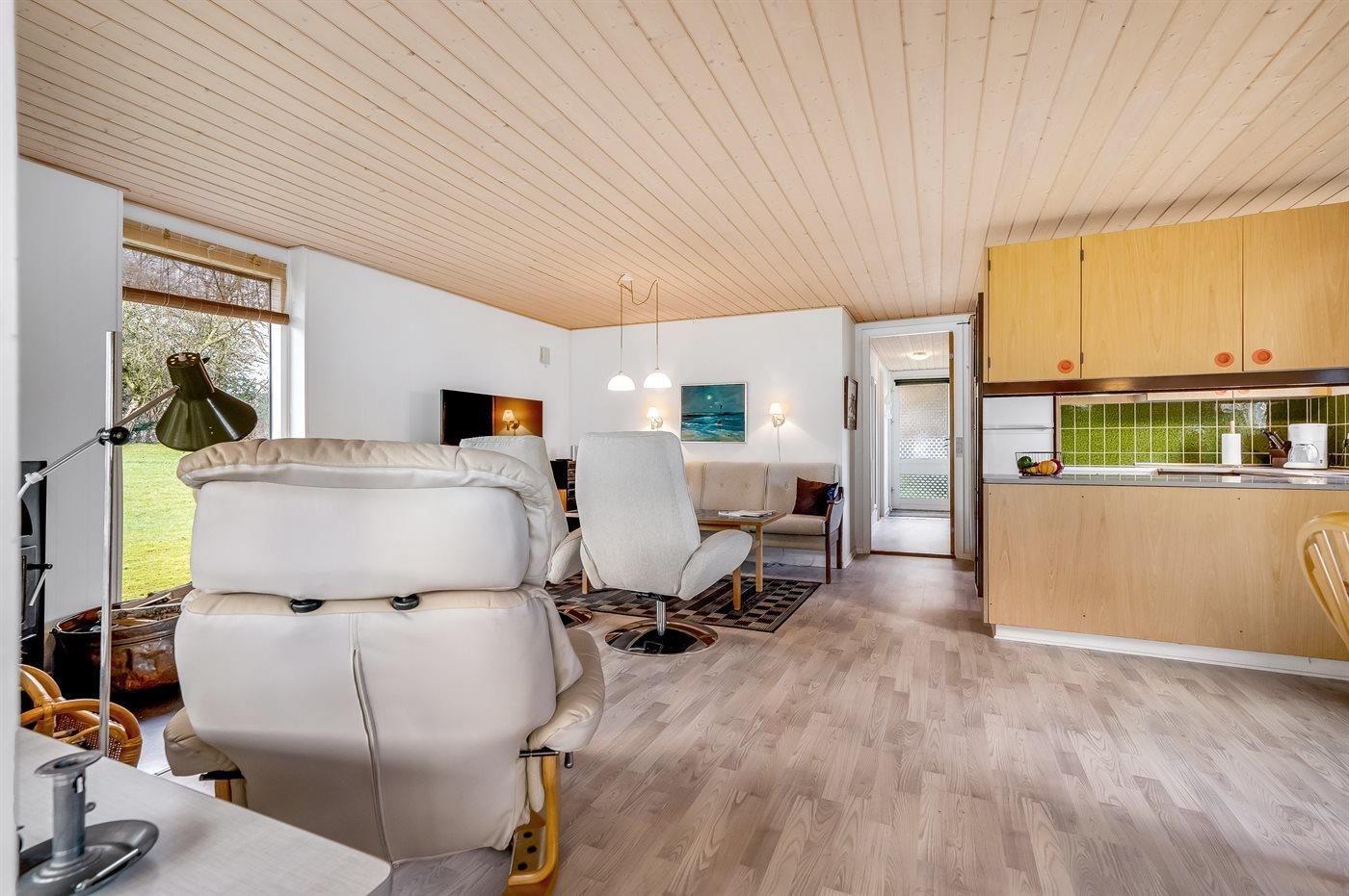 Vil du på ferie tæt ved Limfjorden, så er dette charmerende sommerhus måske noget for dig. Her får du ro, frisk luft og en brændeovn, der knitrer dejligt, hvis der skulle komme en regnvejrsdag.