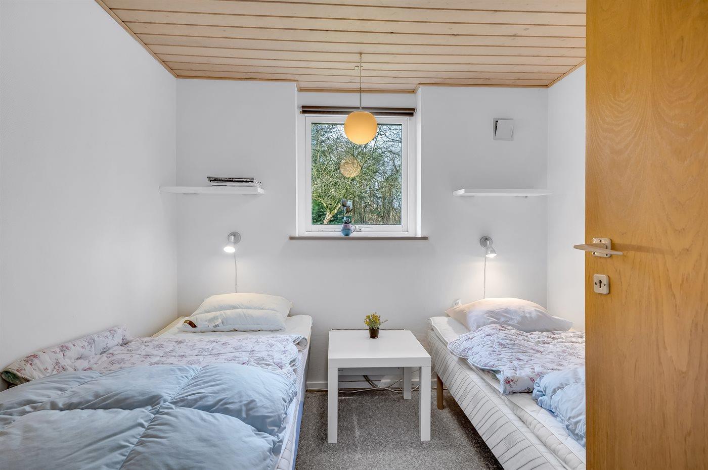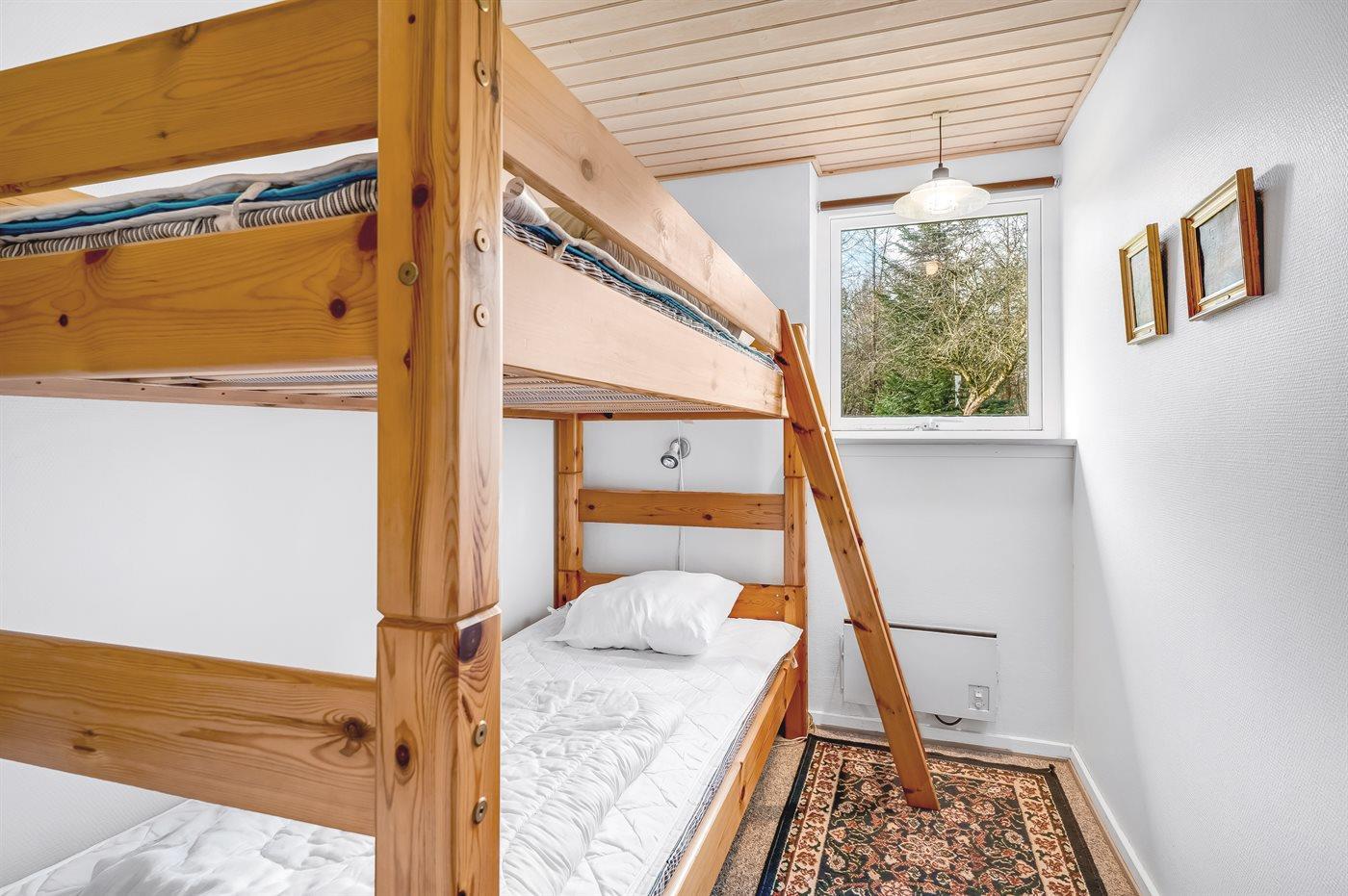 Der er i alt 3 soveværelser. Sovepladserne fordeler sig på: 3 sovepladser i enkeltsenge. 2 sovepladser i køjeseng.