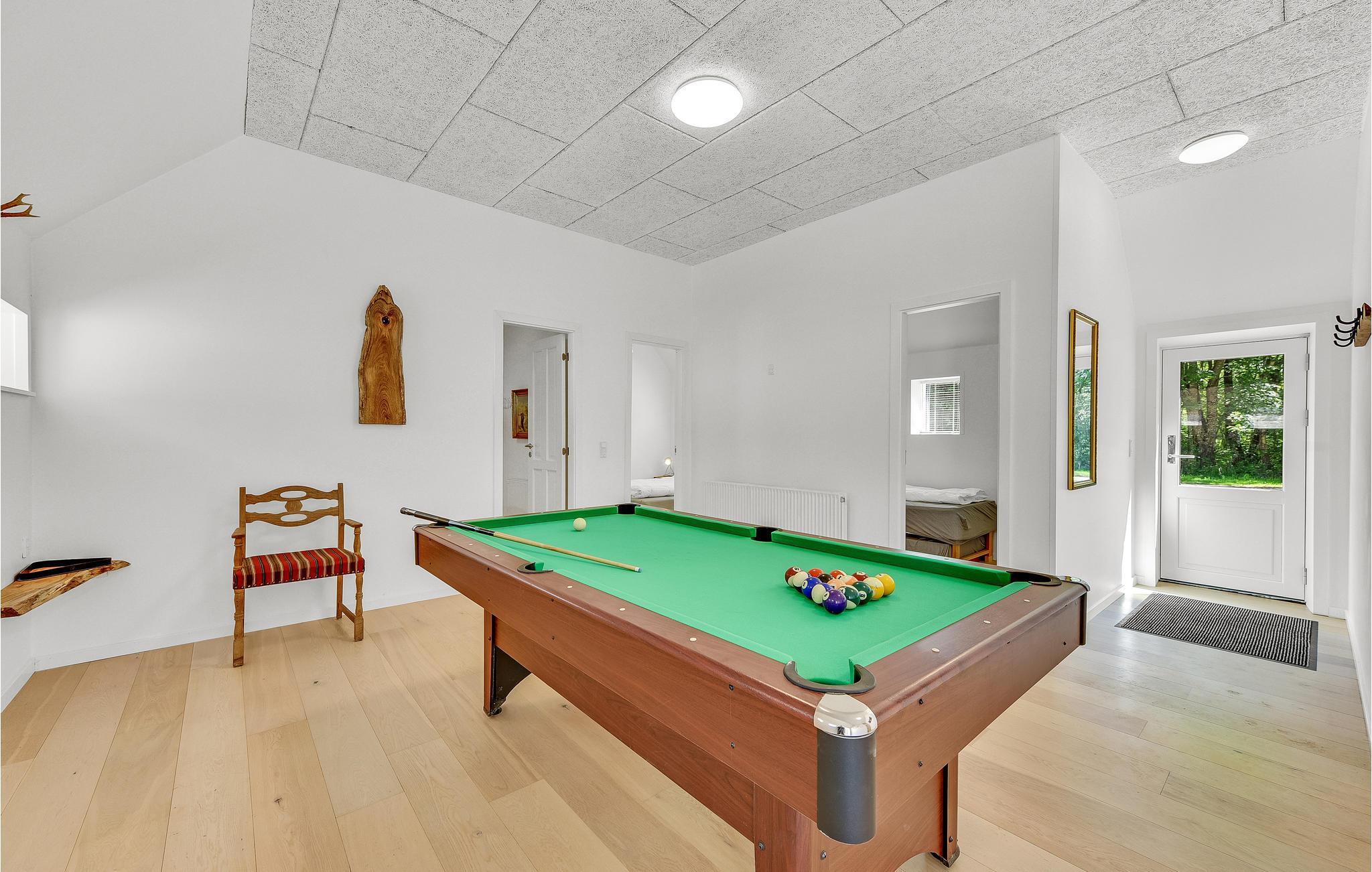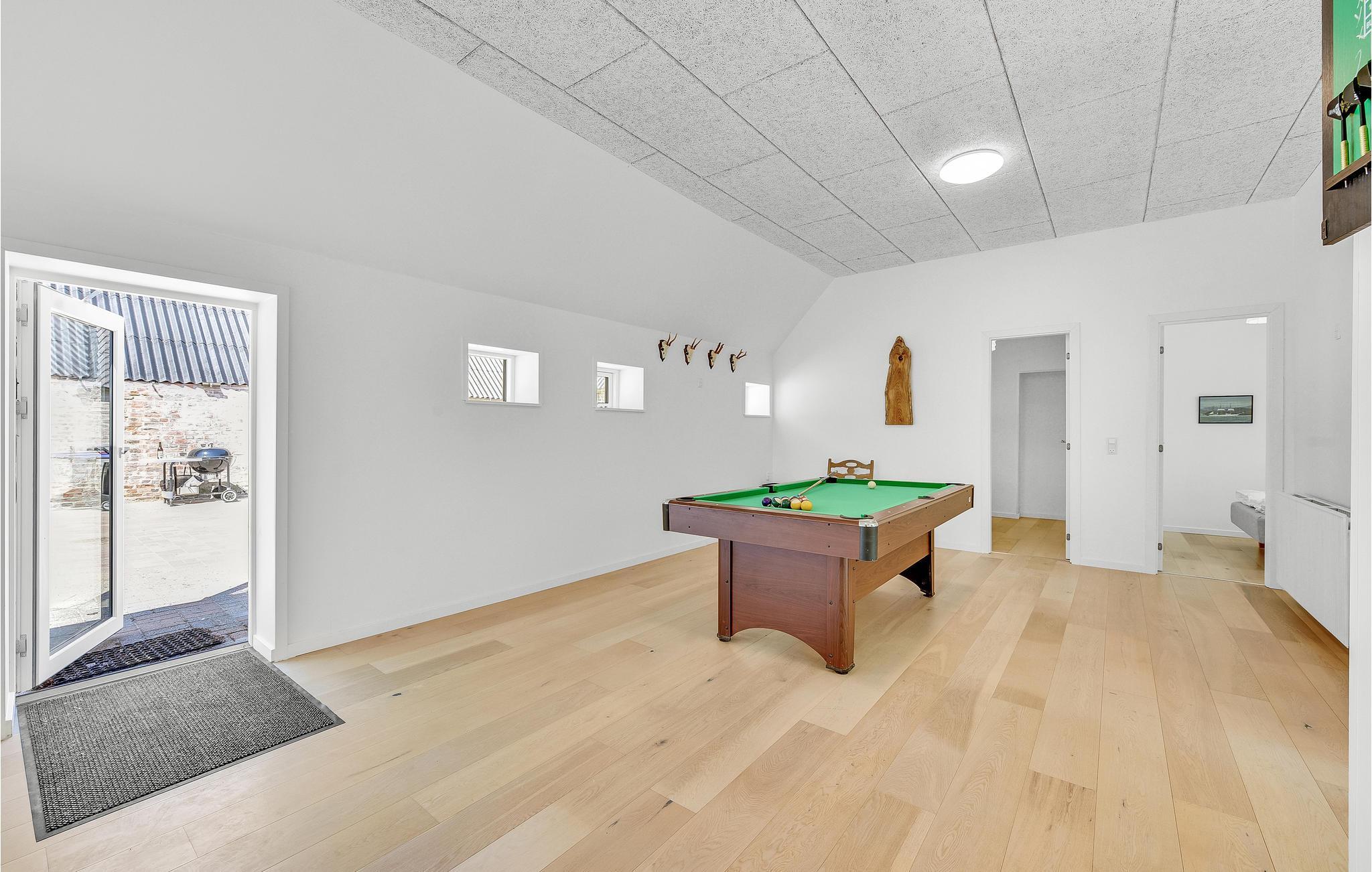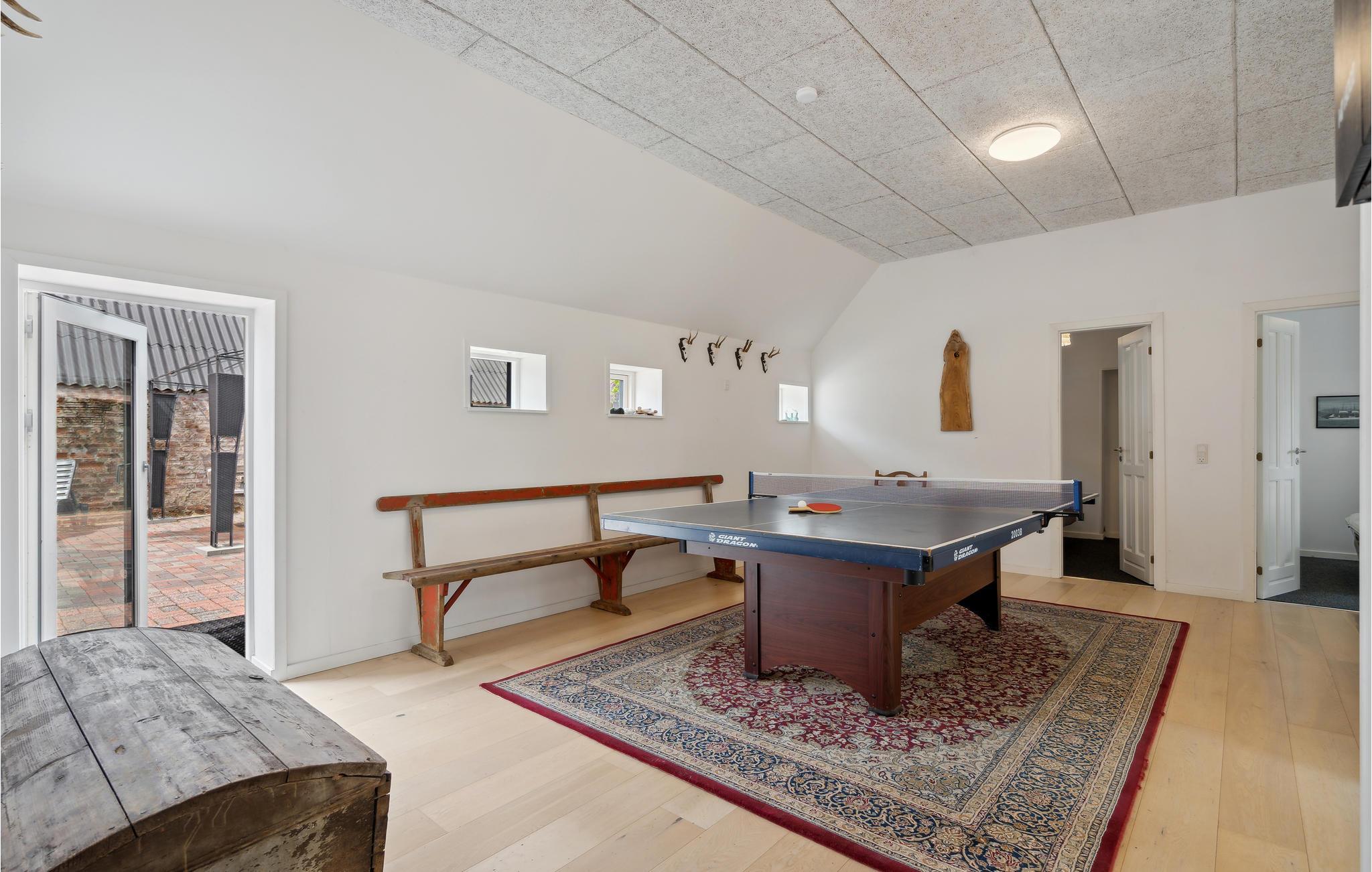 Her er dejlige soveværelser med plads til hele familien. Køkken, stue og badeværelse med bruser, vaskemaskine og tørretumbler, ligesom I kan duellere ved bordtennisbordet. Udenfor er der flere dejlige terrasser og en komplet lukket solgård. Huset opvarmes med oliefyr, og der forefindes en brændeovn som supplerende varmekilde. Der er både tysk, dansk og skandinavisk tv samt internet i huset.